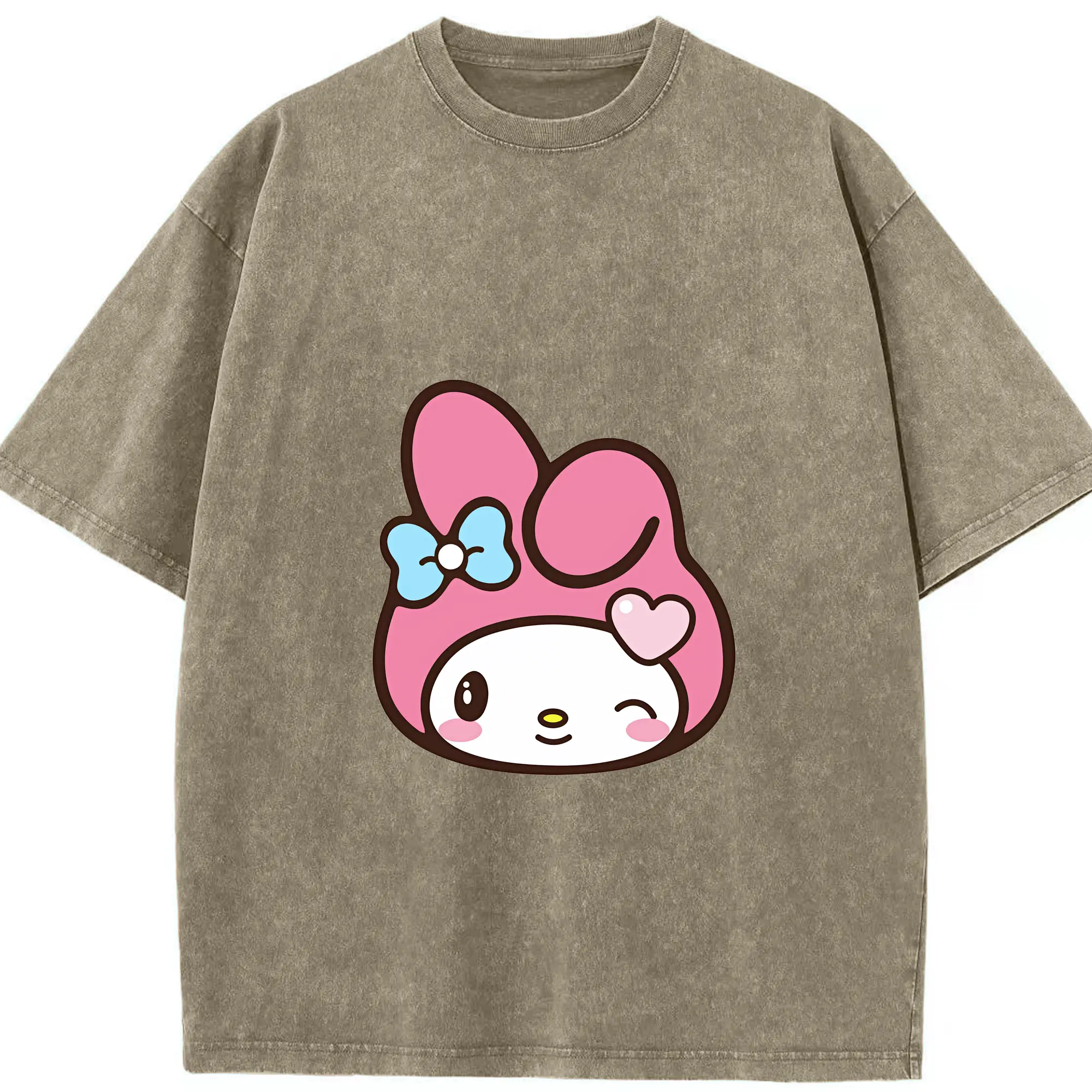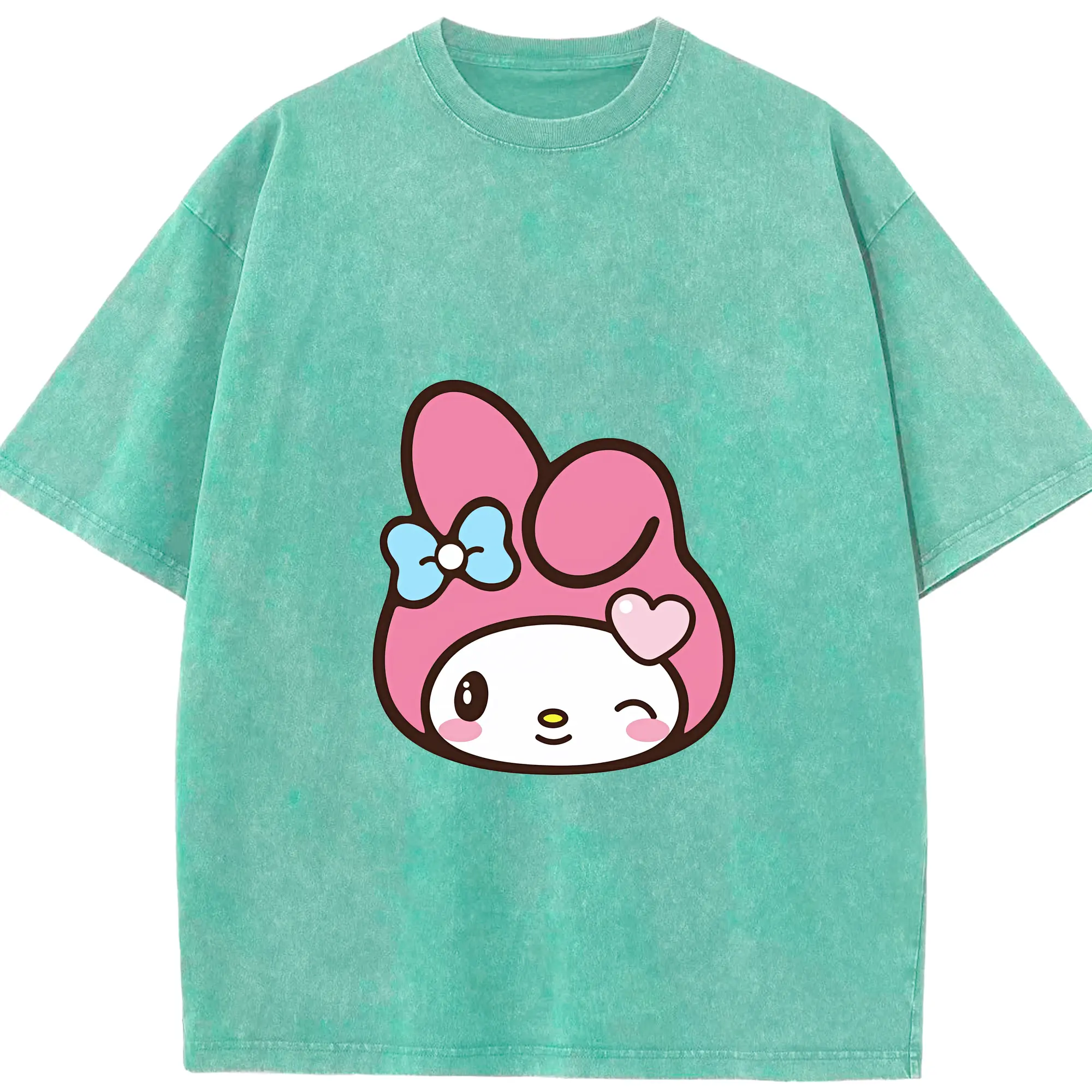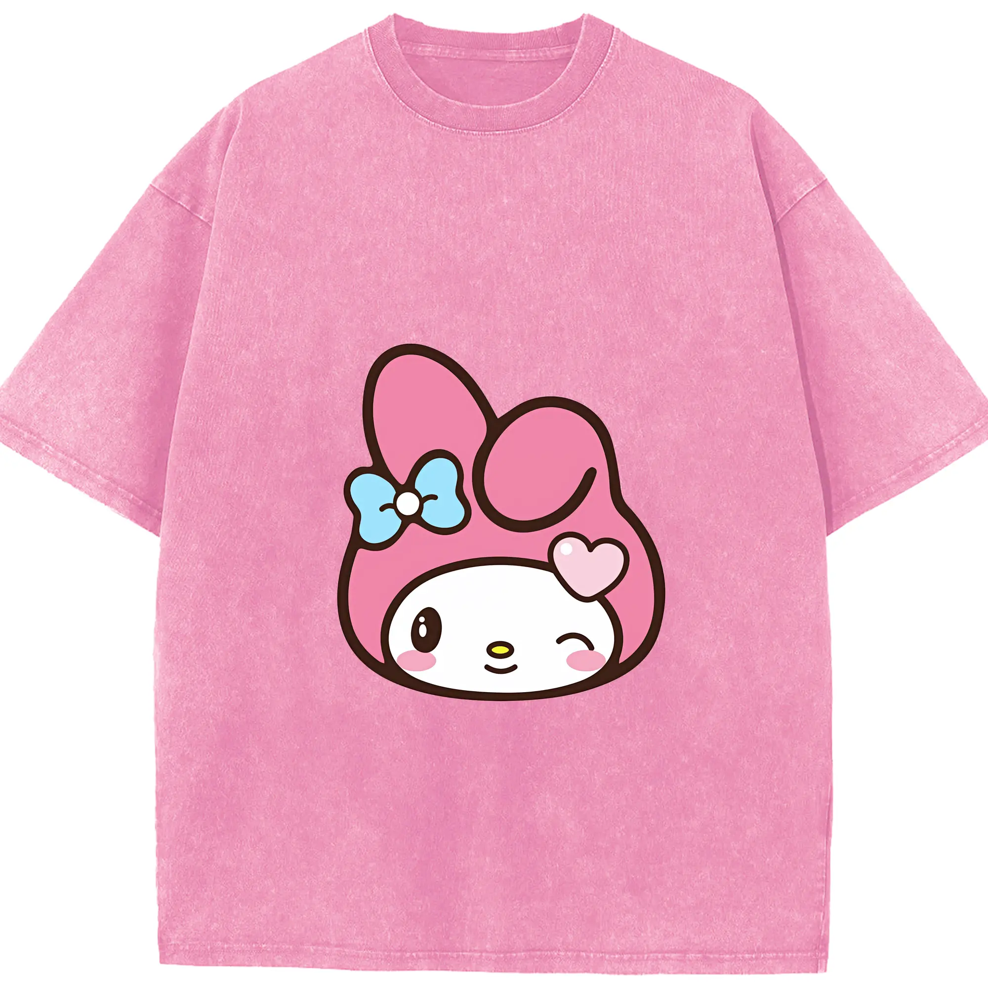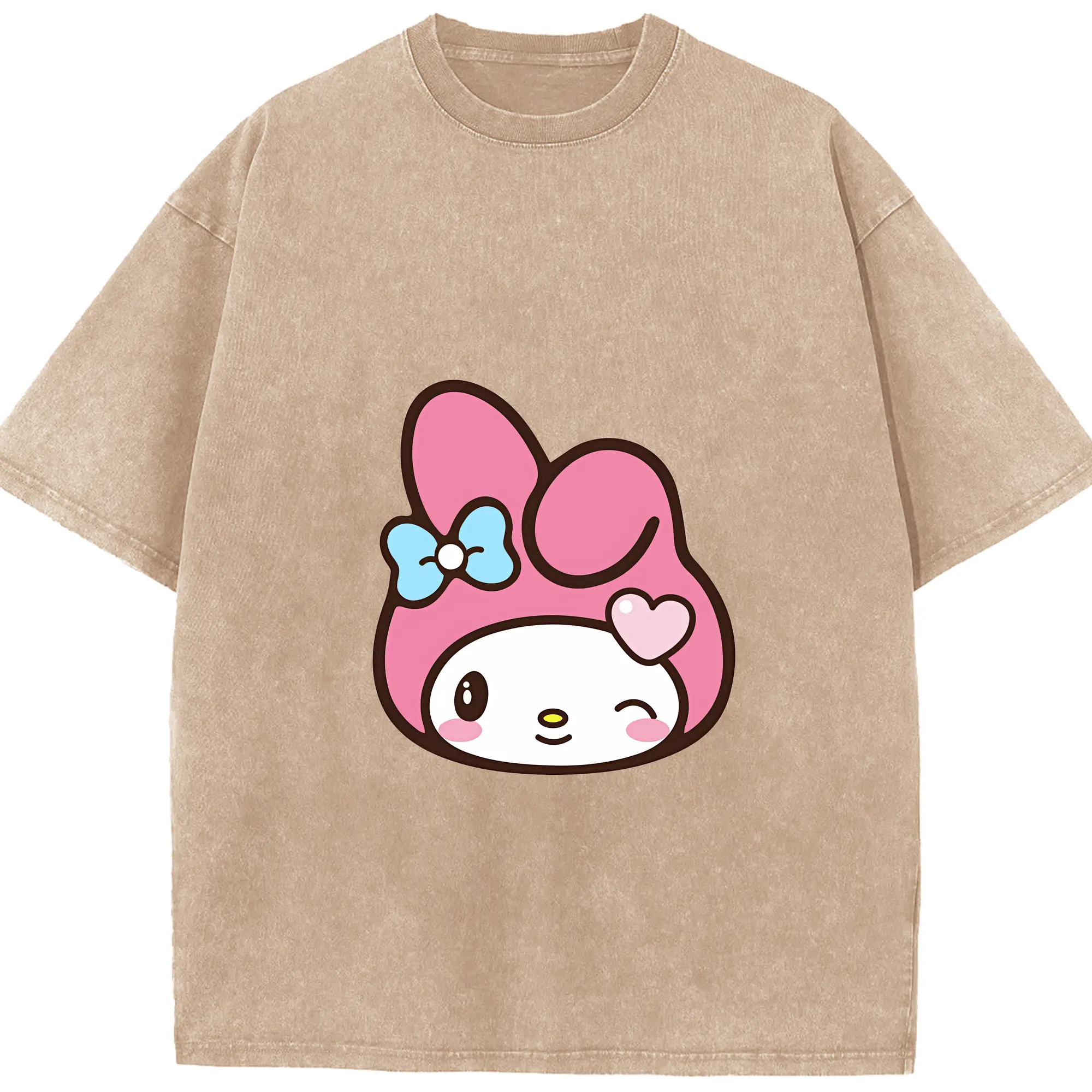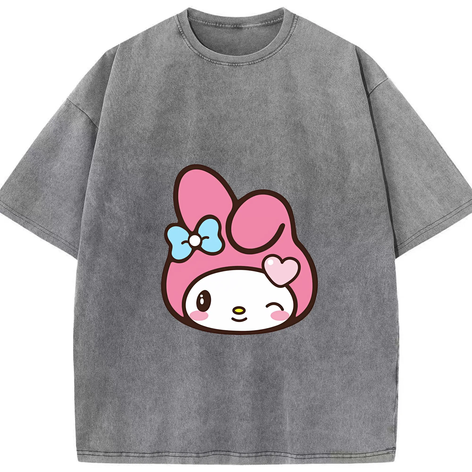 サンリオ グッズ,マイメロディ - 綿100% ヴィンテージ風 半袖Tシャツ ・ 背面プリント ・ 柔らか肌触り ・ 通気性 快適 ・ スポーツ カジュアル 外出用