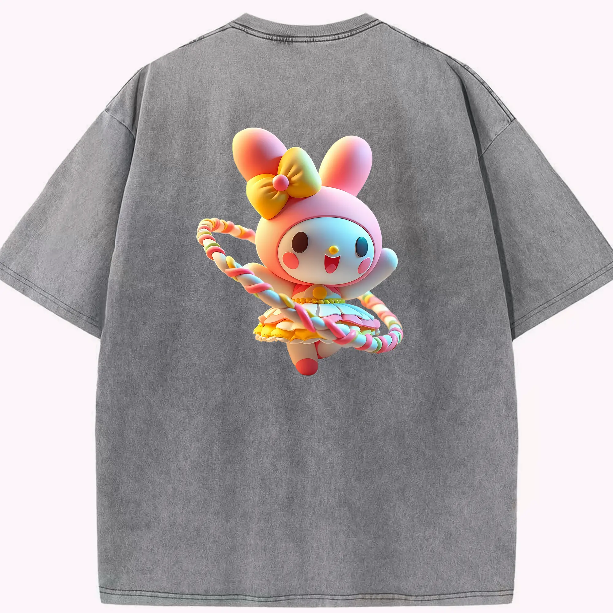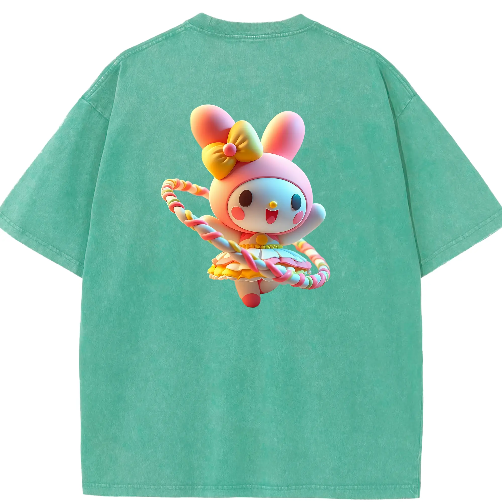 サンリオ グッズ,マイメロディ - 綿100% ヴィンテージ風 半袖Tシャツ ・ フロントプリント ・ 柔らか肌触り ・ 通気性 快適 ・ スポーツ カジュアル 外出用