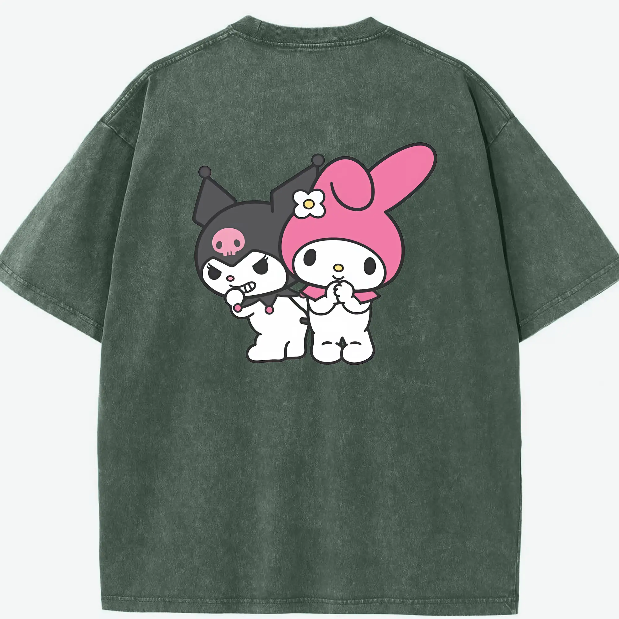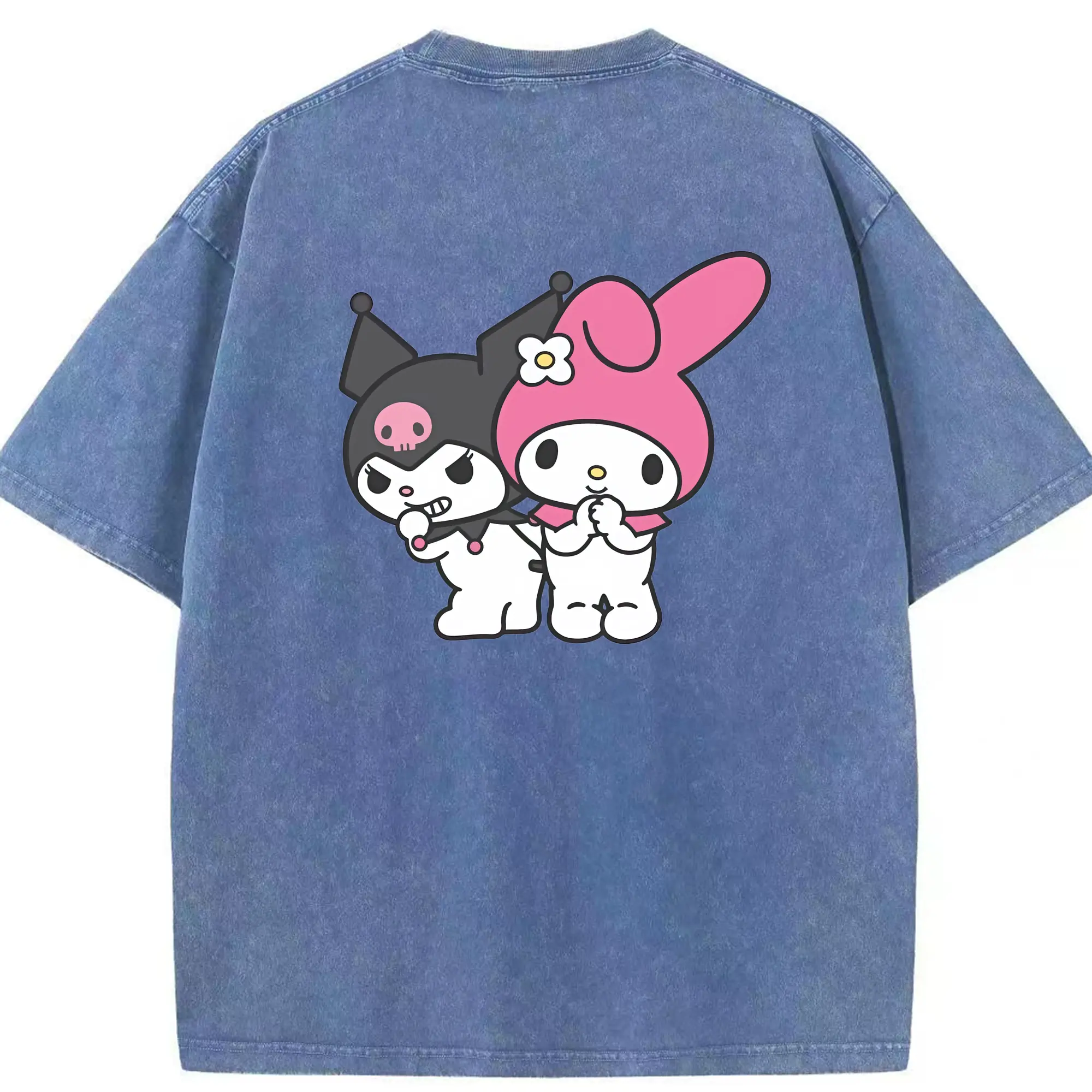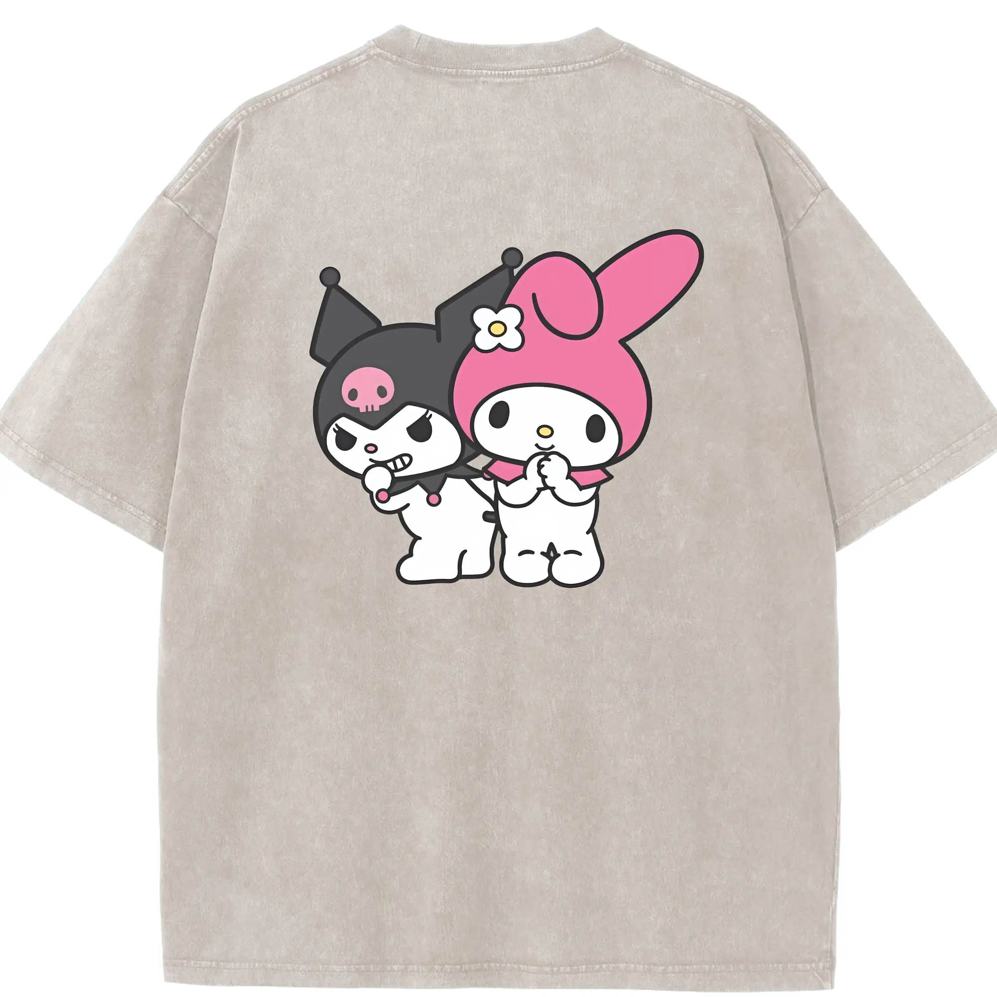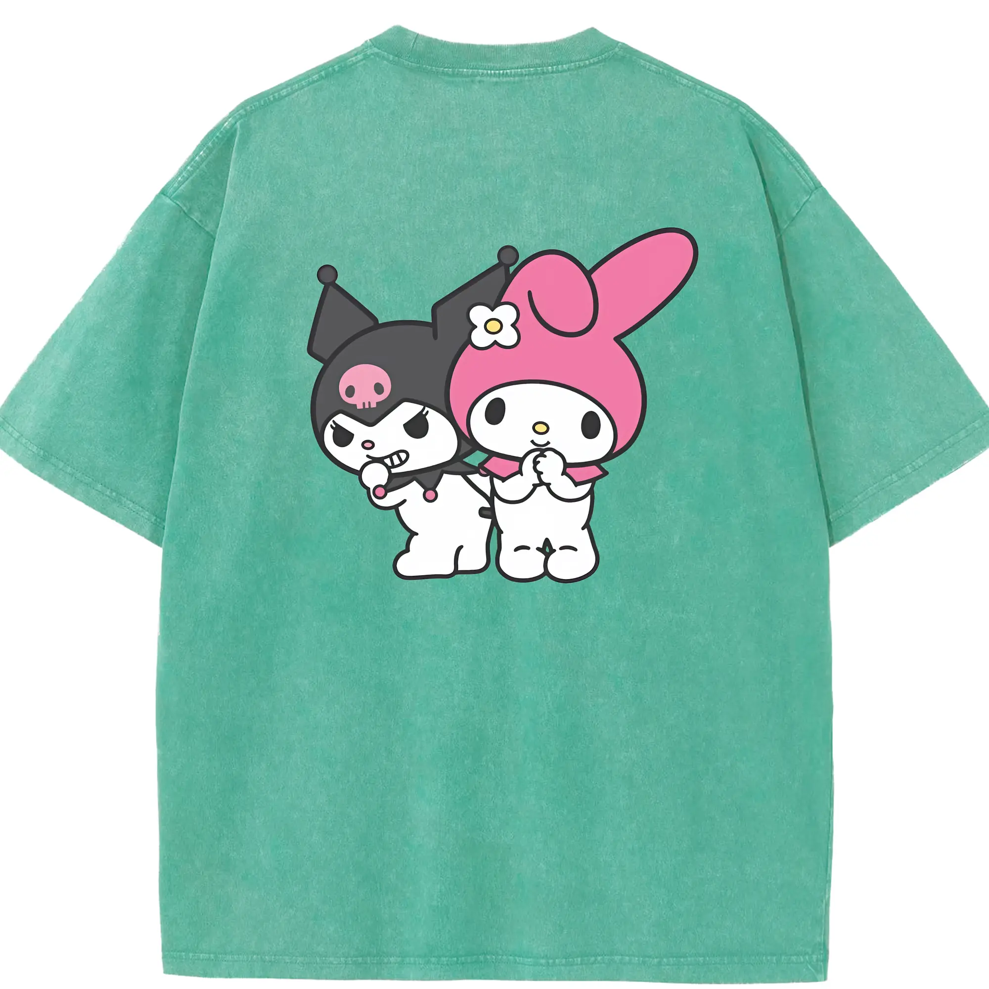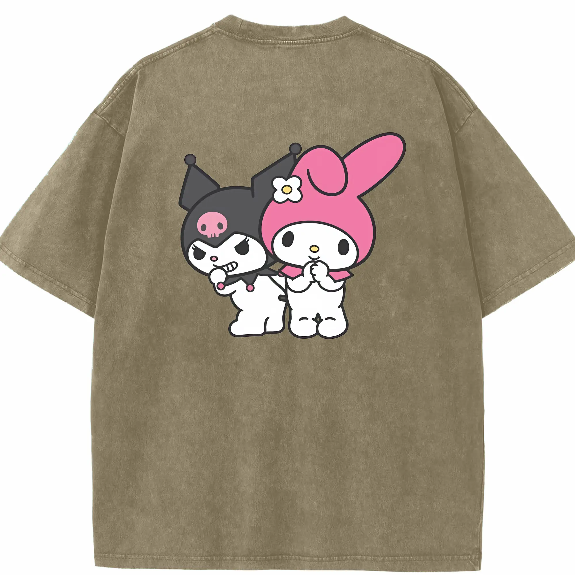 サンリオ グッズ,マイメロディ - 綿100% ヴィンテージ風 半袖Tシャツ ・ フロントプリント ・ 柔らか肌触り ・ 通気性 快適 ・ スポーツ カジュアル 外出用