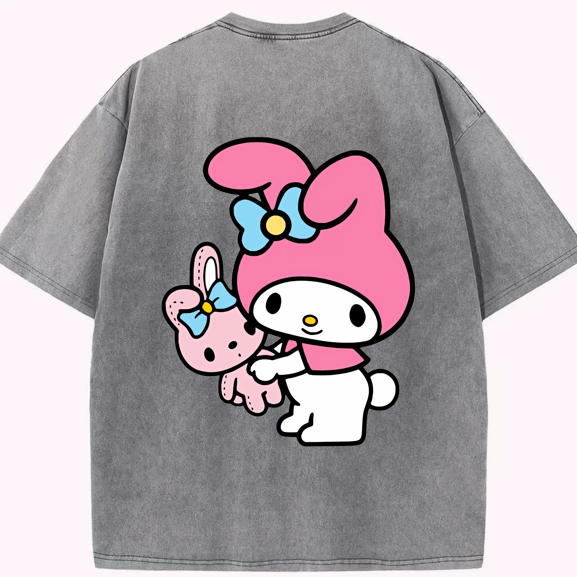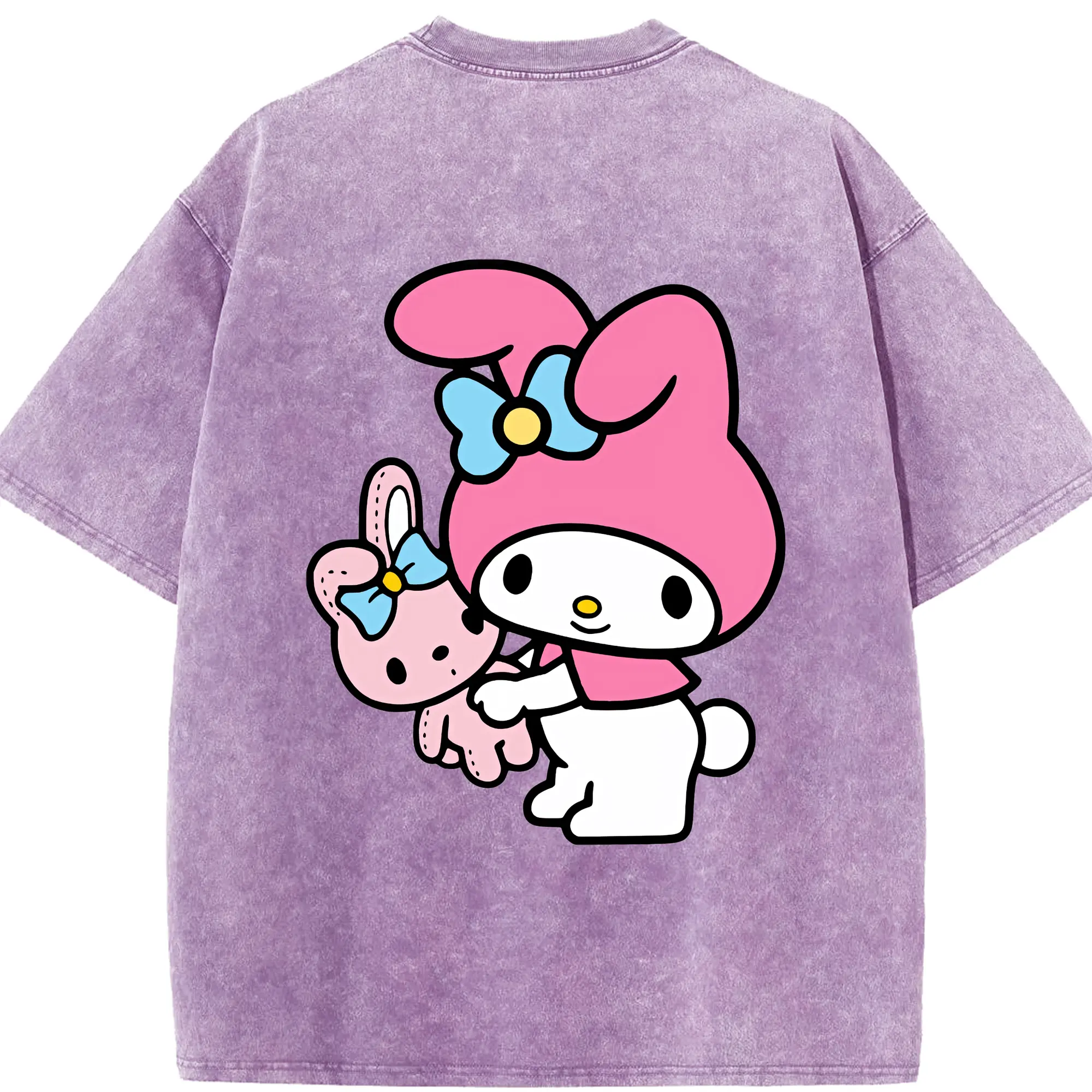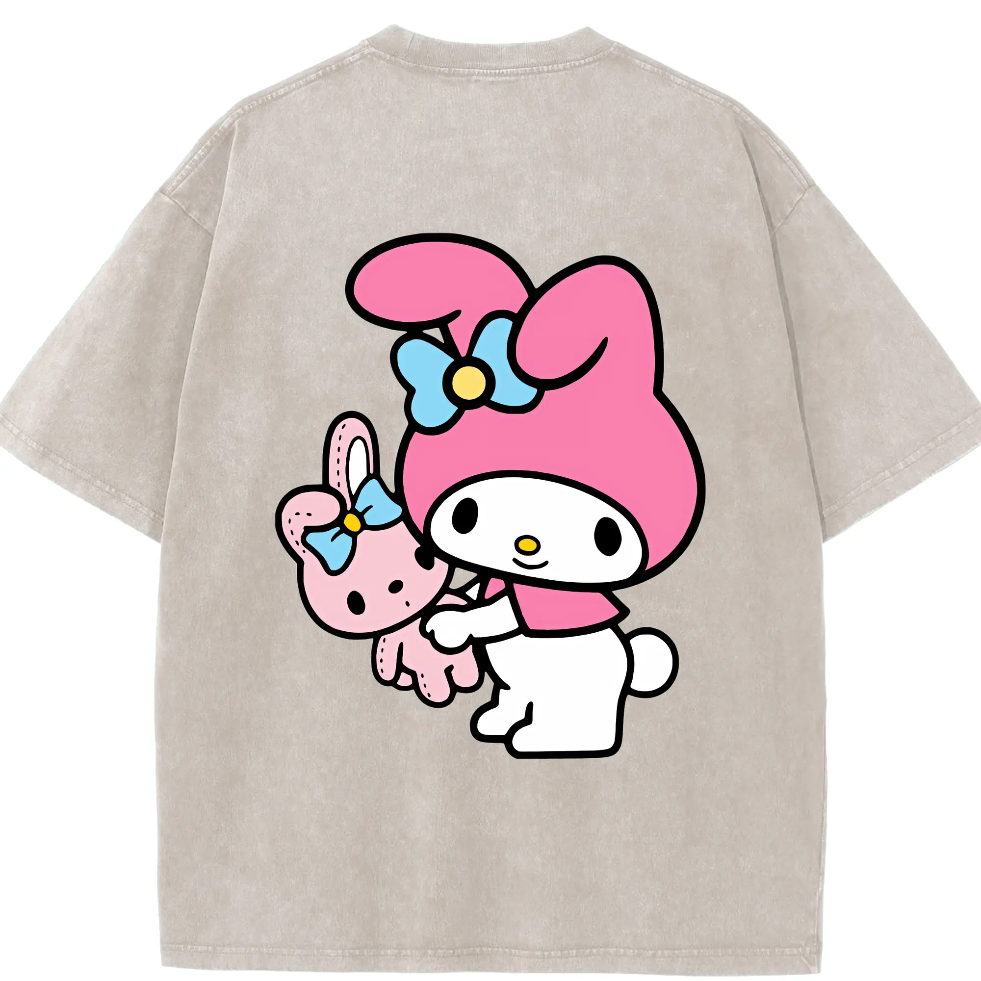 サンリオ グッズ,マイメロディ - 綿100% ヴィンテージ風 半袖Tシャツ ・ フロントプリント ・ 柔らか肌触り ・ 通気性 快適 ・ スポーツ カジュアル 外出用