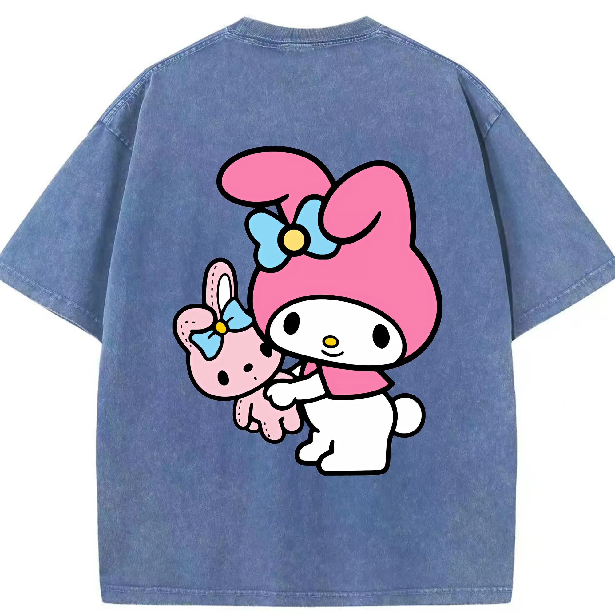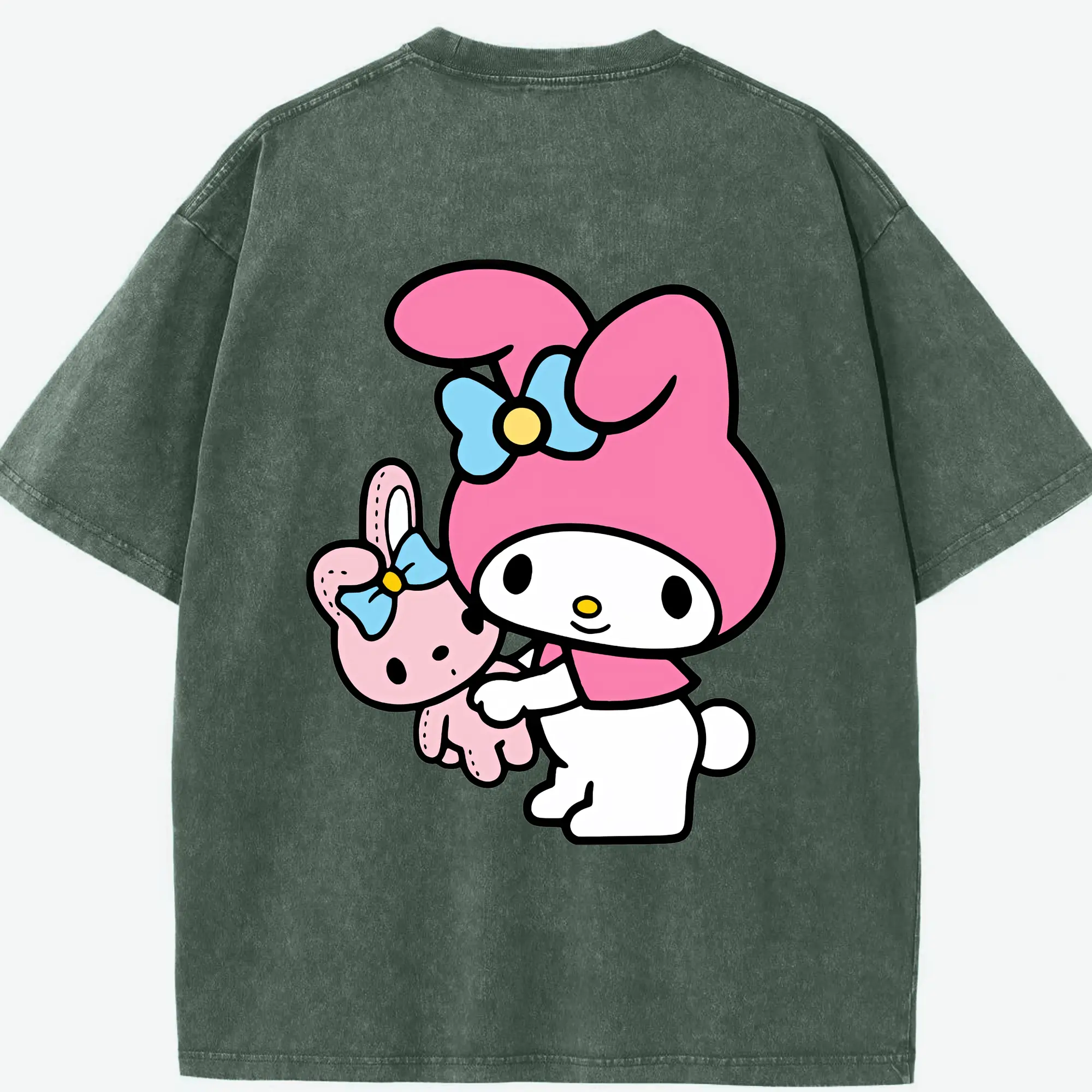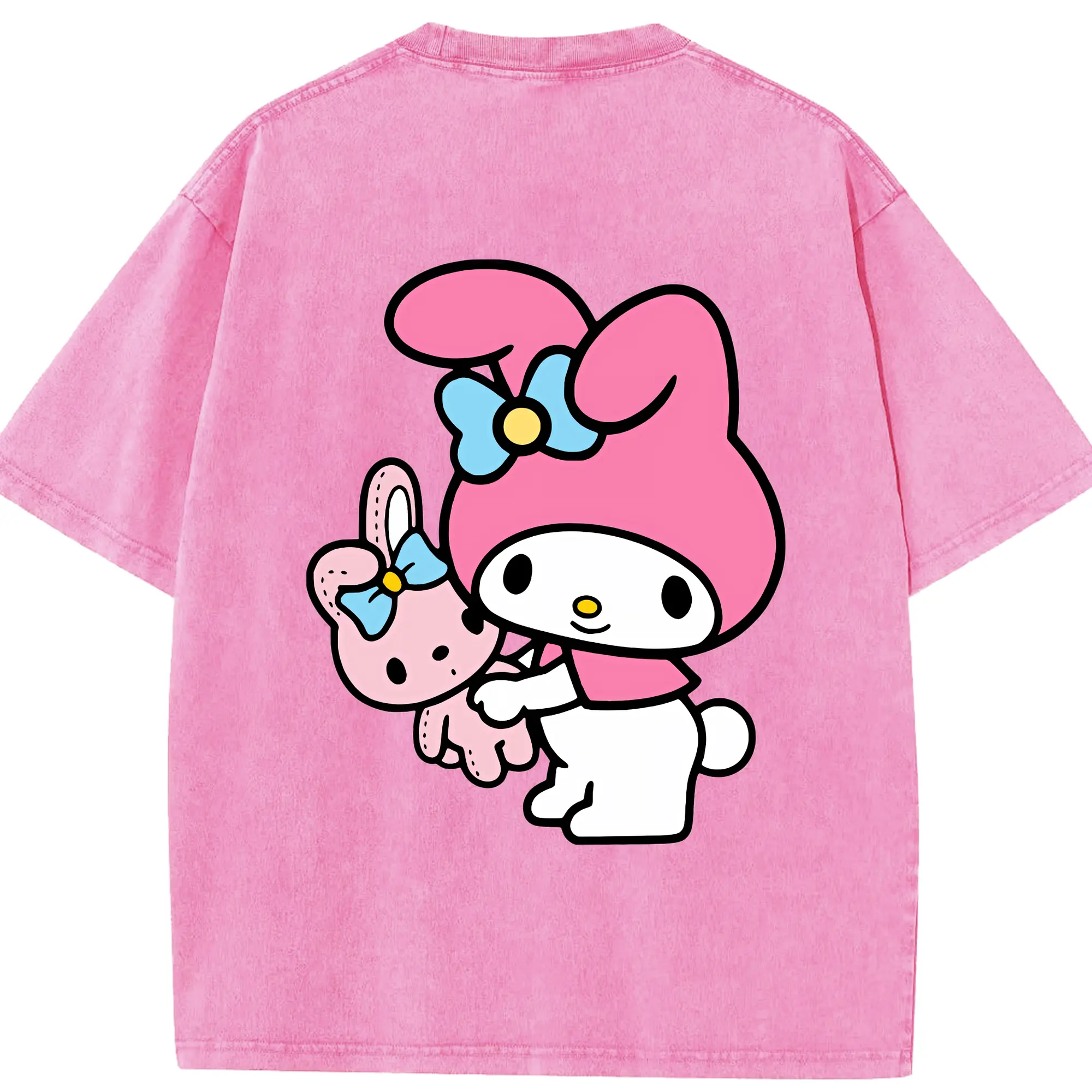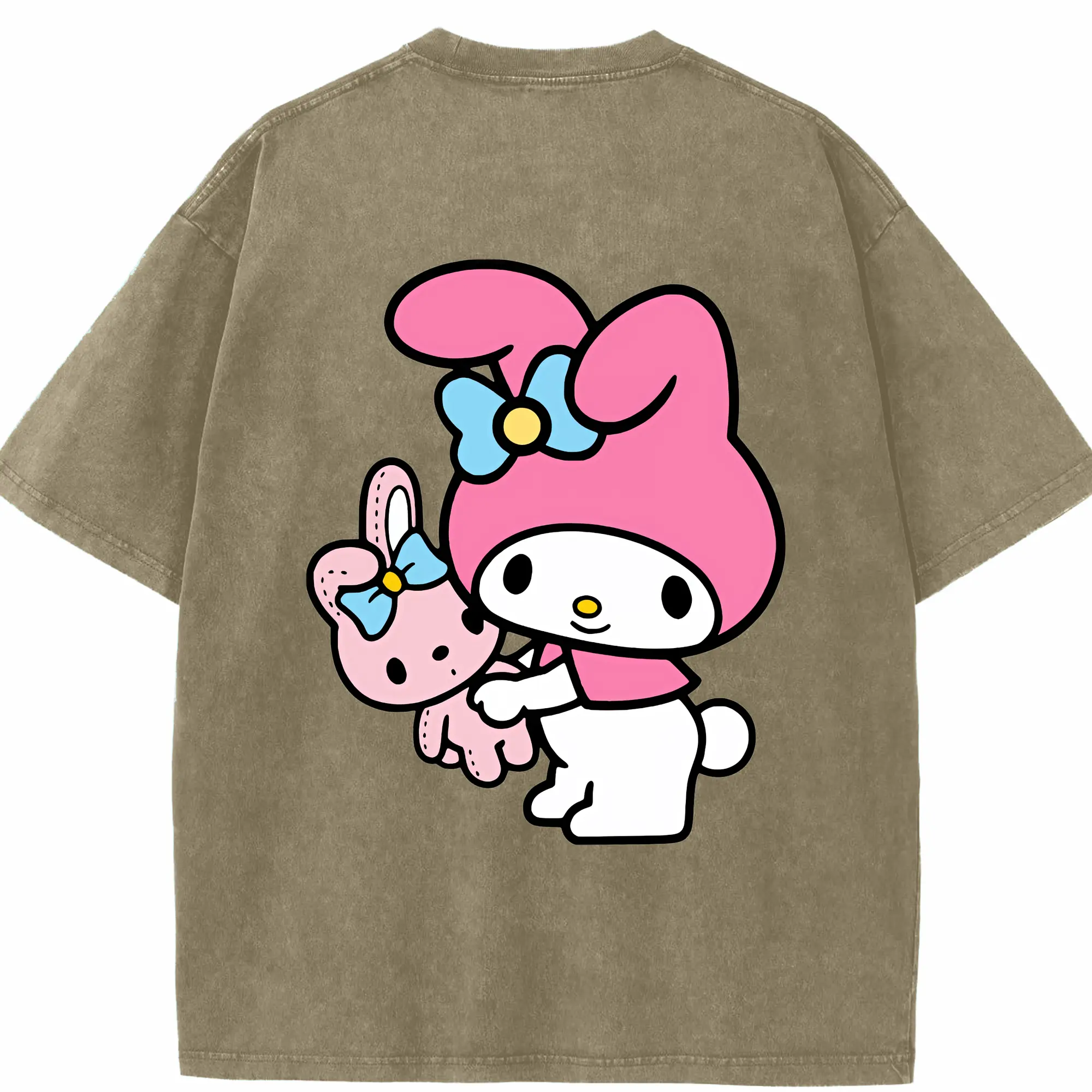 サンリオ グッズ,マイメロディ - 綿100% ヴィンテージ風 半袖Tシャツ ・ フロントプリント ・ 柔らか肌触り ・ 通気性 快適 ・ スポーツ カジュアル 外出用