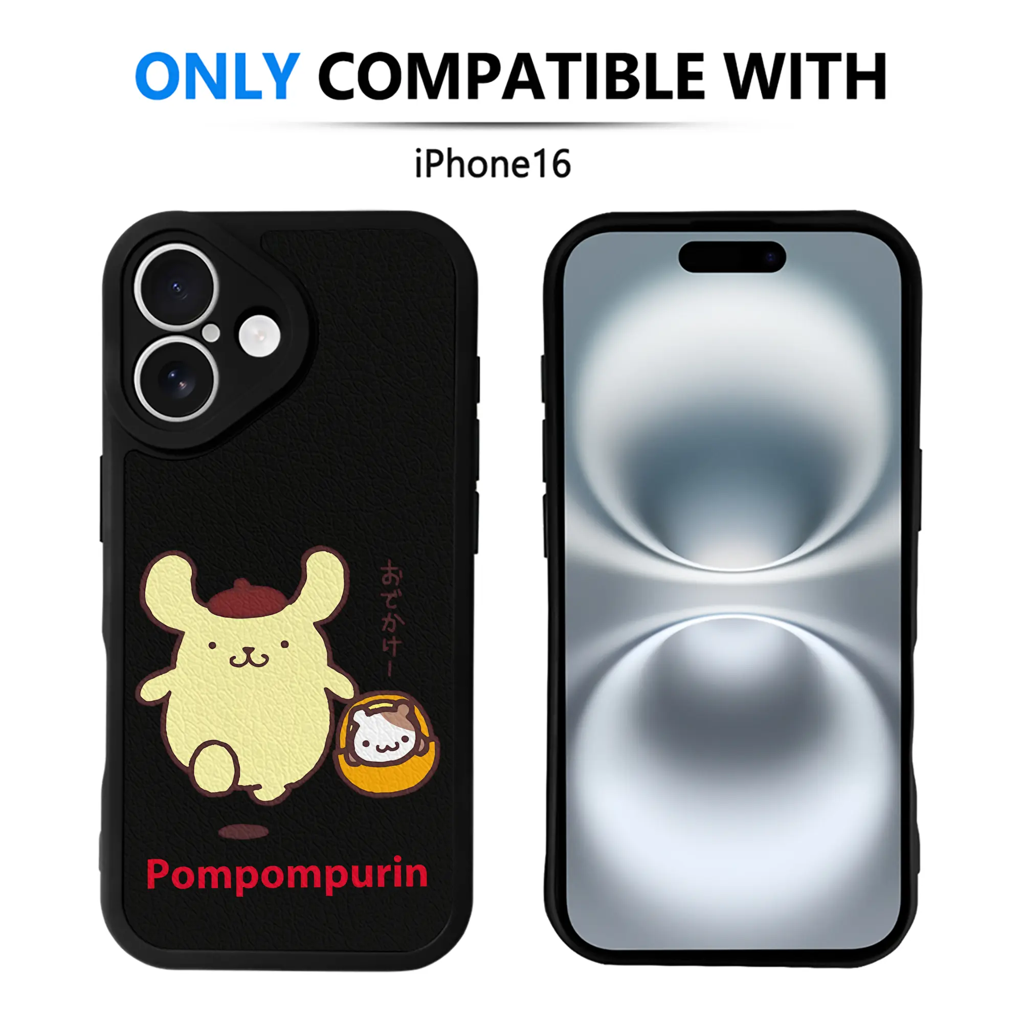 サンリオ グッズ,ポムポムプリン - IPhone 16シリーズ対応 ・ シリコンスマホケース ・ レザー調 ・ 高精度フィット ・ 耐衝撃 ・ ワイヤレス充電対応 ・ 精密カット