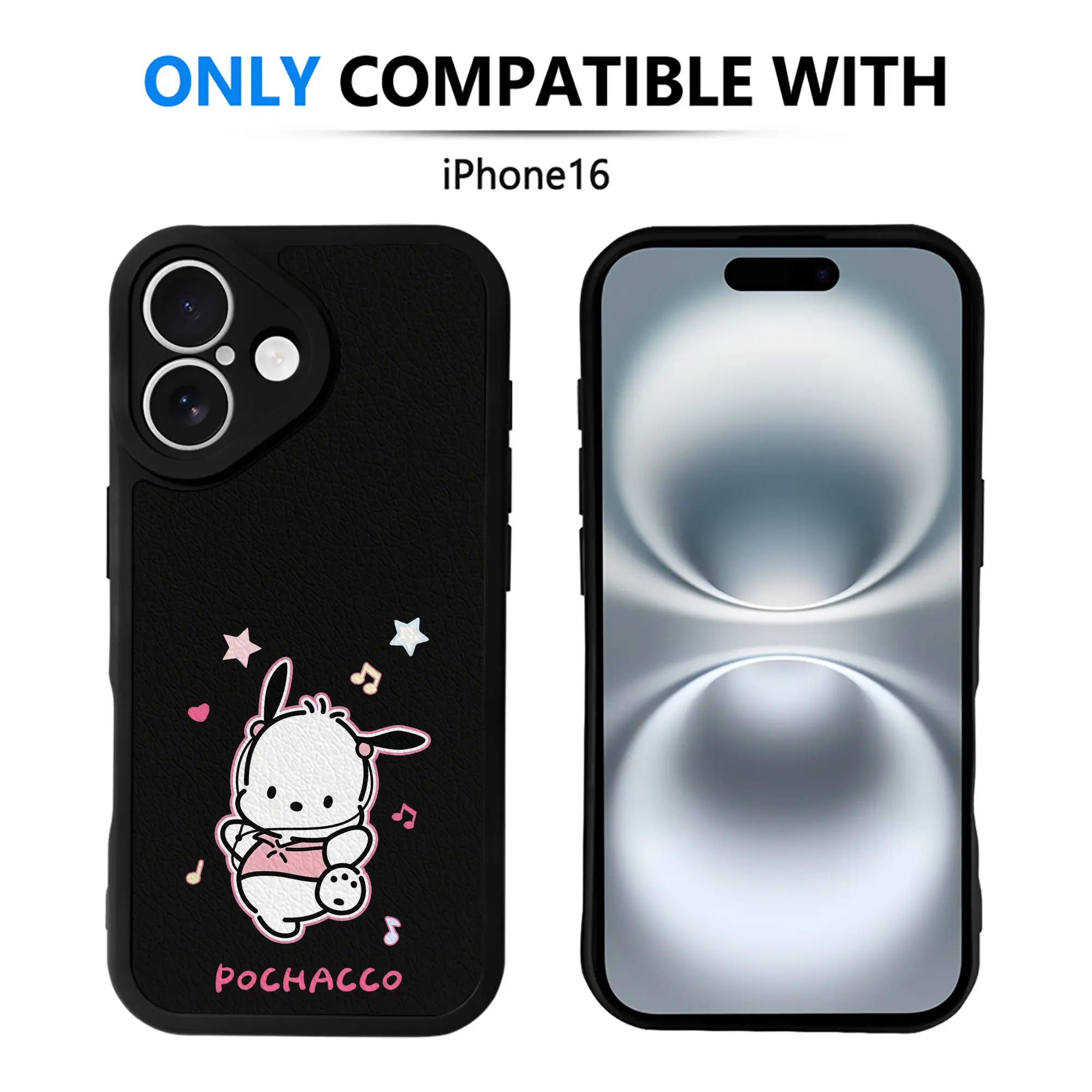 サンリオ グッズ,ポチャッコ - IPhone 16シリーズ対応 ・ シリコンスマホケース ・ レザー調 ・ 高精度フィット ・ 耐衝撃 ・ ワイヤレス充電対応 ・ 精密カット