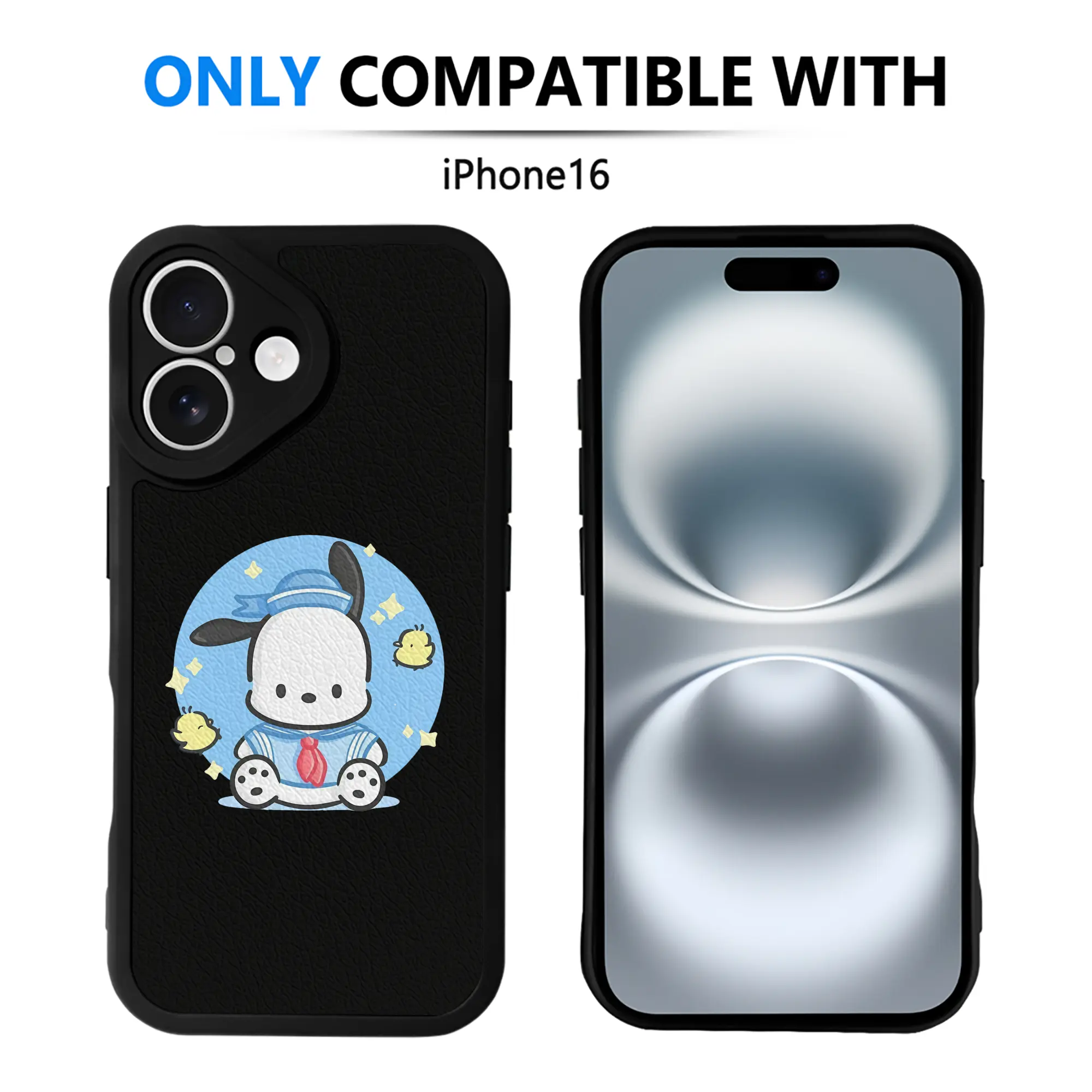 サンリオ グッズ,ポチャッコ - IPhone 16シリーズ対応 ・ シリコンスマホケース ・ レザー調 ・ 高精度フィット ・ 耐衝撃 ・ ワイヤレス充電対応 ・ 精密カット