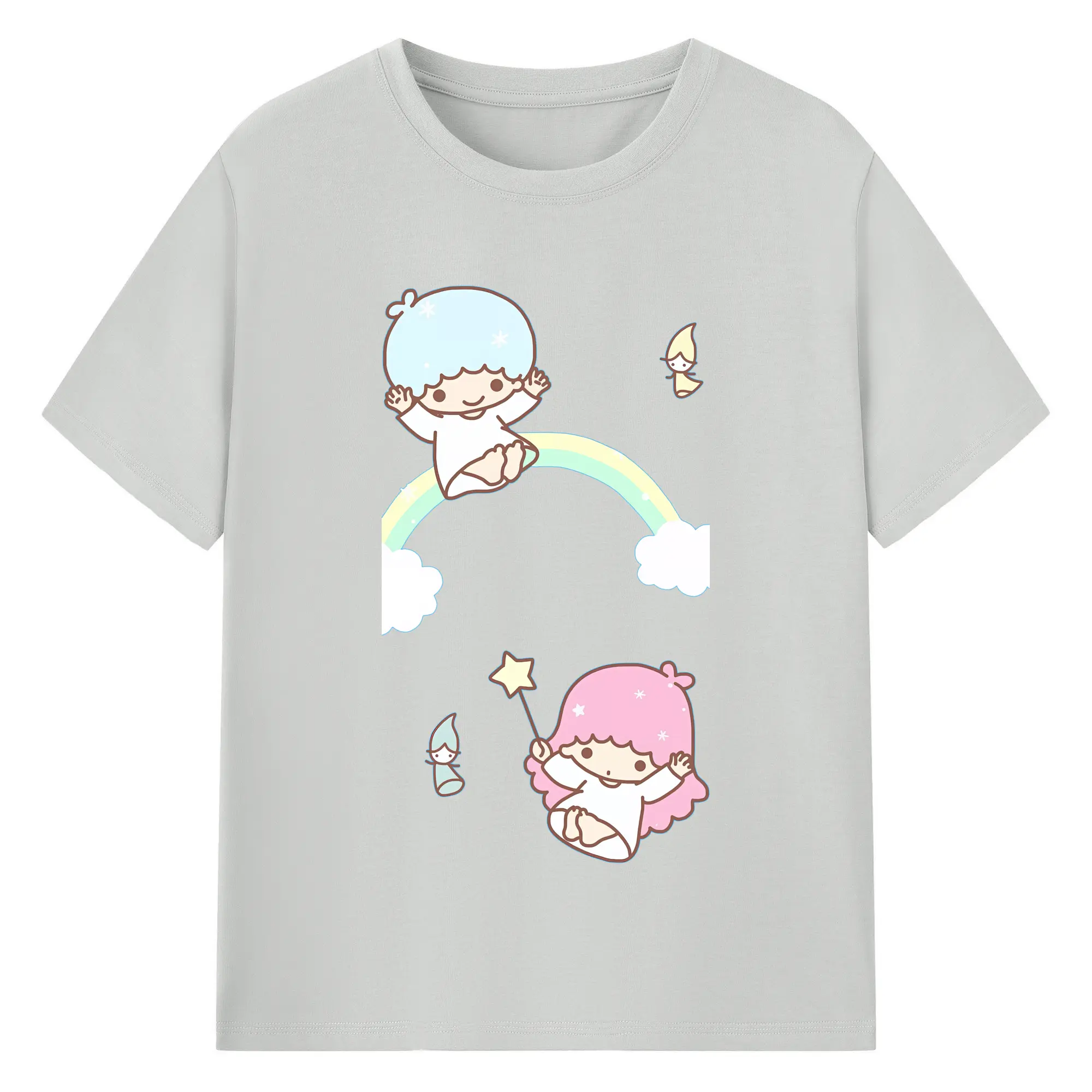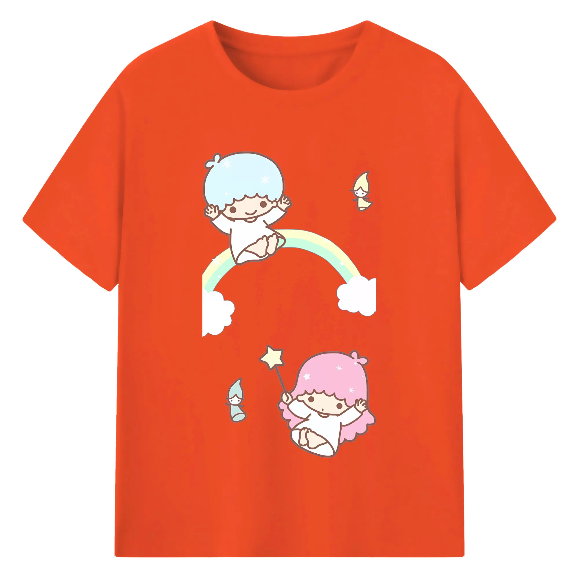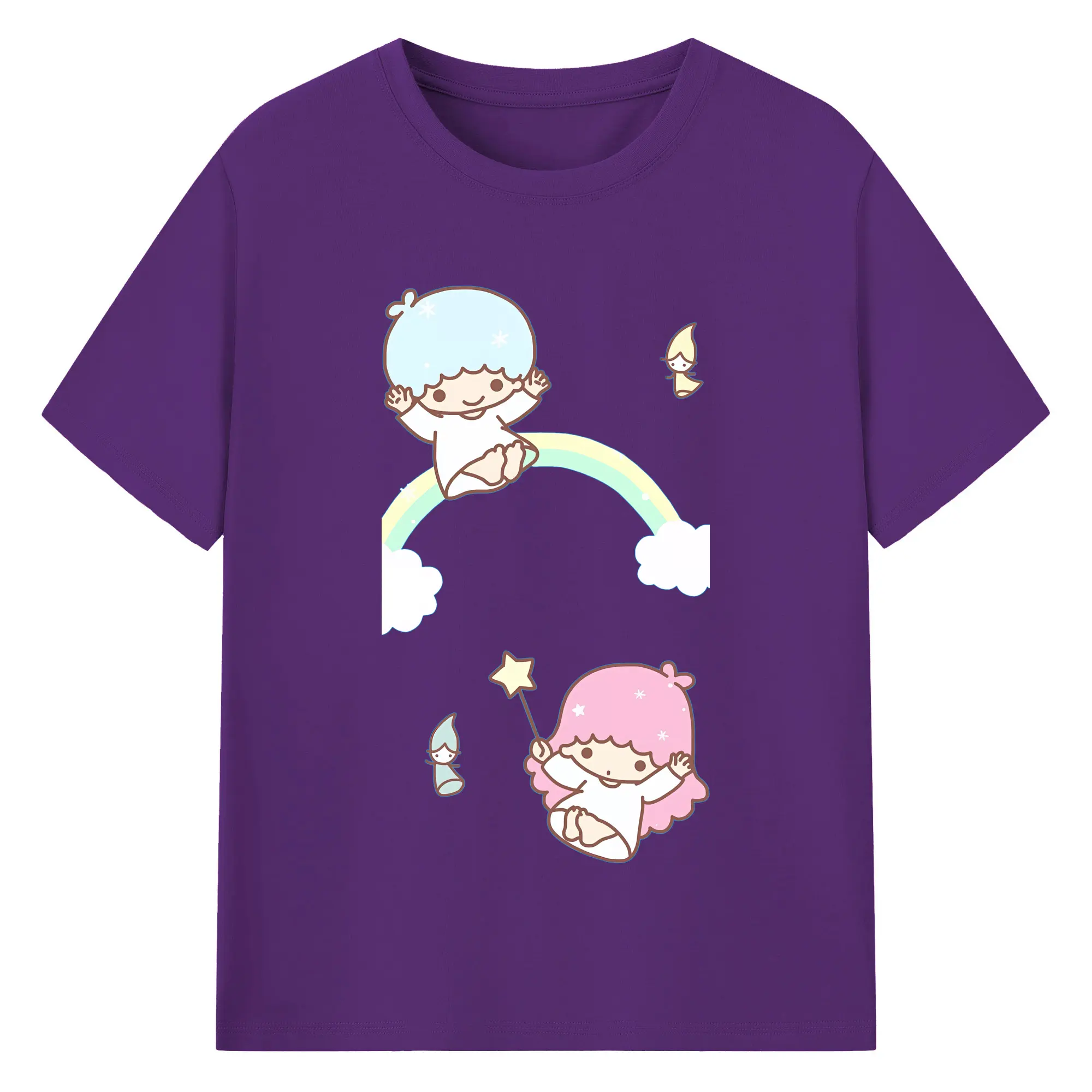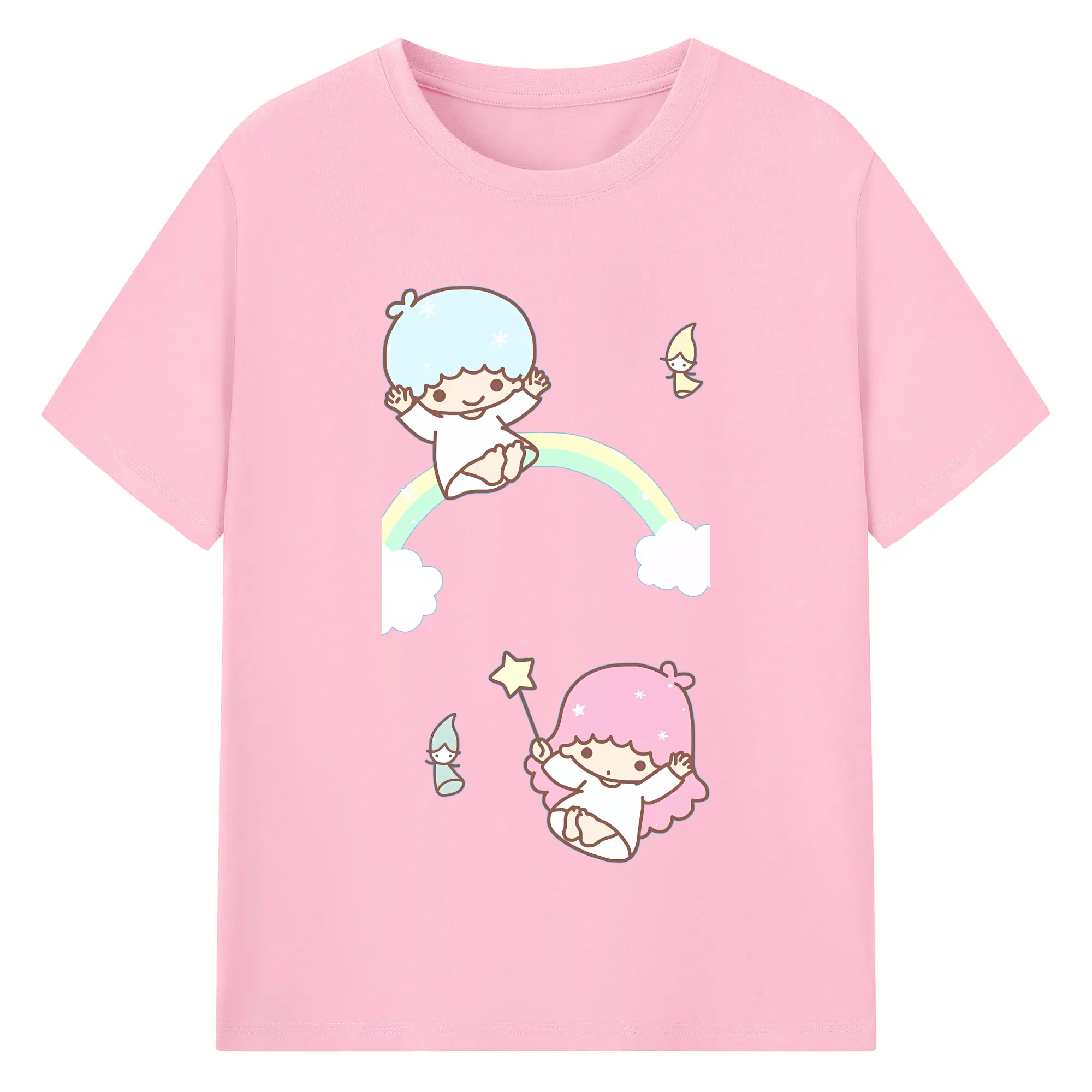 サンリオ グッズ,リトルツインスターズ - 綿100% 半袖Tシャツ ・ バックプリント ・ 快適 通気性 ・ 日常使い 散歩 スポーツ用