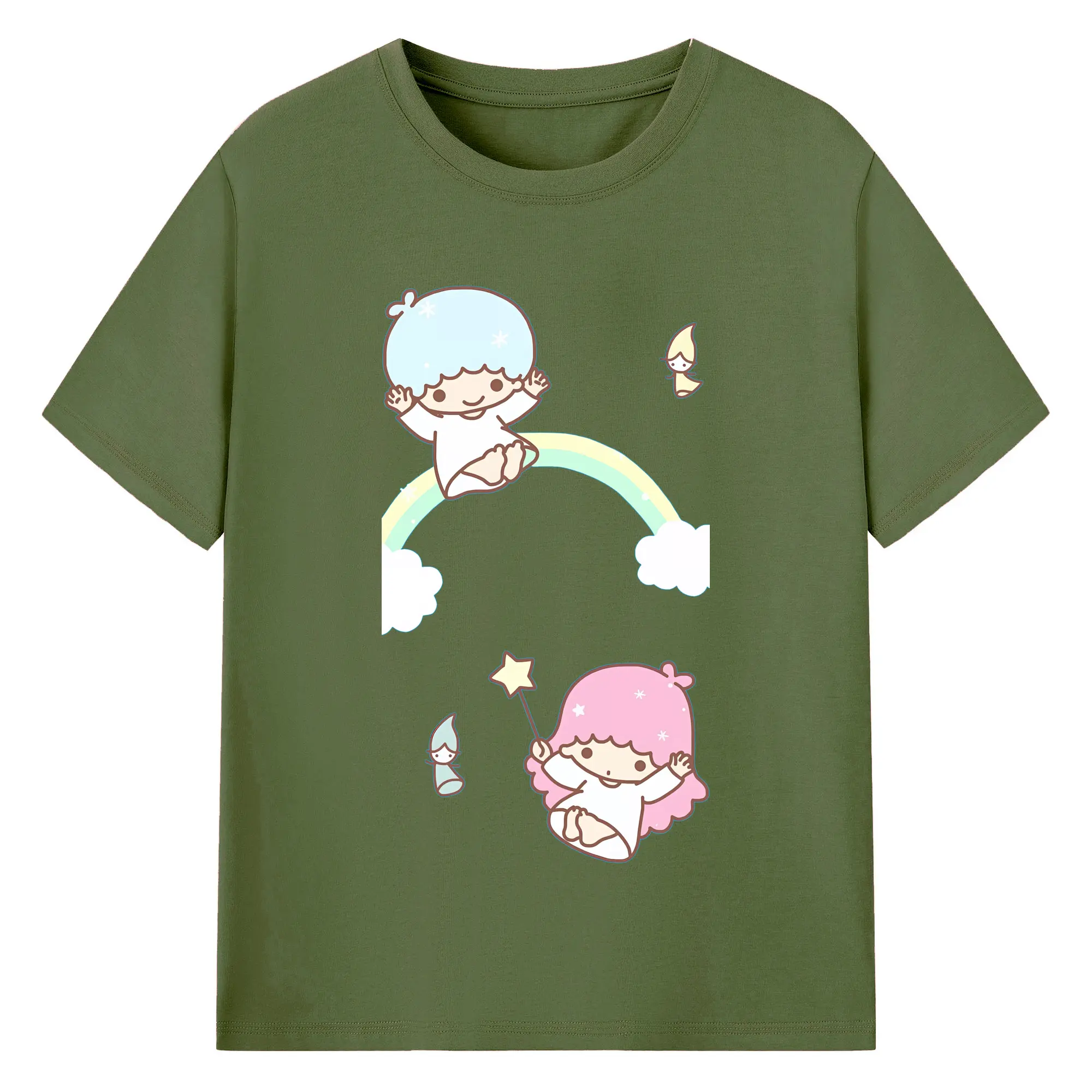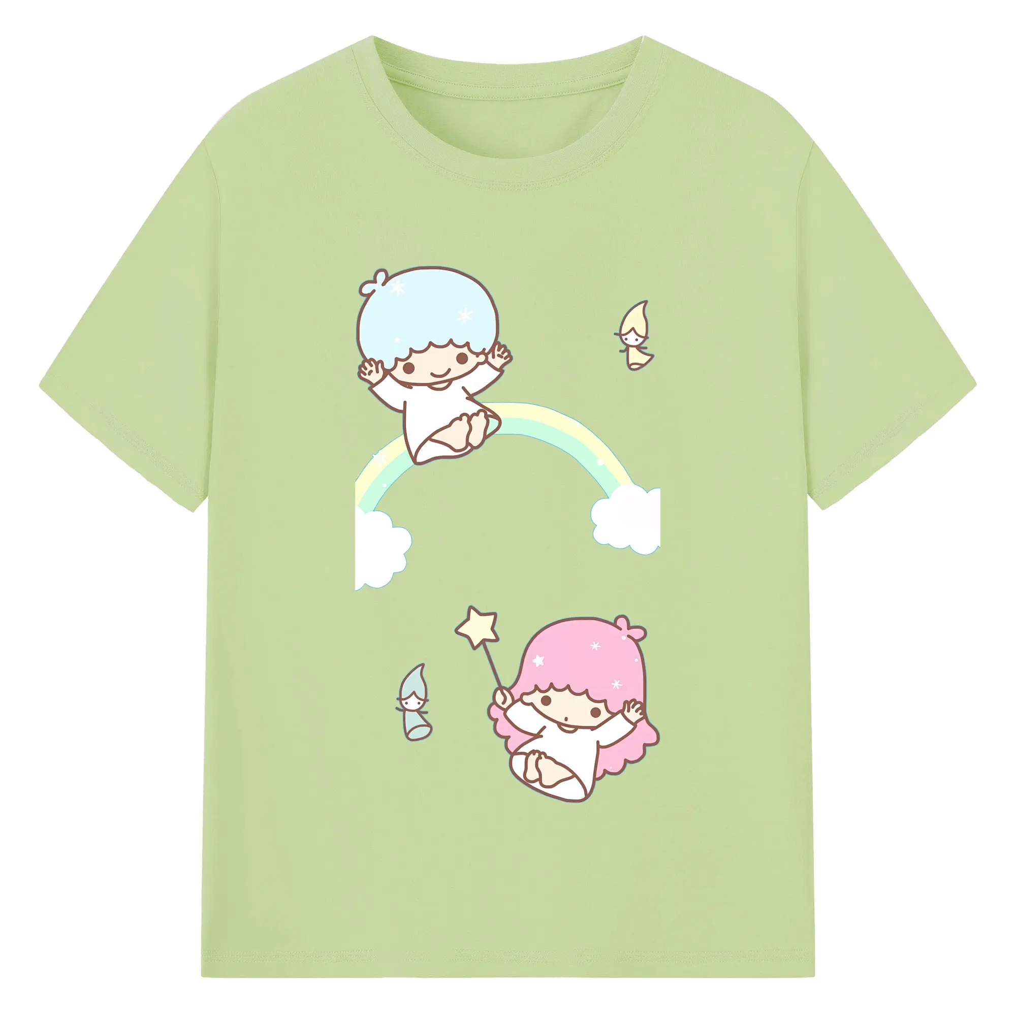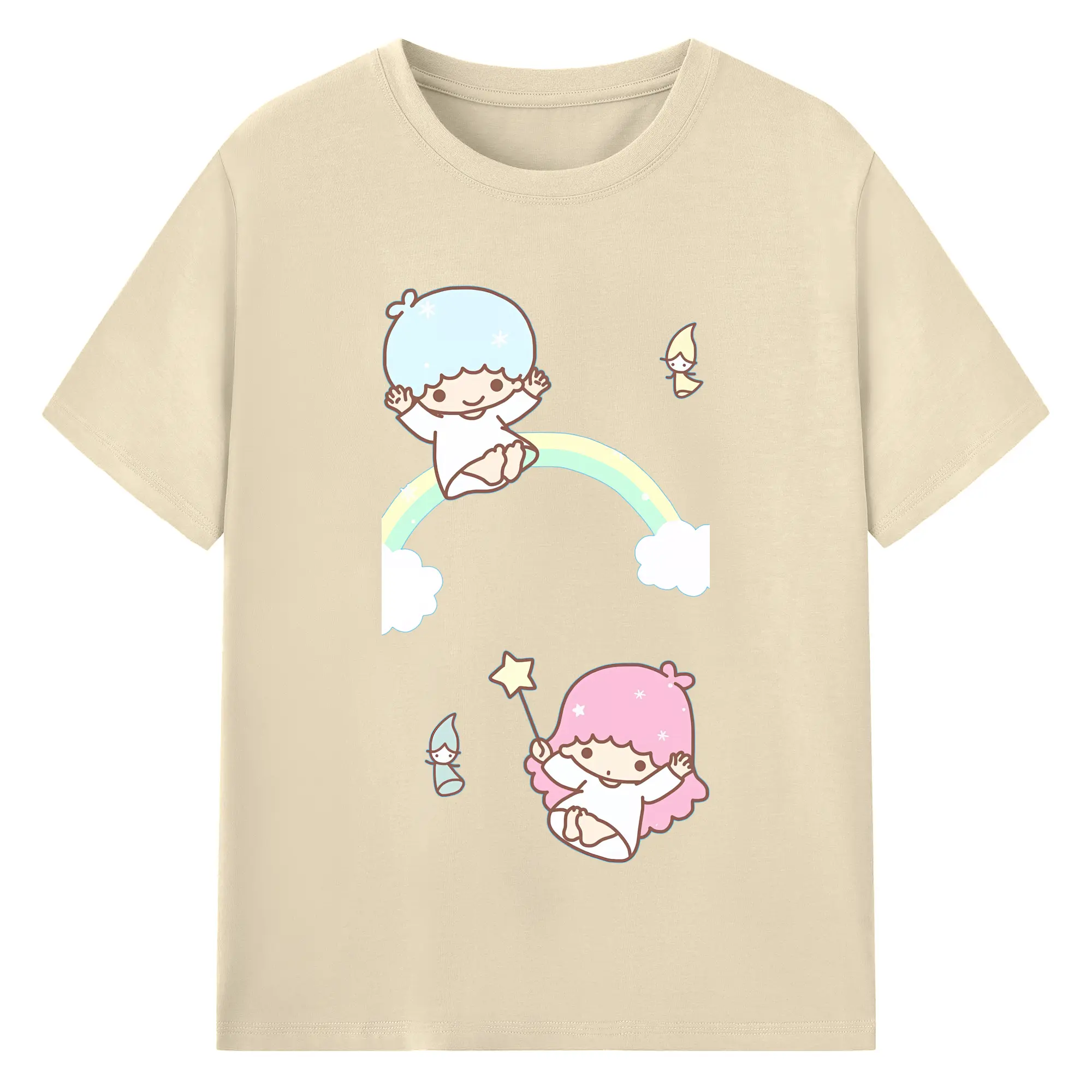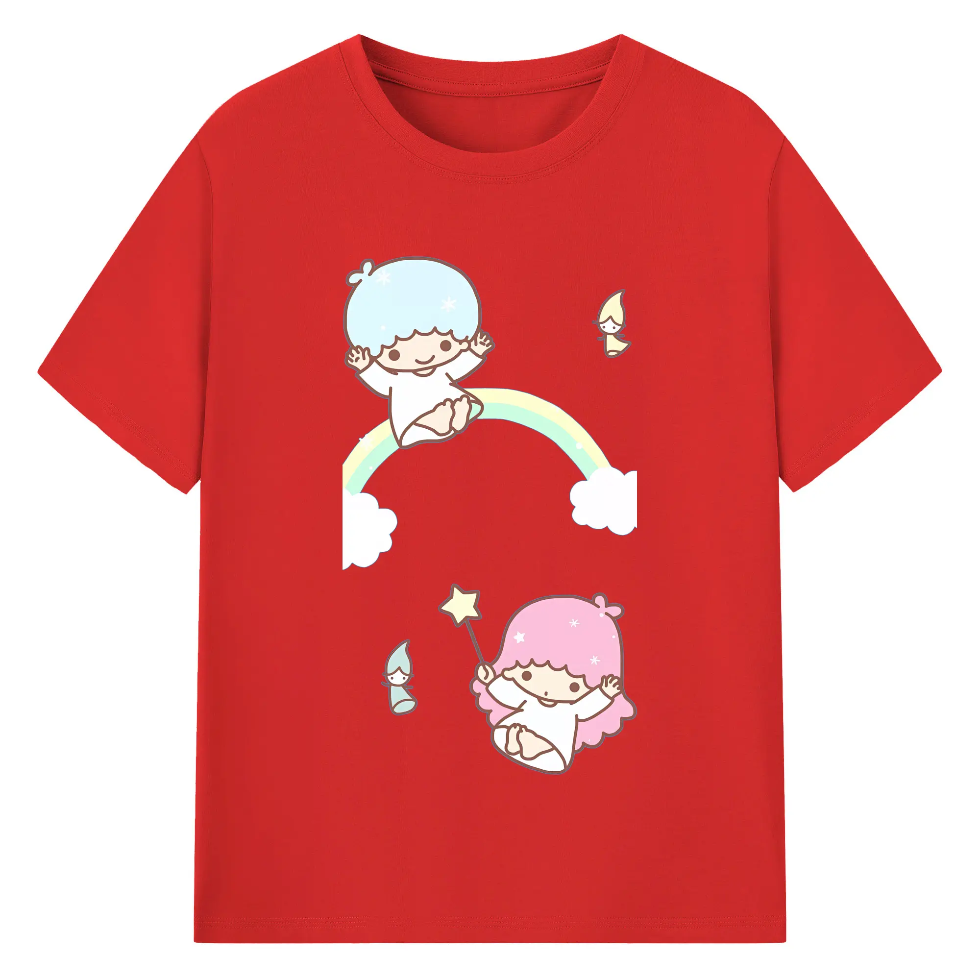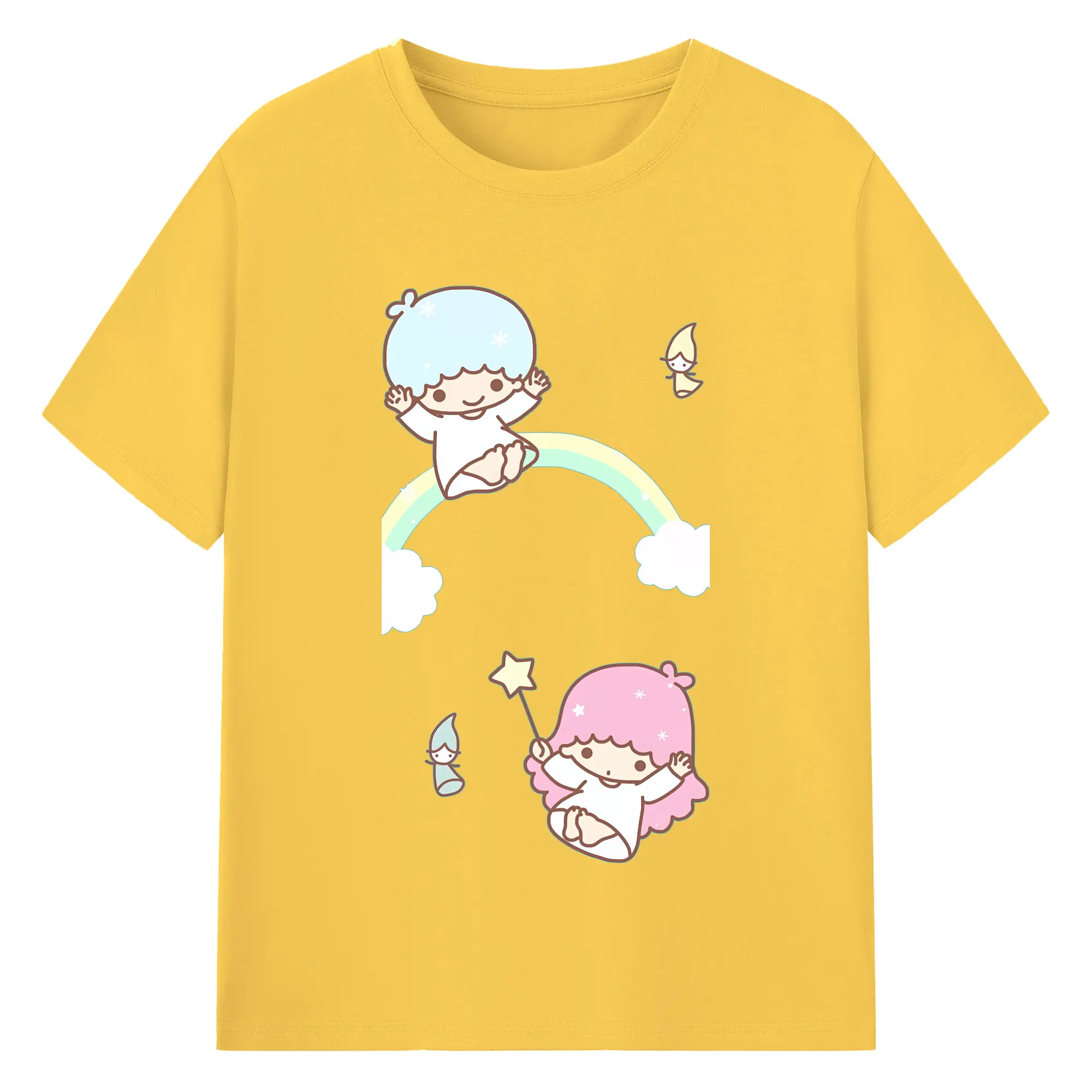 サンリオ グッズ,リトルツインスターズ - 綿100% 半袖Tシャツ ・ バックプリント ・ 快適 通気性 ・ 日常使い 散歩 スポーツ用