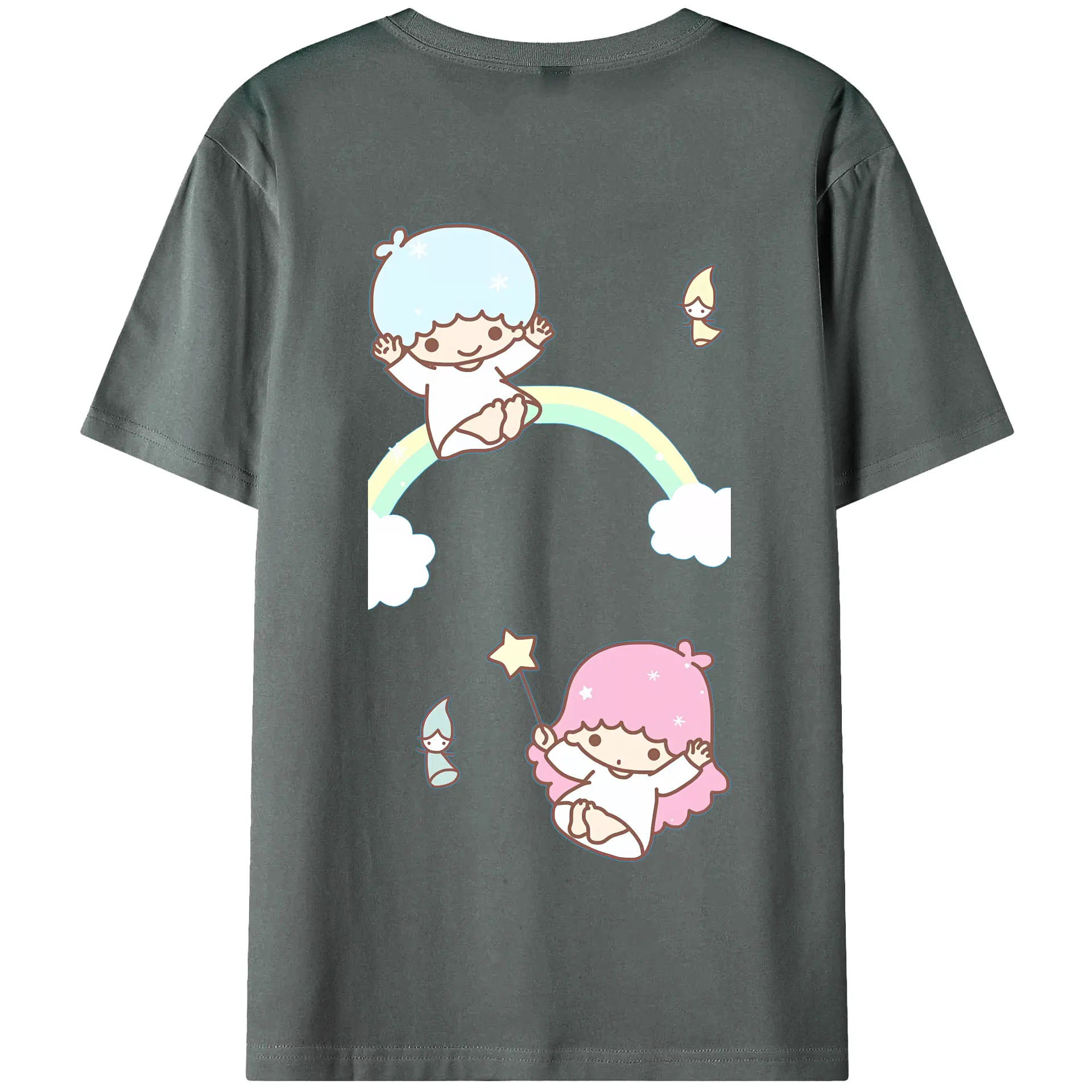 サンリオ グッズ,リトルツインスターズ - 綿100% 半袖Tシャツ ・ フロントプリント ・ 快適 通気性 ・ 日常使い 散歩 スポーツ用