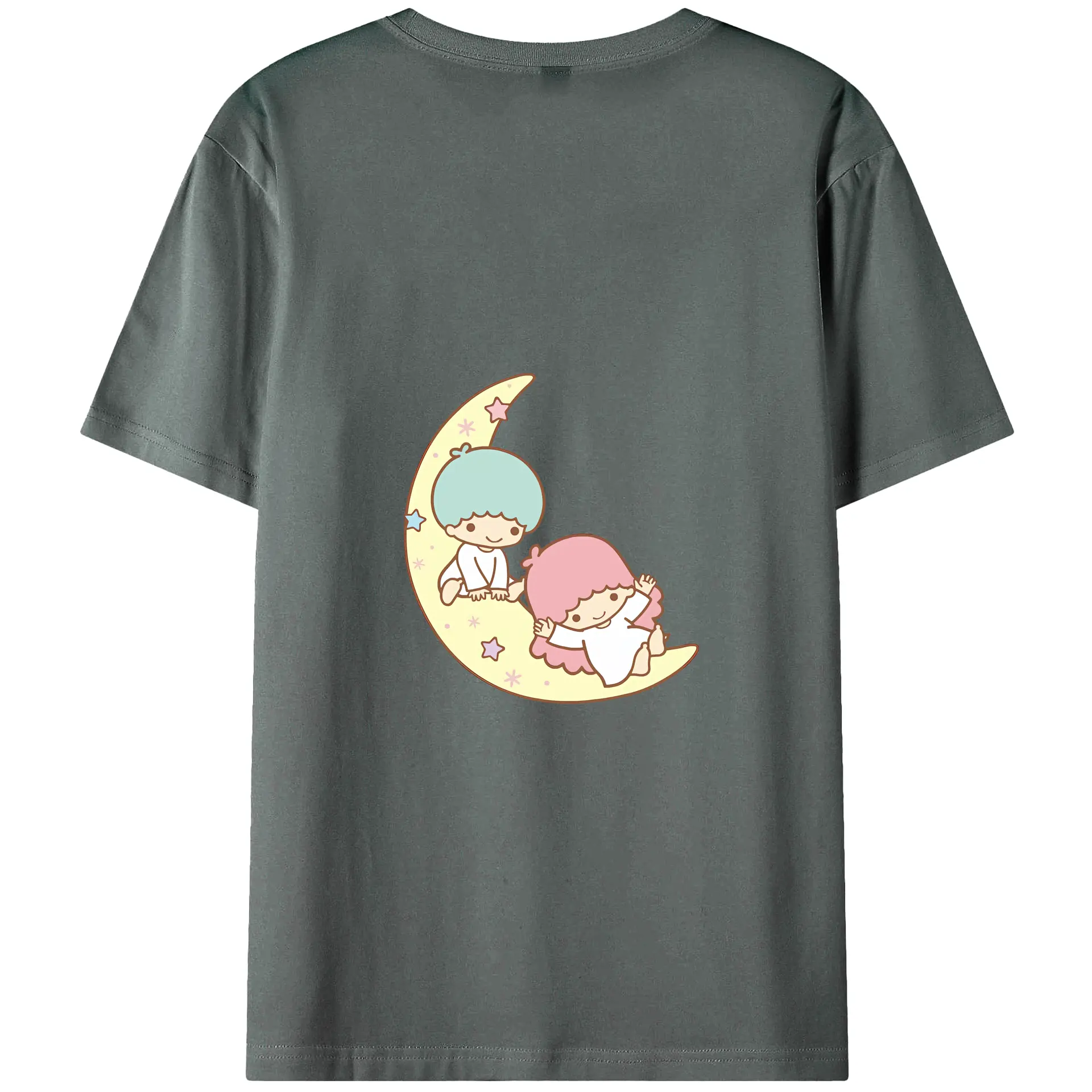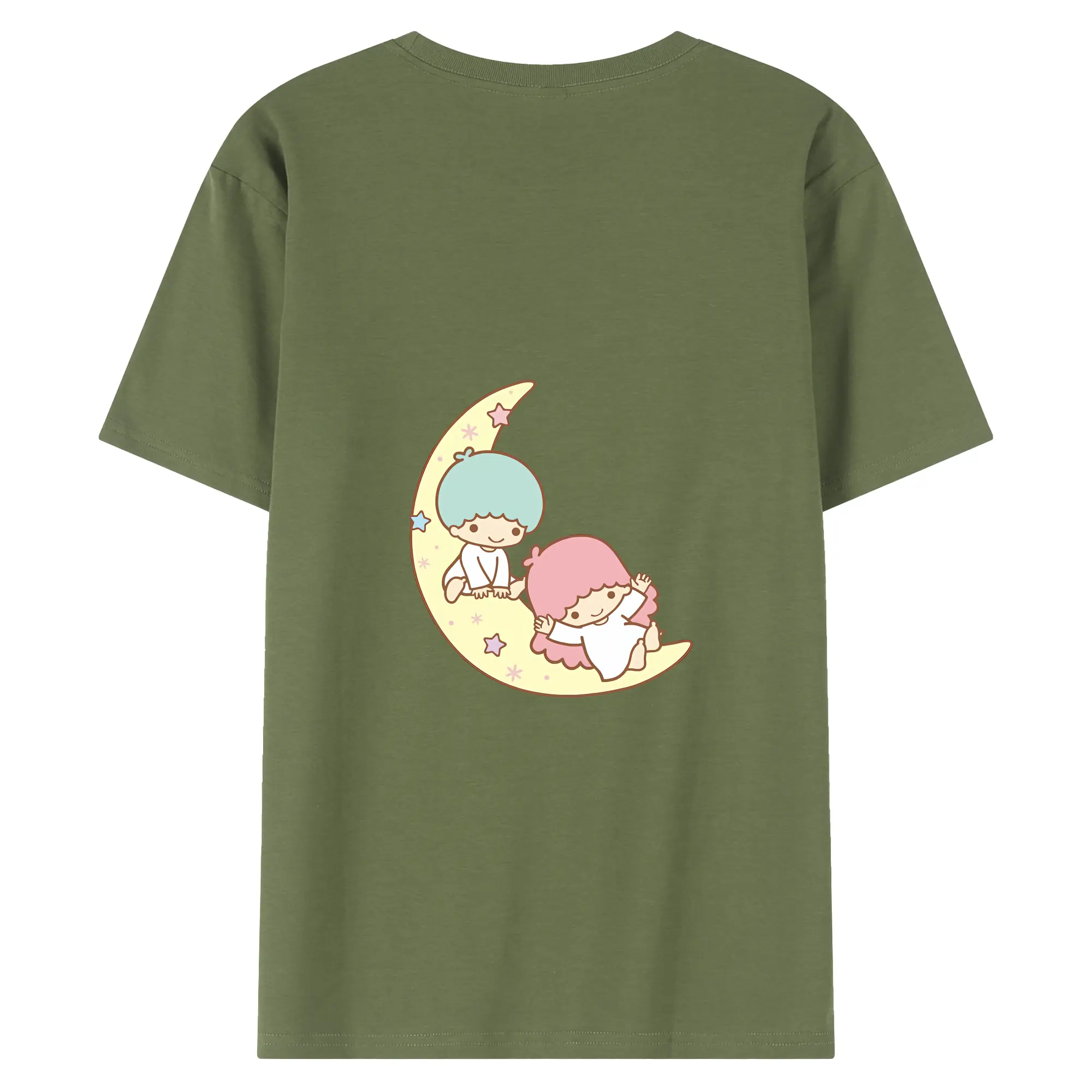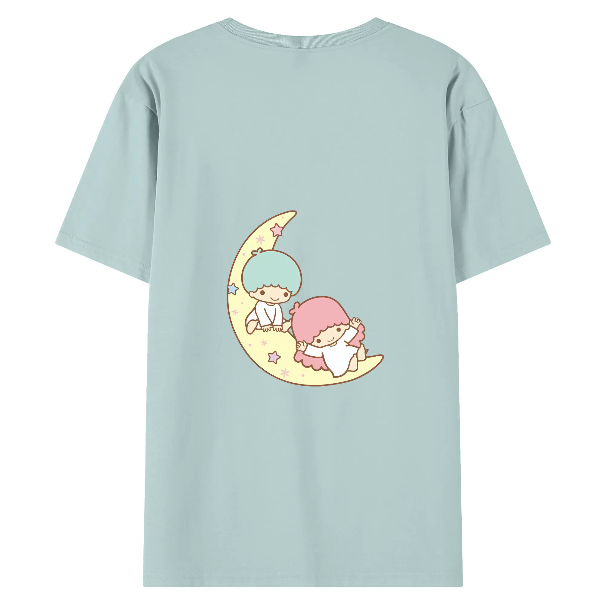 サンリオ グッズ,リトルツインスターズ - 綿100% ヴィンテージ風 半袖Tシャツ ・ 背面プリント ・ 柔らか肌触り ・ 通気性 快適 ・ スポーツ カジュアル 外出用