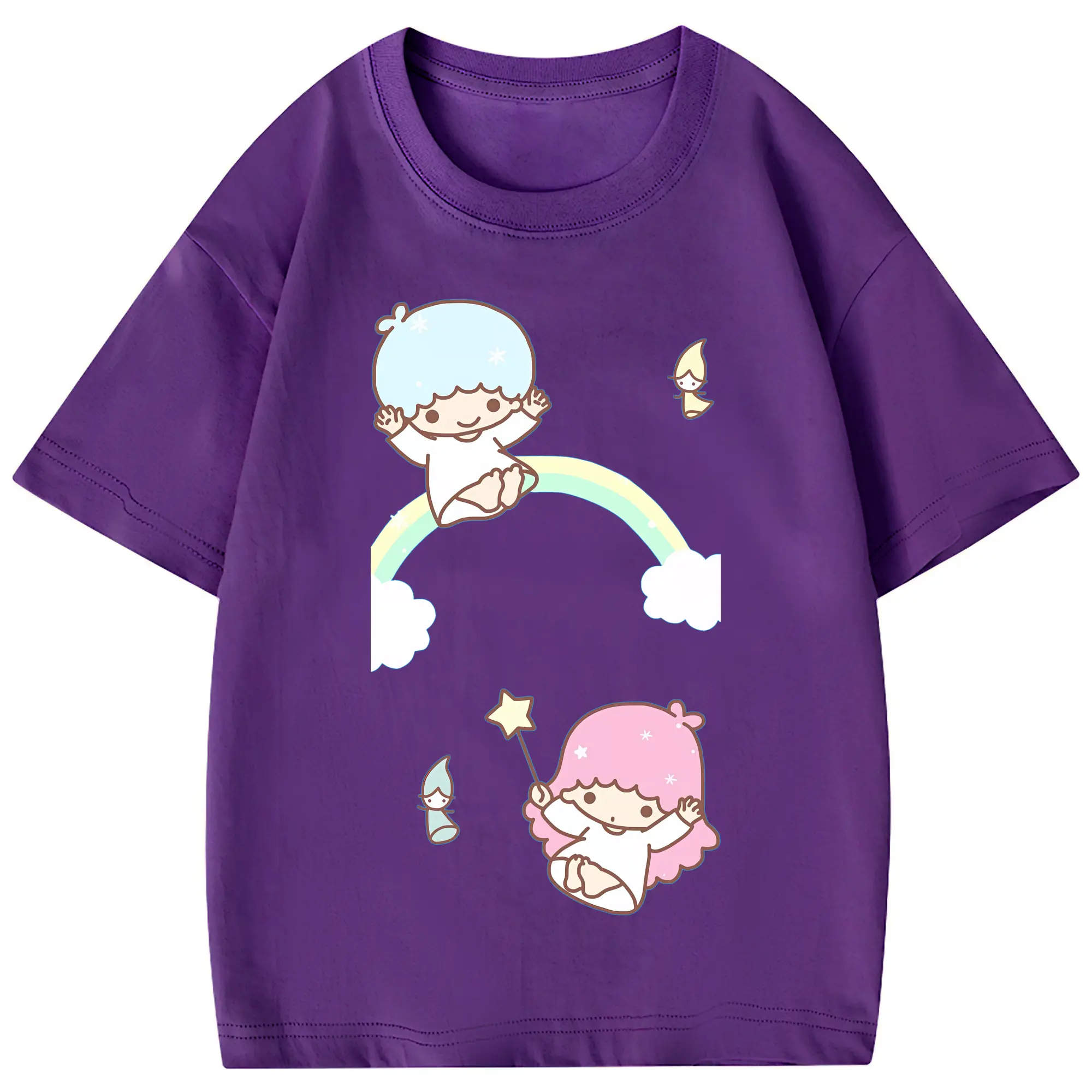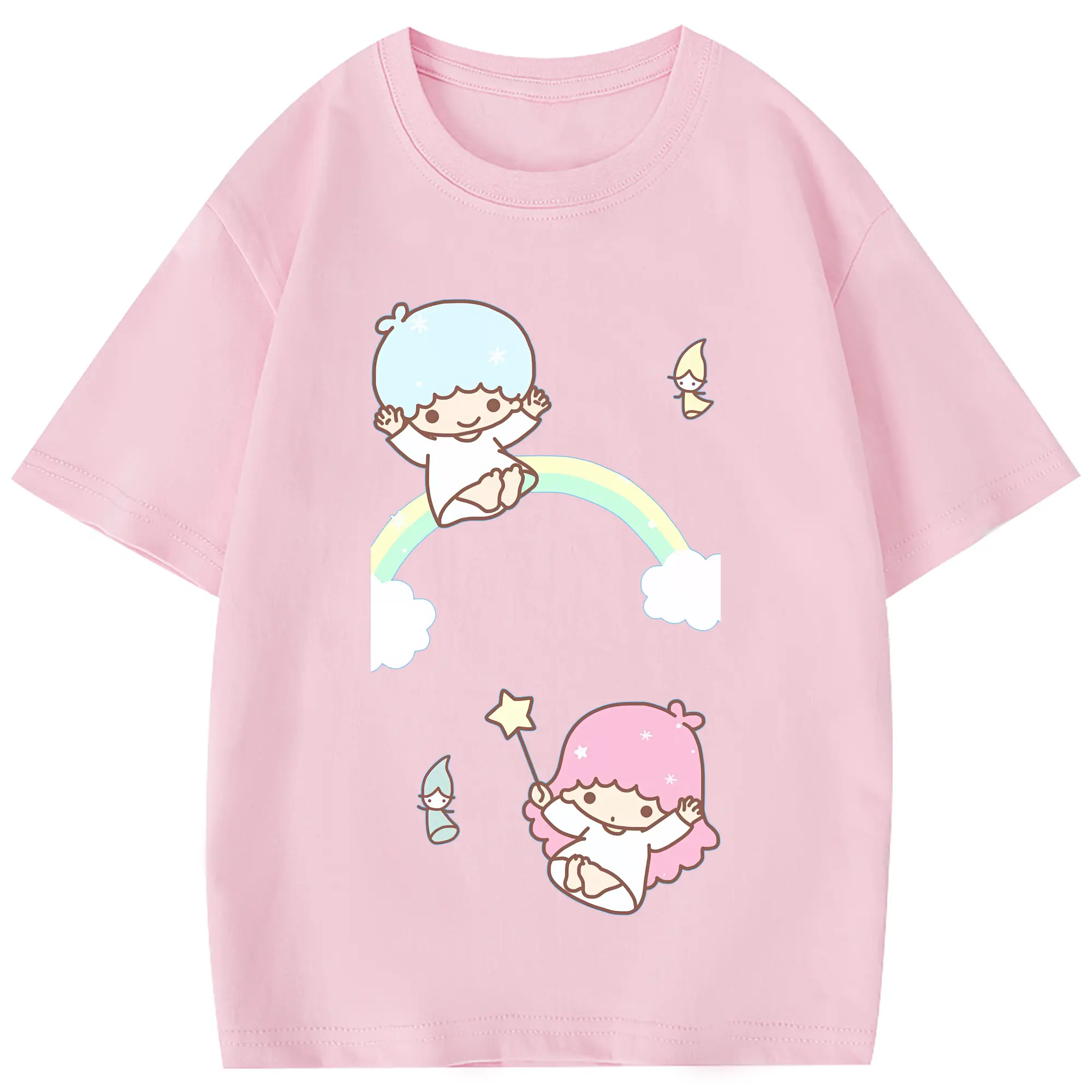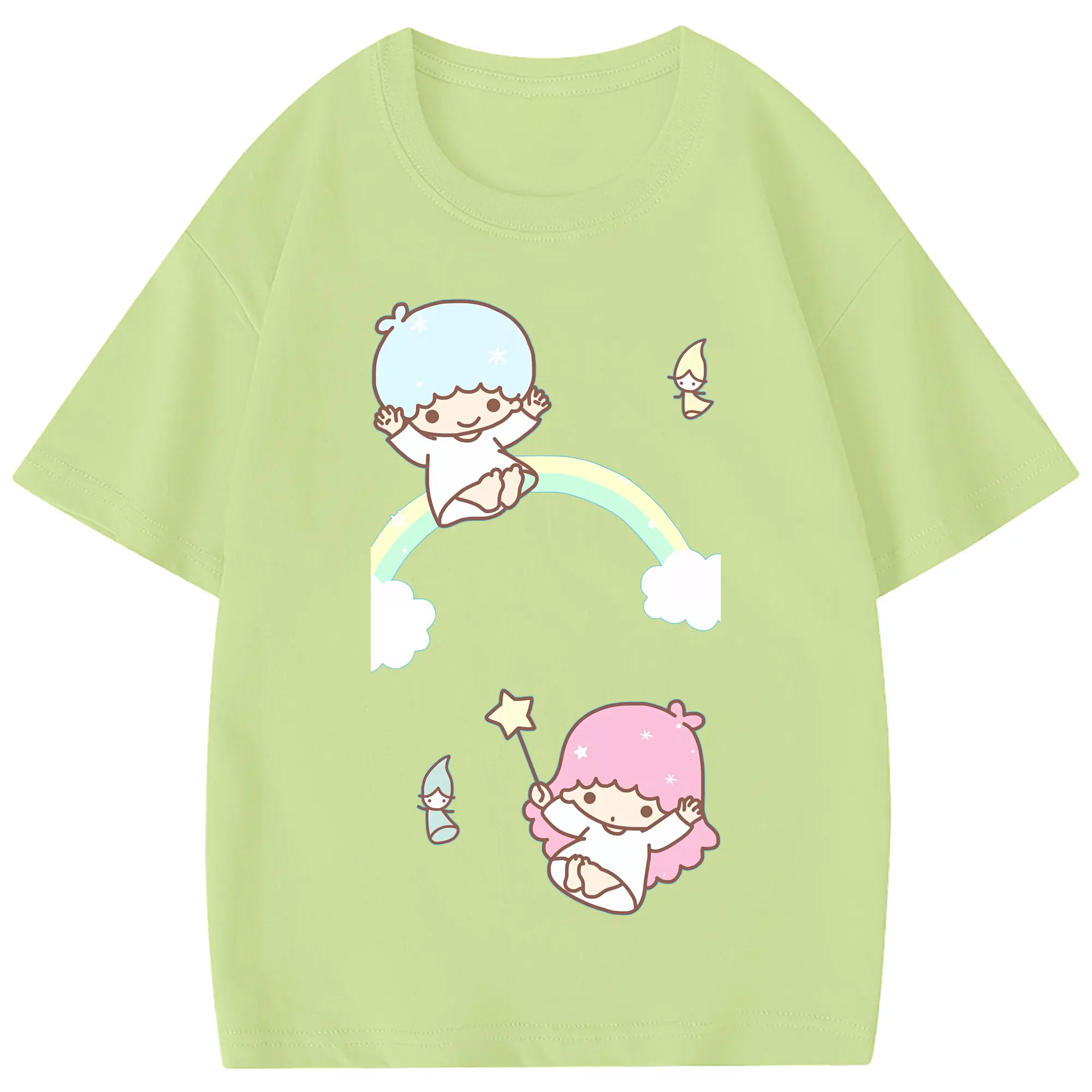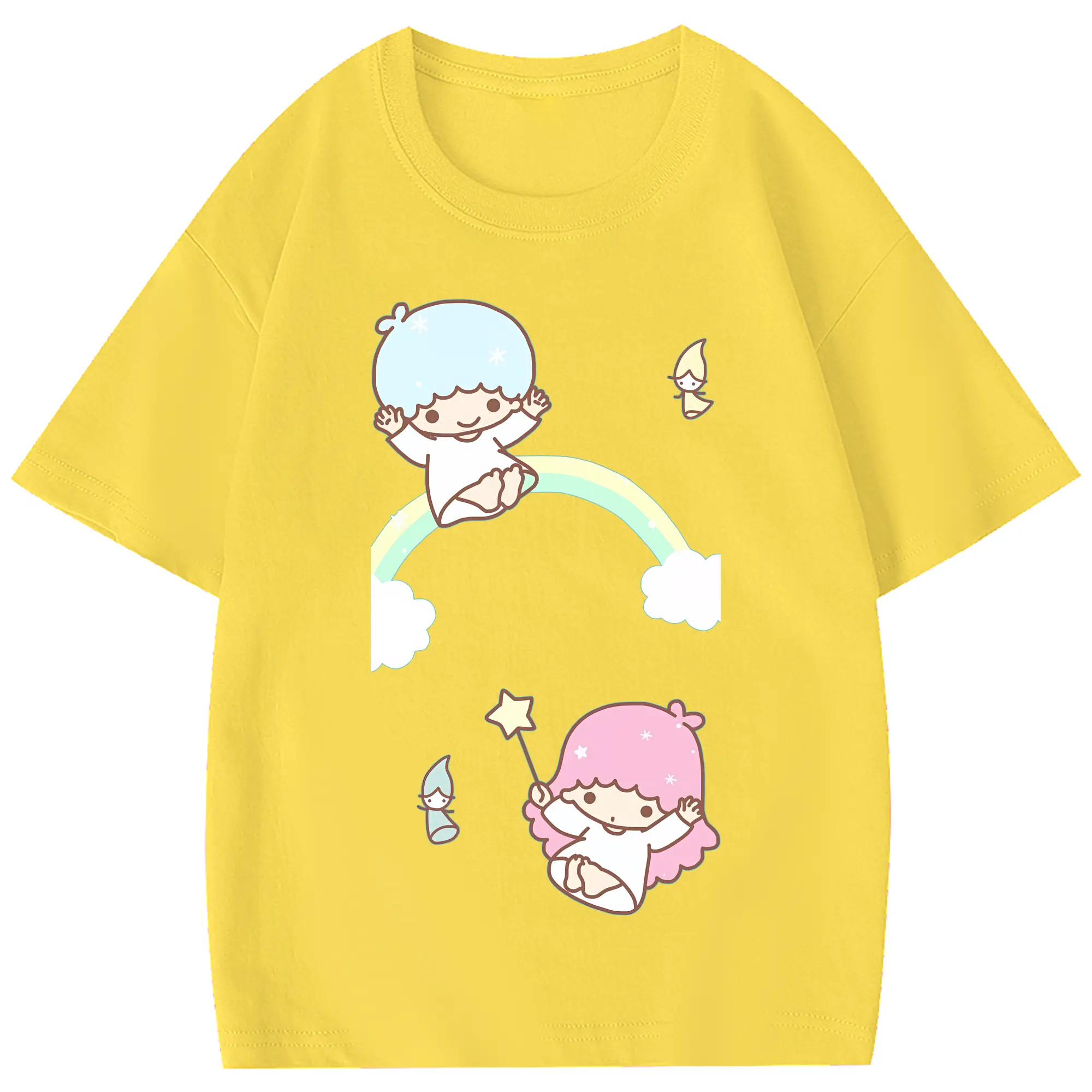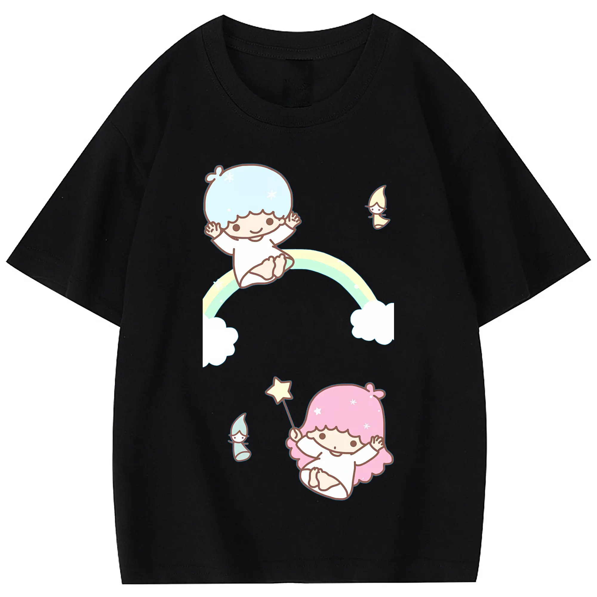 サンリオ グッズ,リトルツインスターズ - 綿100% 半袖Tシャツ ・ フロントプリント ・ 快適 通気性 ・ 日常使い 散歩 スポーツ用