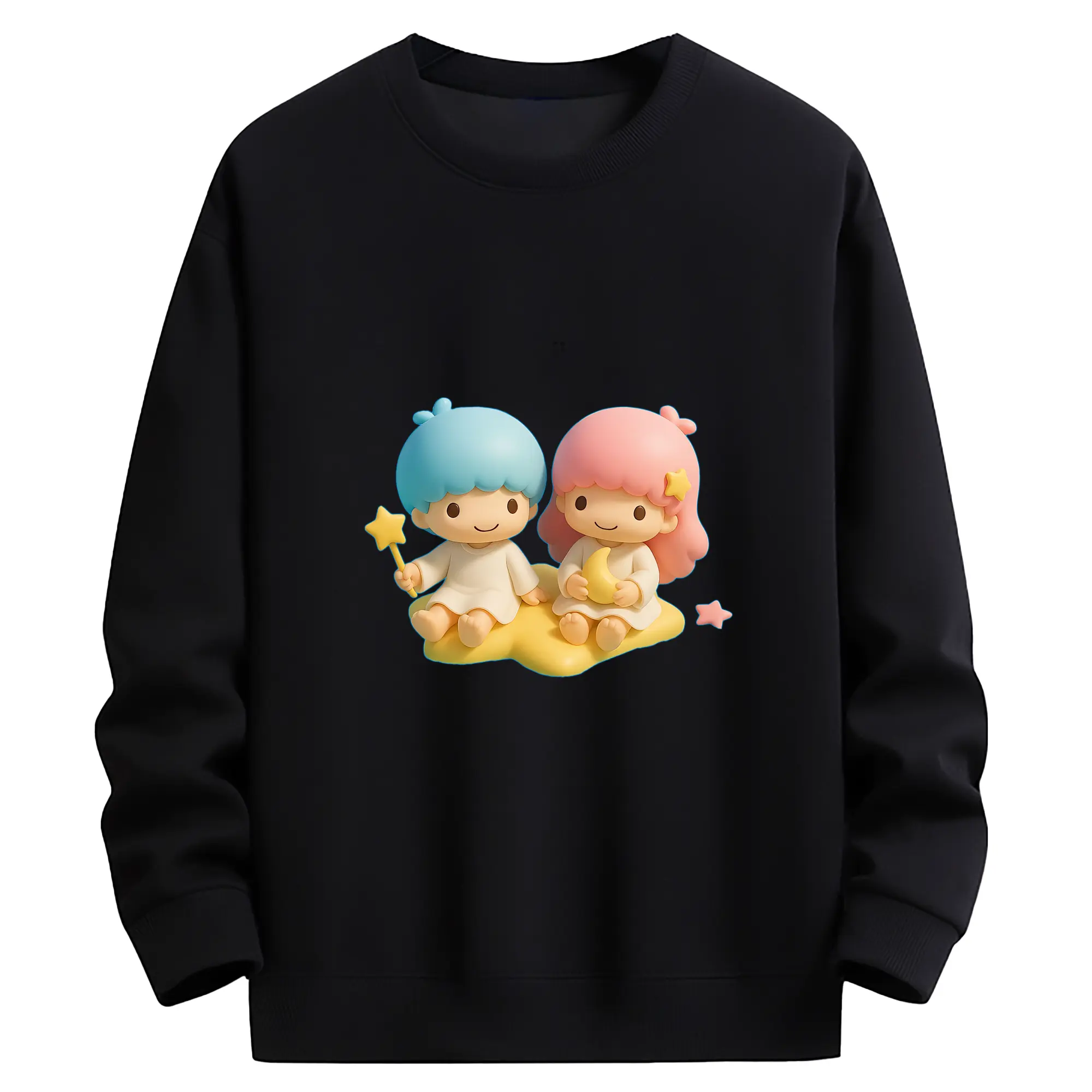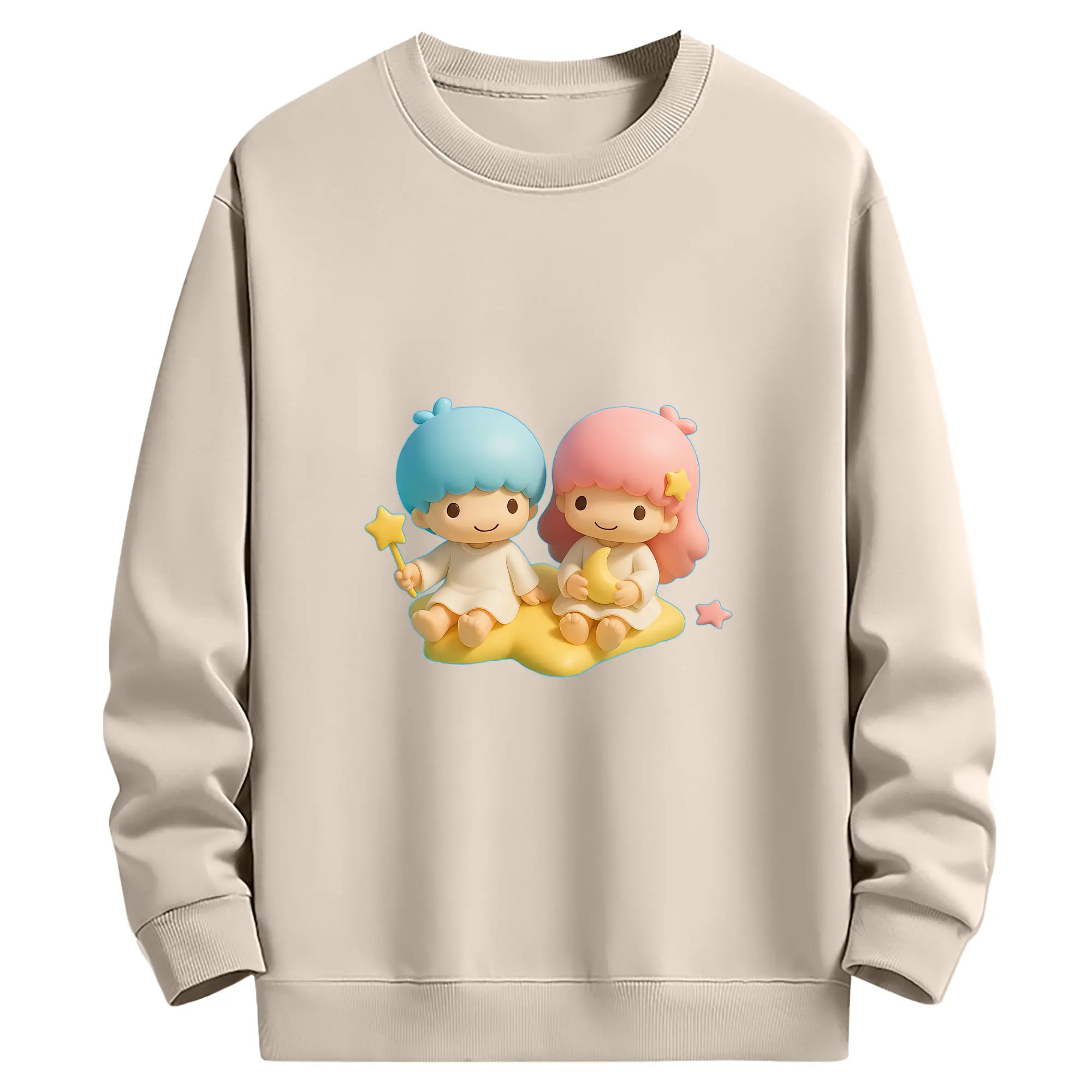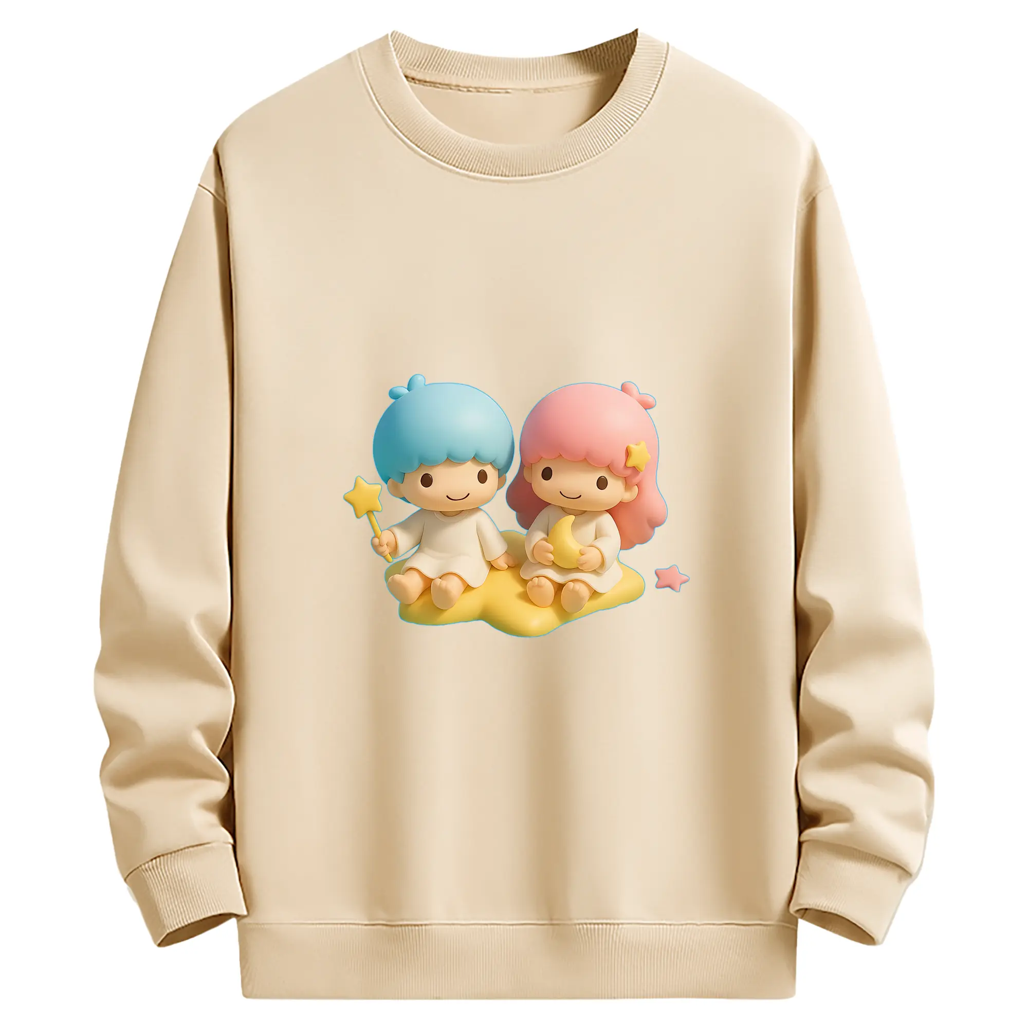 サンリオ グッズ,リトルツインスターズ - 薄手 クルーネック スウェット 裏毛260g · ポリエステル 春秋向け カジュアル 男女兼用 · トレーナー デイリー スポーツ 散歩に最適