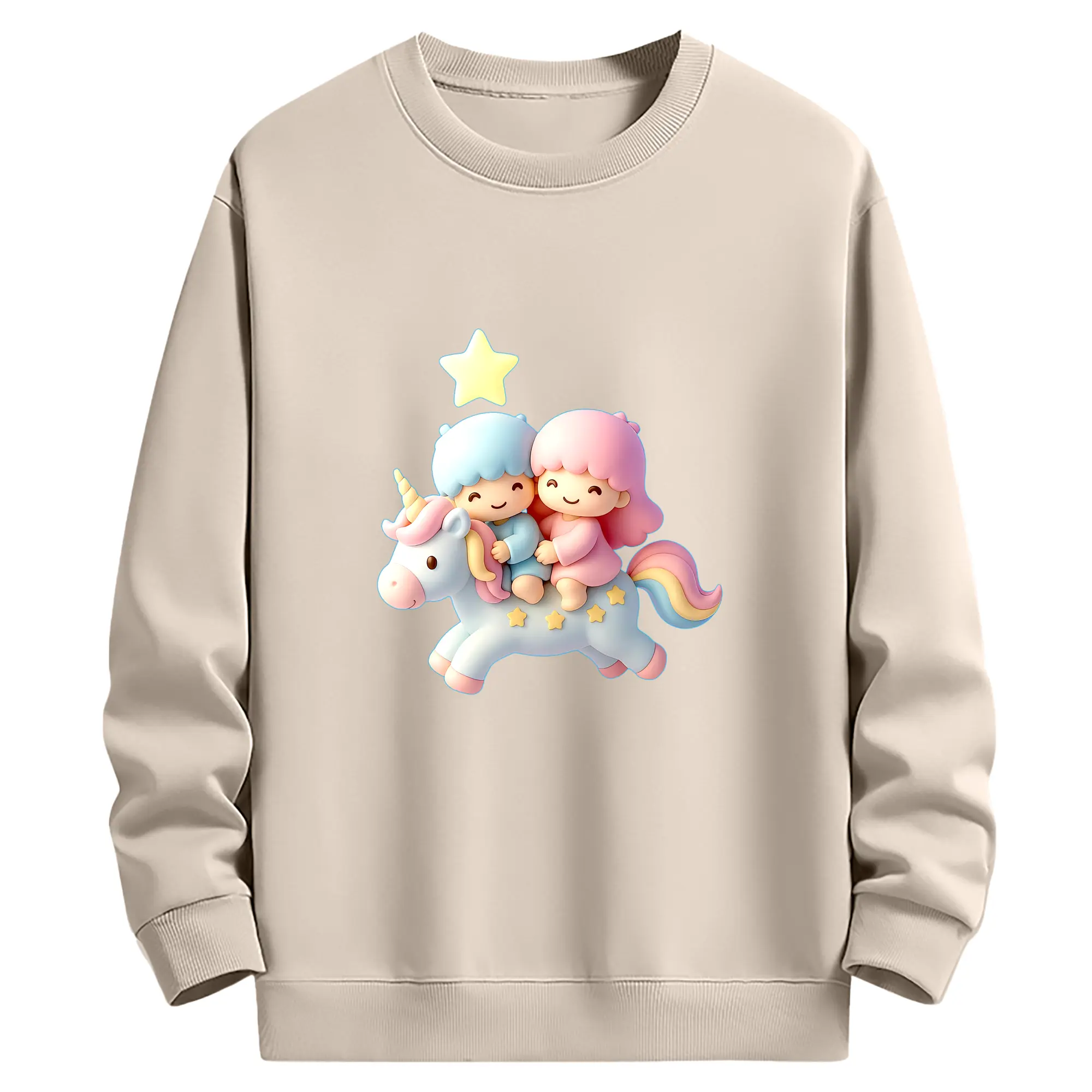 サンリオ グッズ,リトルツインスターズ - 薄手 クルーネック スウェット 裏毛260g · ポリエステル 春秋向け カジュアル 男女兼用 · トレーナー デイリー スポーツ 散歩に最適