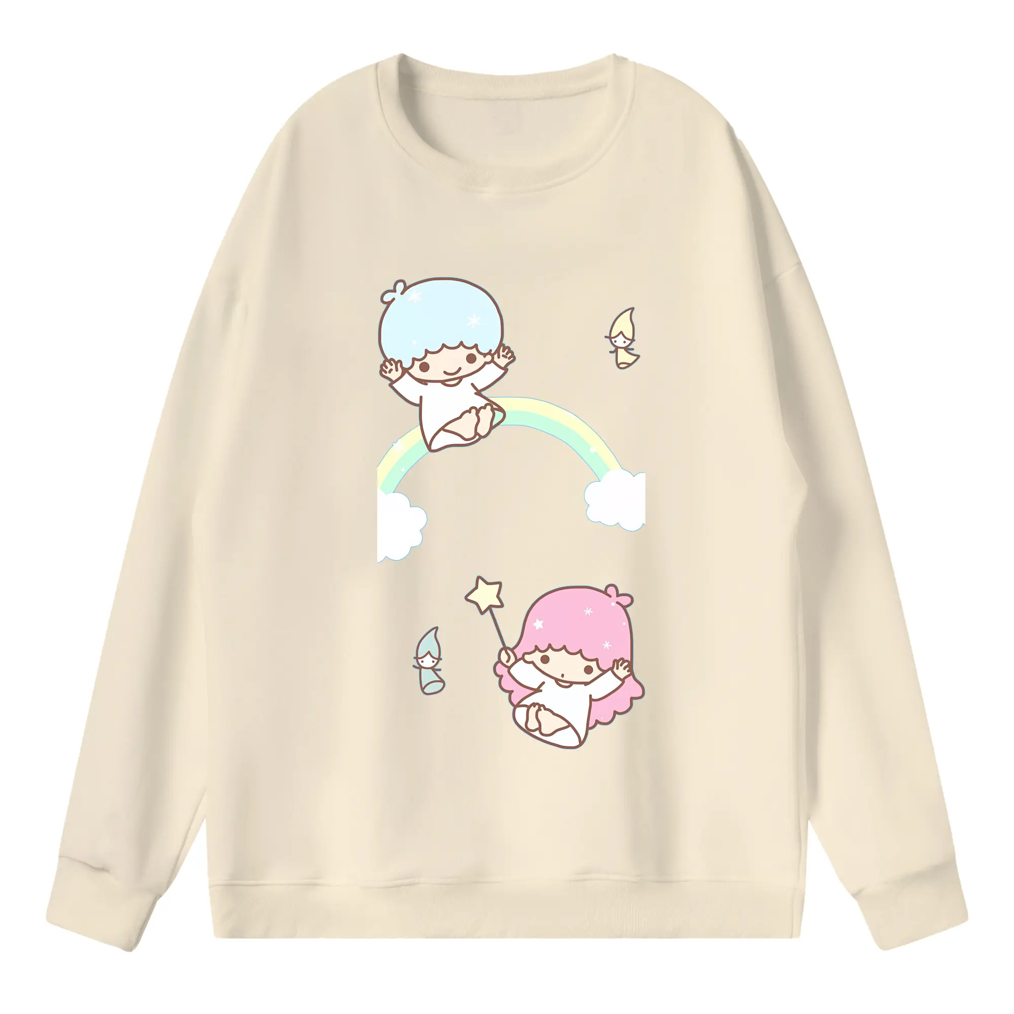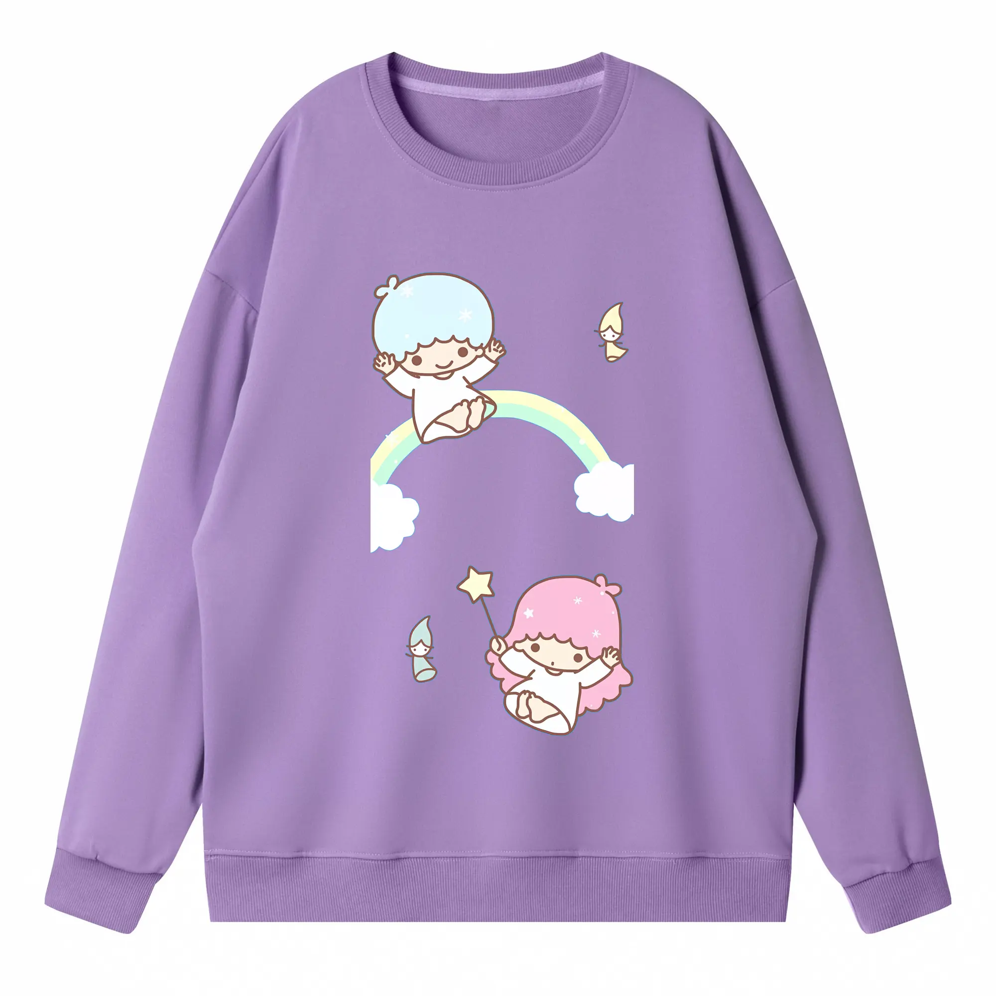 サンリオ グッズ,リトルツインスターズ - 薄手 クルーネック スウェット 裏毛260g · ポリエステル 春秋向け カジュアル 男女兼用 · トレーナー デイリー スポーツ 散歩に最適