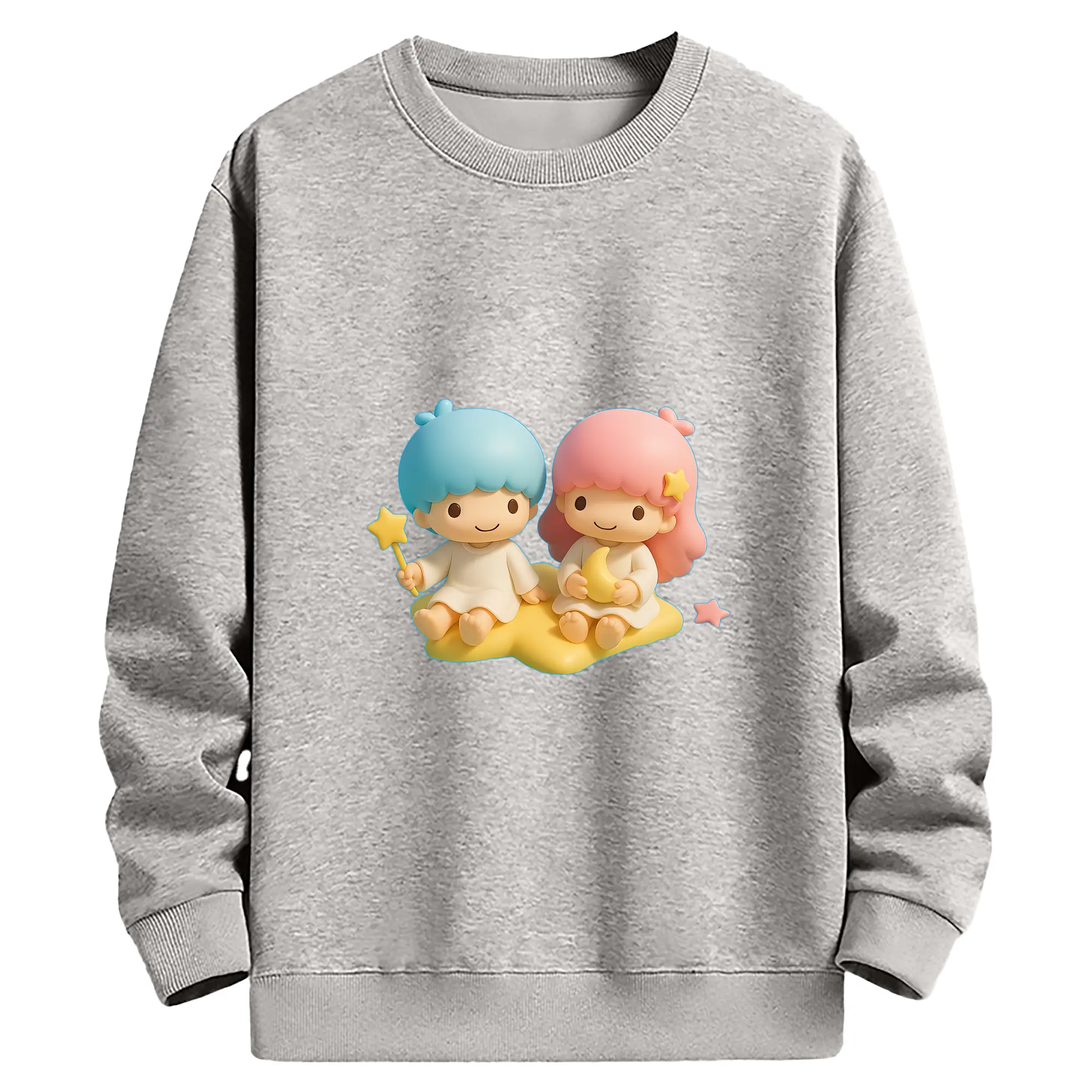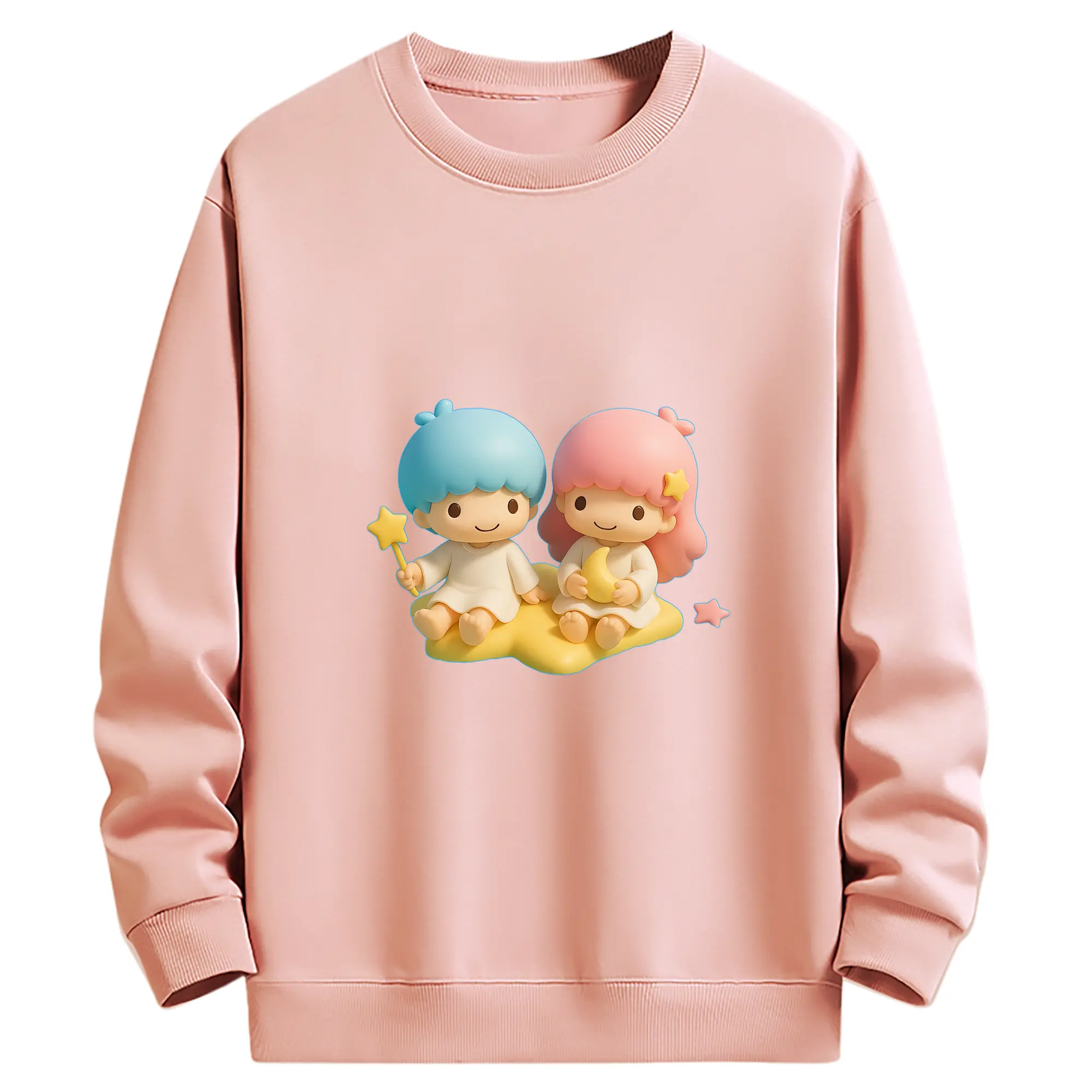 サンリオ グッズ,リトルツインスターズ - 薄手 クルーネック スウェット 裏毛260g · ポリエステル 春秋向け カジュアル 男女兼用 · トレーナー デイリー スポーツ 散歩に最適