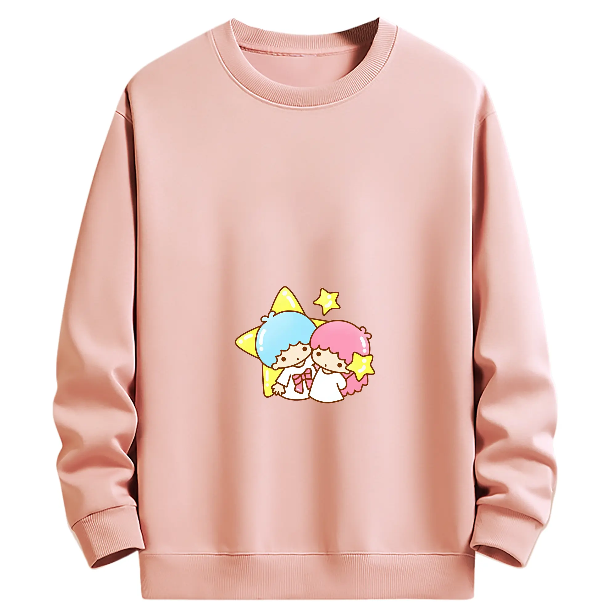 サンリオ グッズ,リトルツインスターズ - 薄手 クルーネック スウェット 裏毛260g · ポリエステル 春秋向け カジュアル 男女兼用 · トレーナー デイリー スポーツ 散歩に最適
