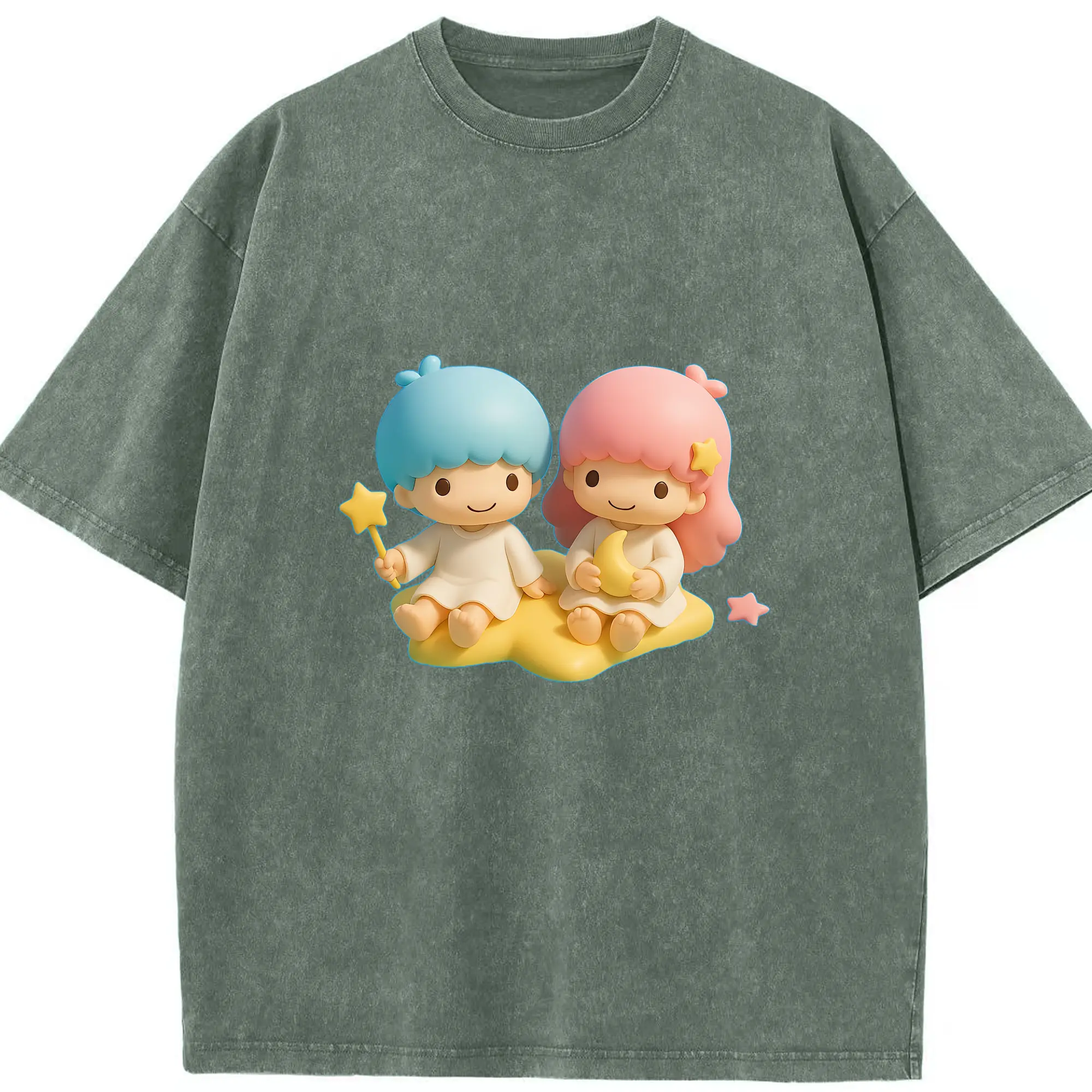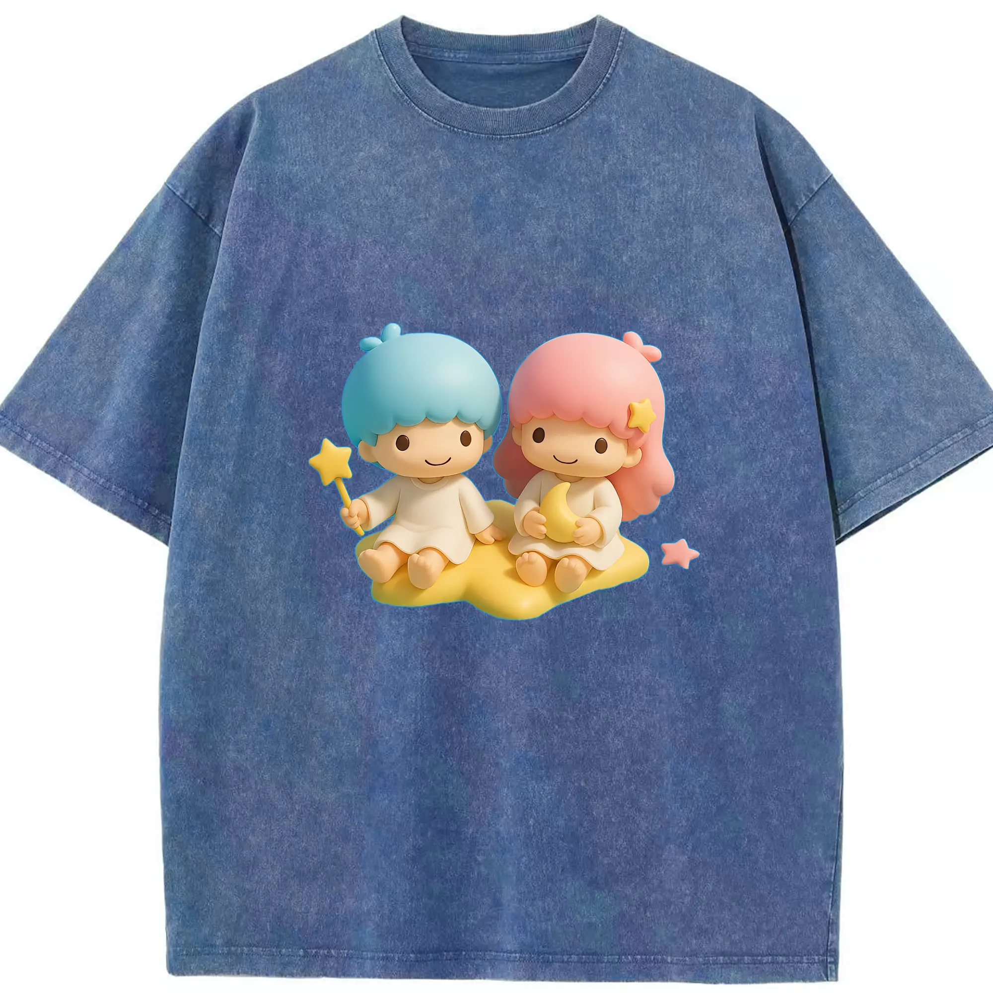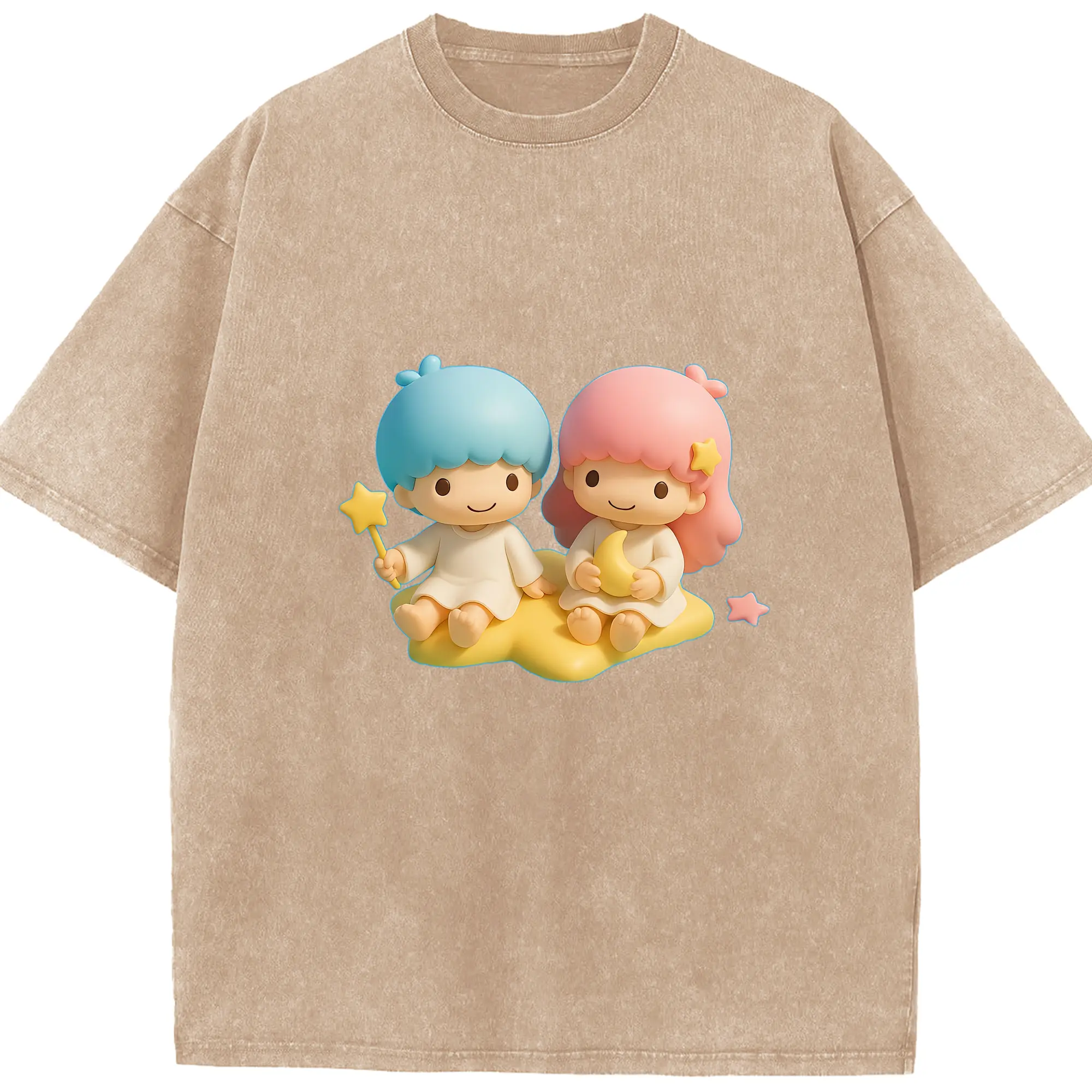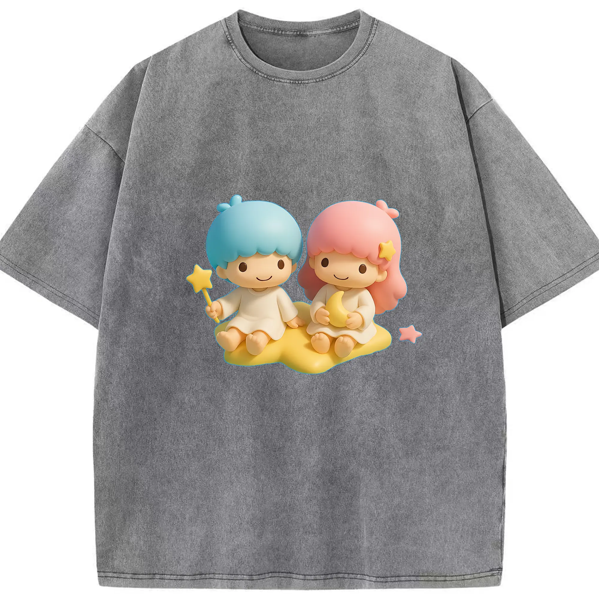 サンリオ グッズ,リトルツインスターズ - 綿100% ヴィンテージ風 半袖Tシャツ ・ 背面プリント ・ 柔らか肌触り ・ 通気性 快適 ・ スポーツ カジュアル 外出用