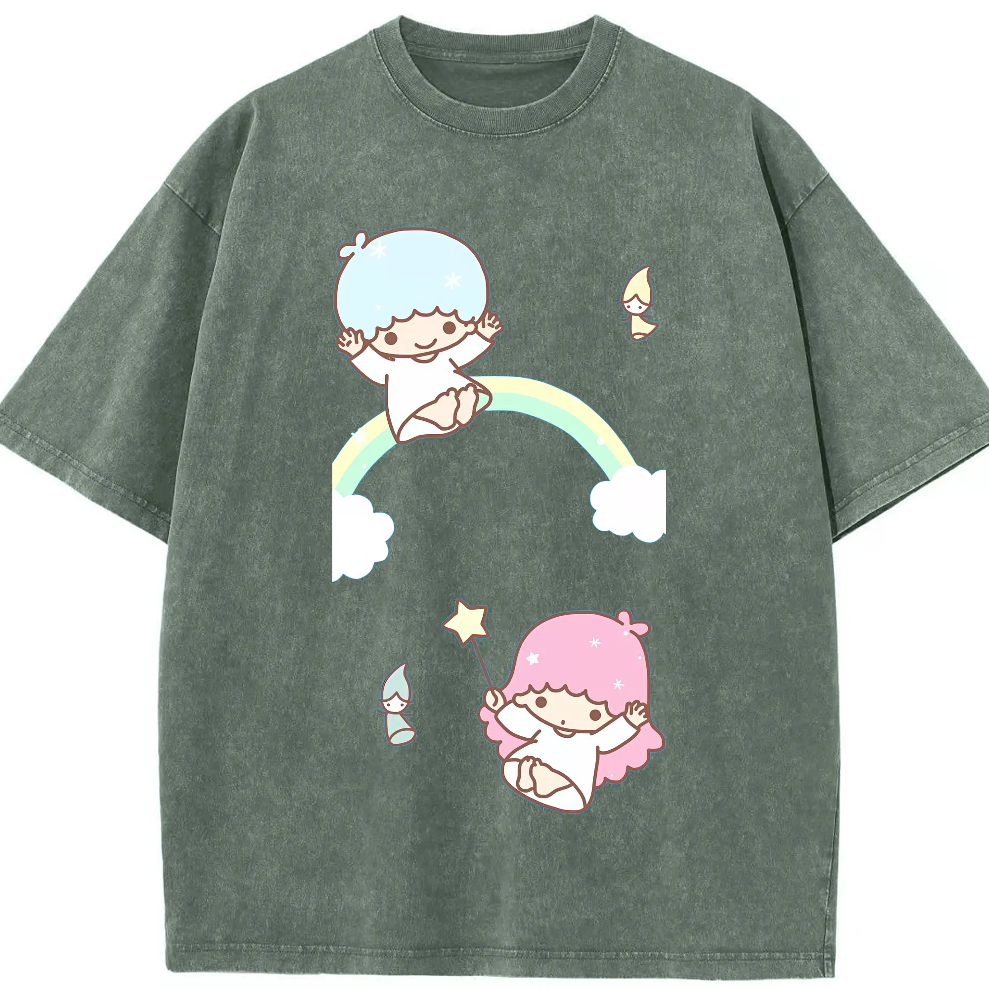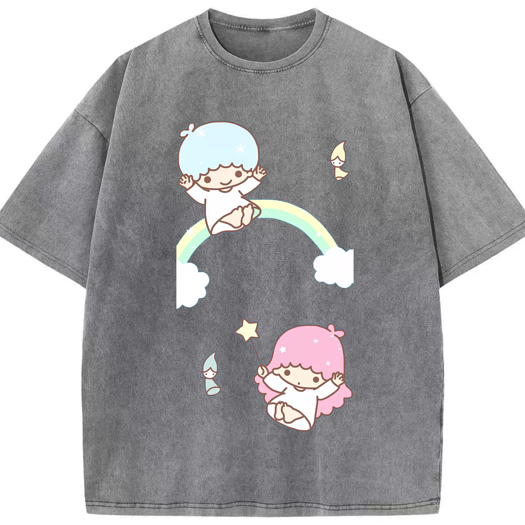 サンリオ グッズ,リトルツインスターズ - 綿100% ヴィンテージ風 半袖Tシャツ ・ 背面プリント ・ 柔らか肌触り ・ 通気性 快適 ・ スポーツ カジュアル 外出用