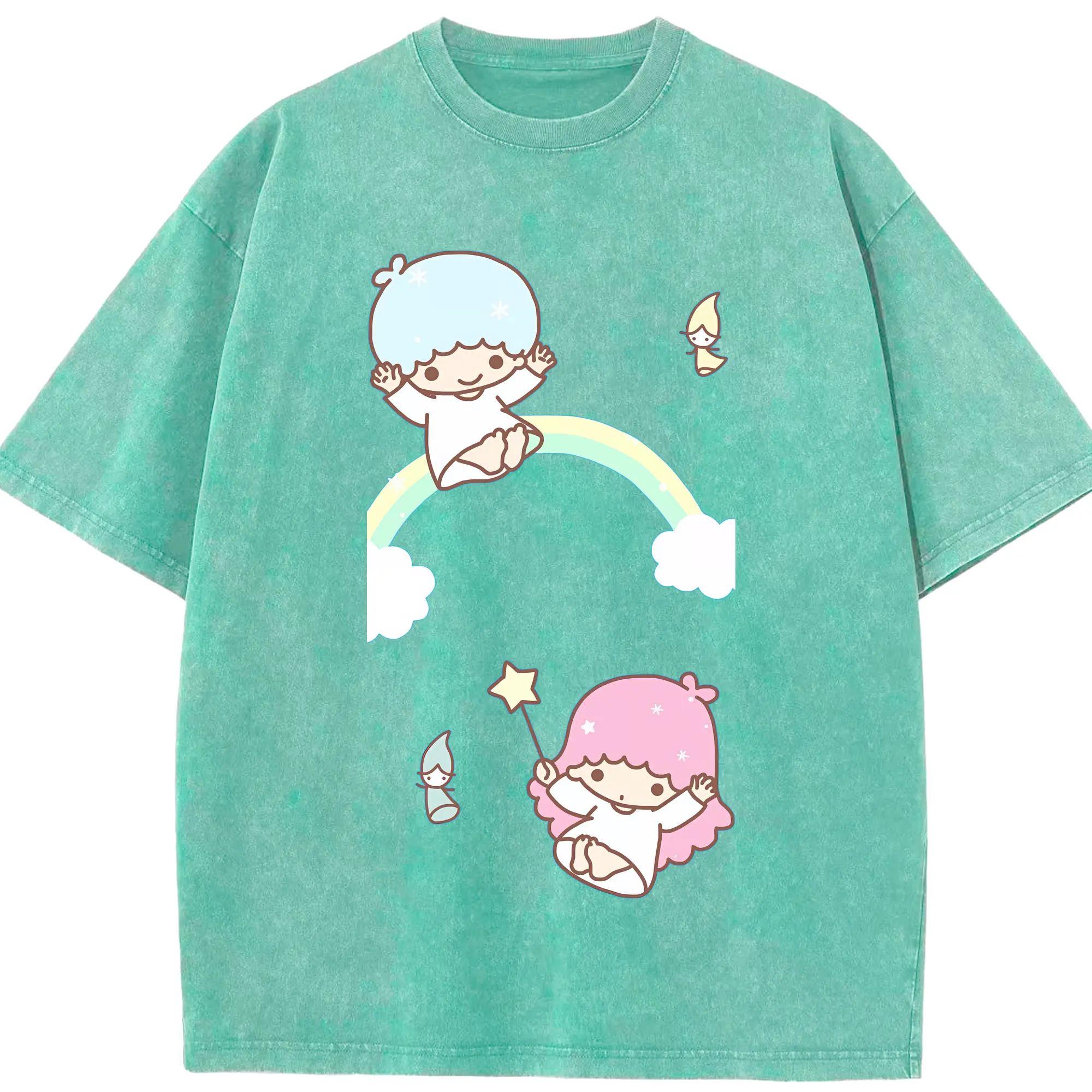 サンリオ グッズ,リトルツインスターズ - 綿100% 半袖Tシャツ ・ フロントプリント ・ 快適 通気性 ・ 日常使い 散歩 スポーツ用