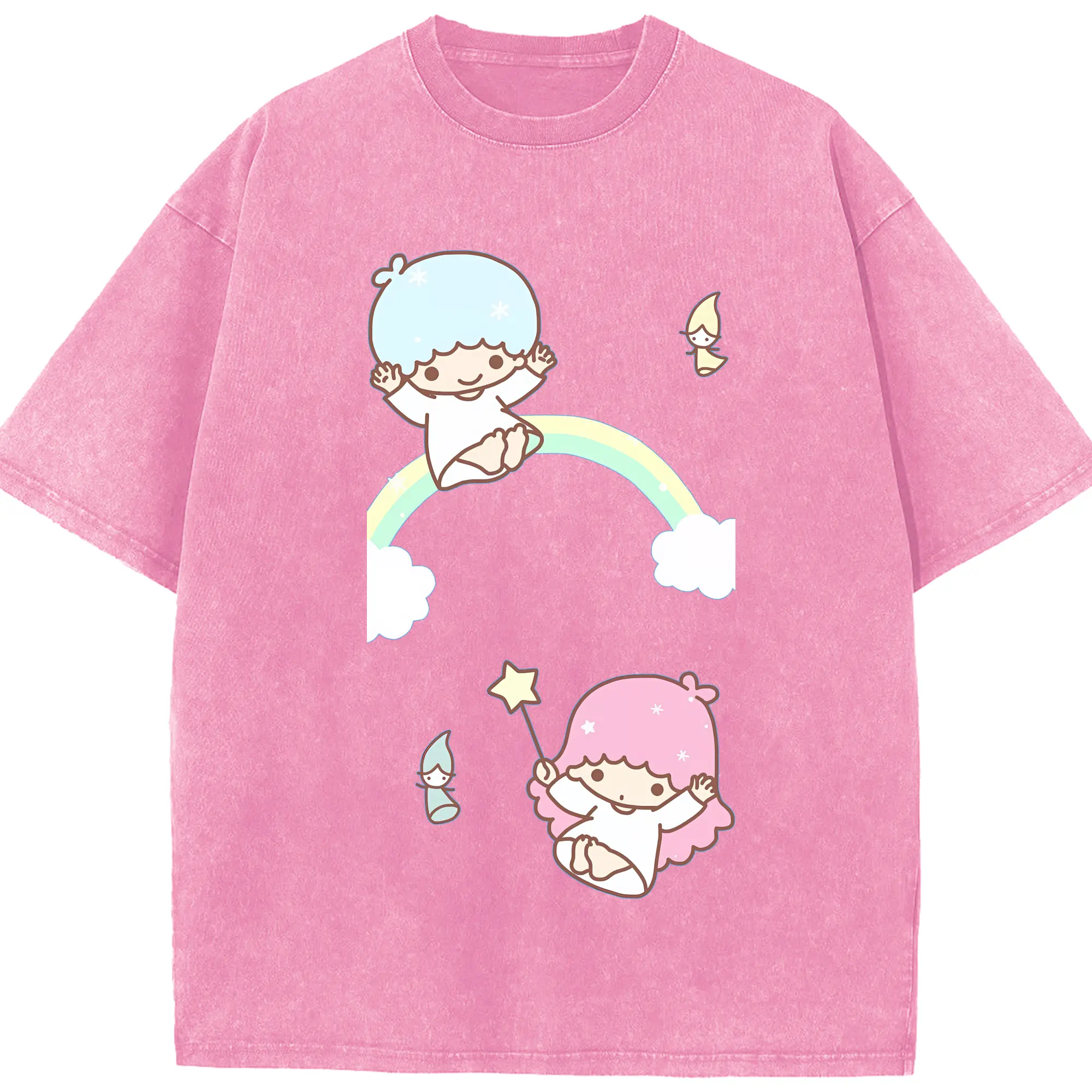 サンリオ グッズ,リトルツインスターズ - 綿100% 半袖Tシャツ ・ バックプリント ・ 快適 通気性 ・ 日常使い 散歩 スポーツ用