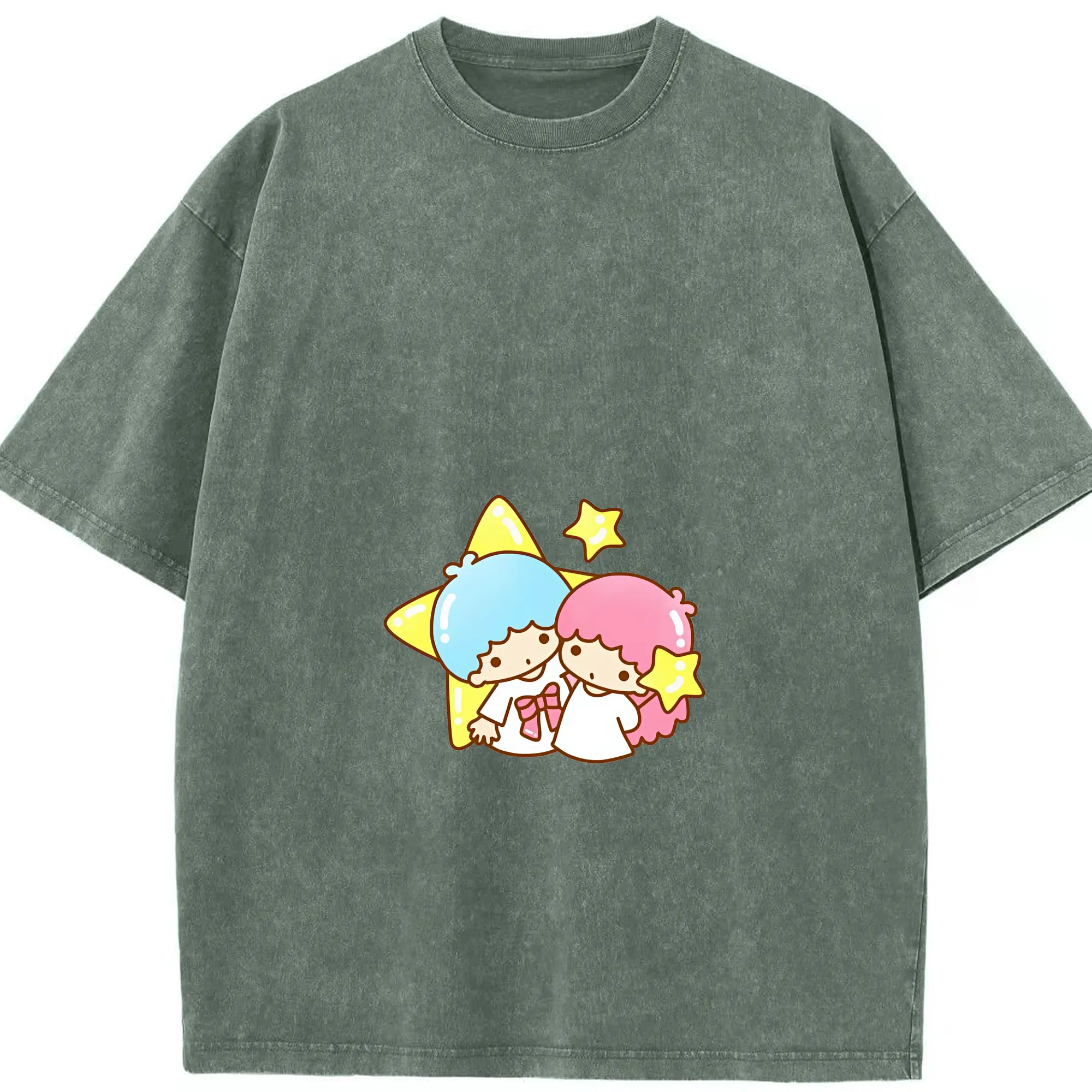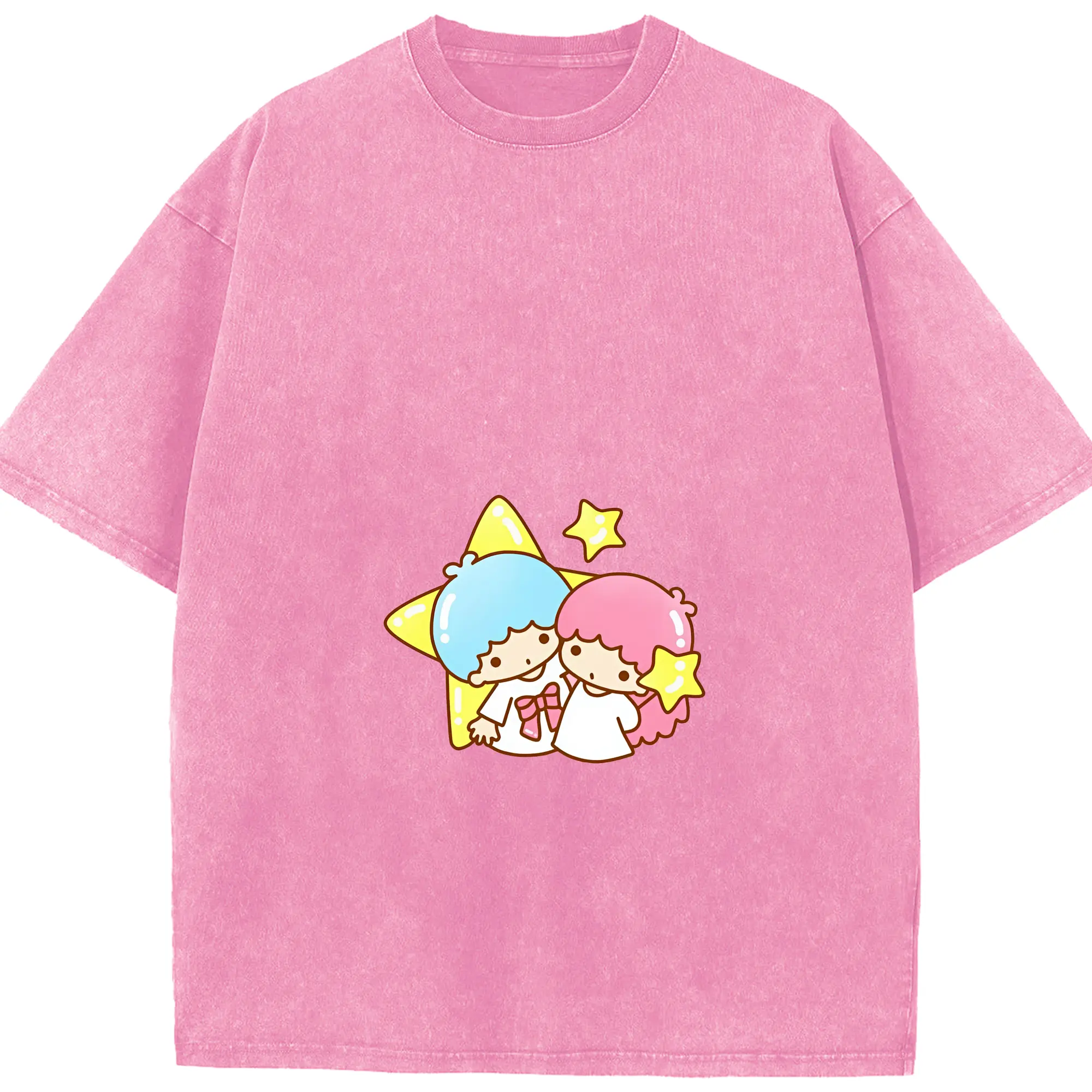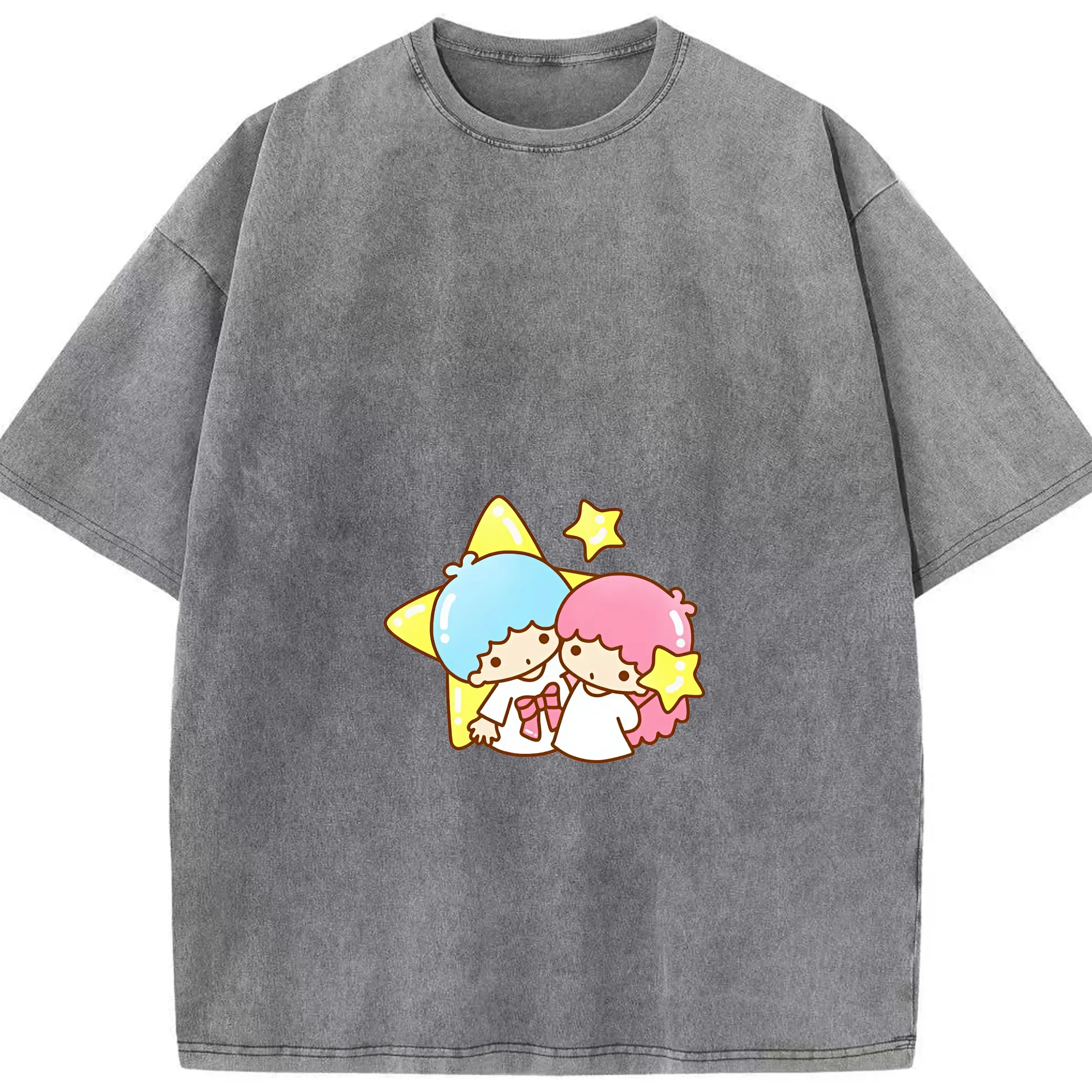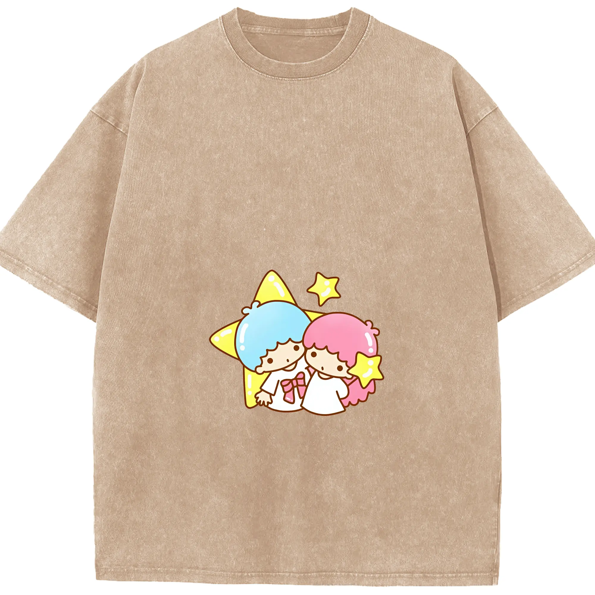サンリオ グッズ,リトルツインスターズ - 綿100% ヴィンテージ風 半袖Tシャツ ・ 背面プリント ・ 柔らか肌触り ・ 通気性 快適 ・ スポーツ カジュアル 外出用