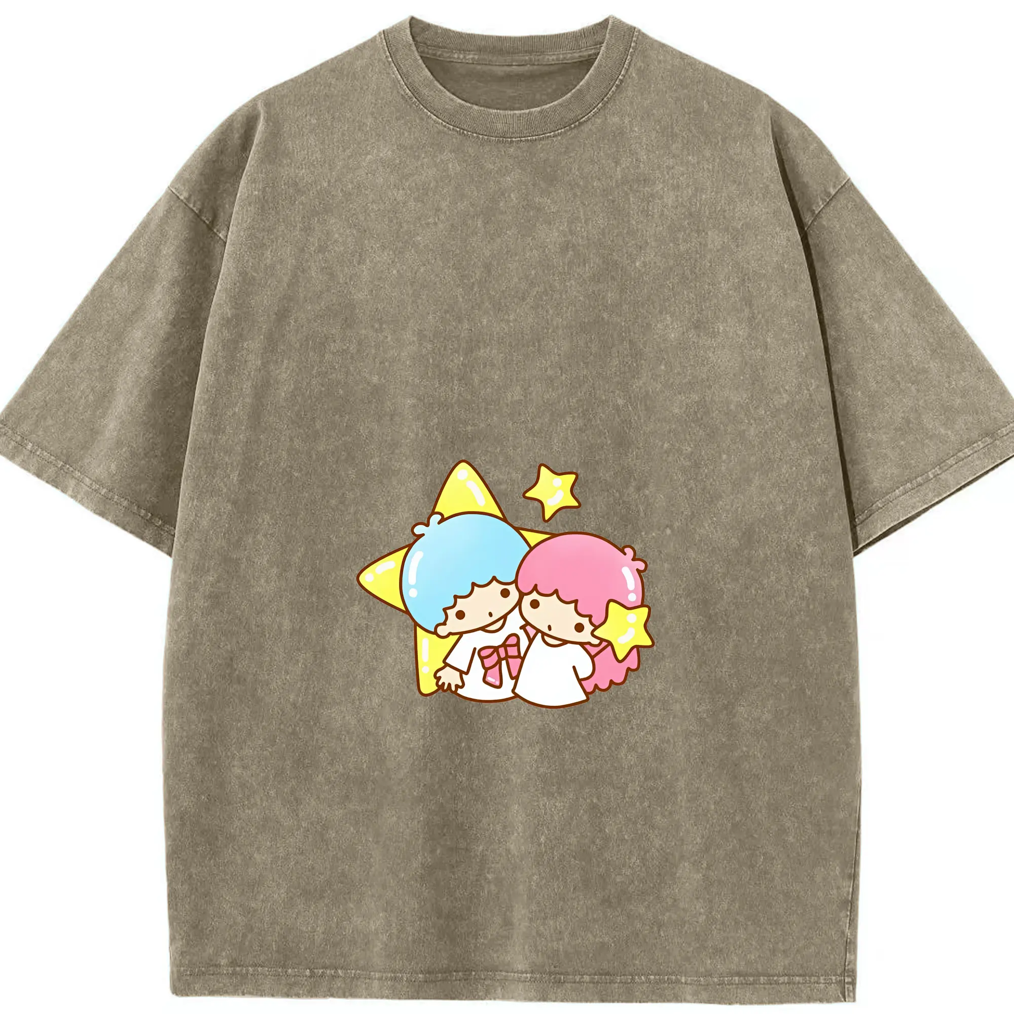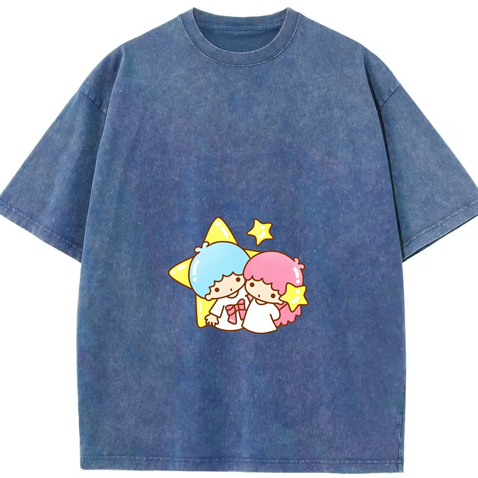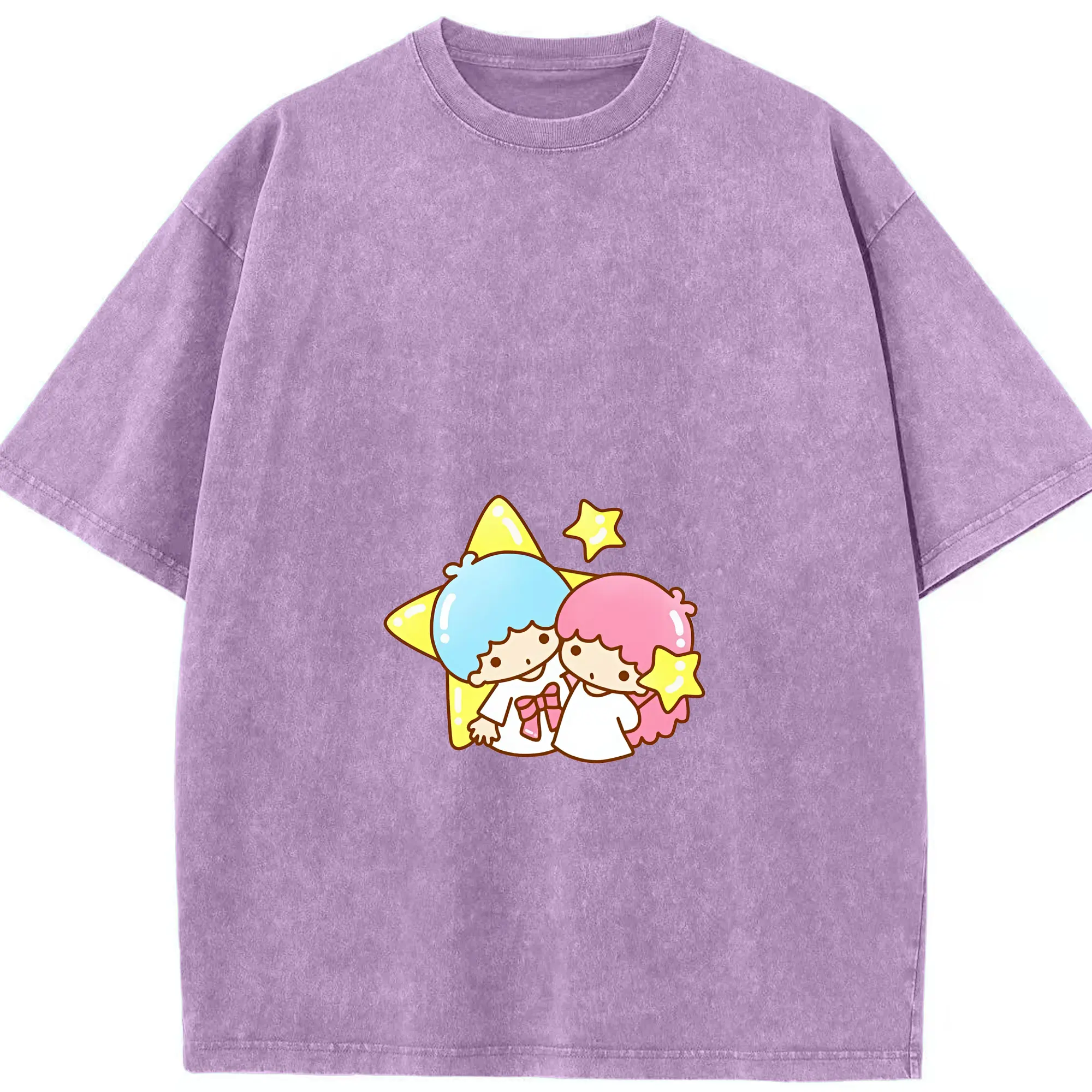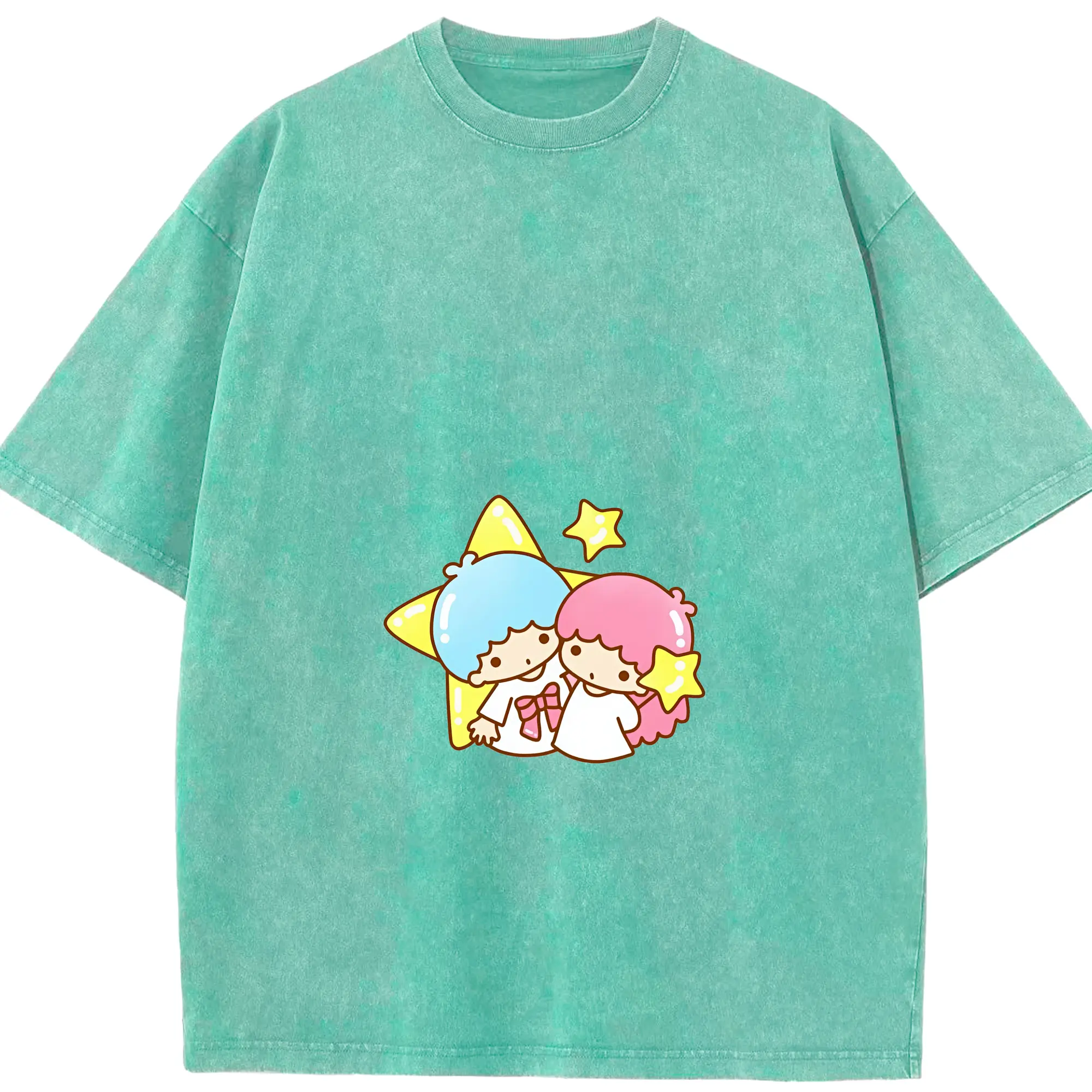 サンリオ グッズ,リトルツインスターズ - 綿100% ヴィンテージ風 半袖Tシャツ ・ 背面プリント ・ 柔らか肌触り ・ 通気性 快適 ・ スポーツ カジュアル 外出用