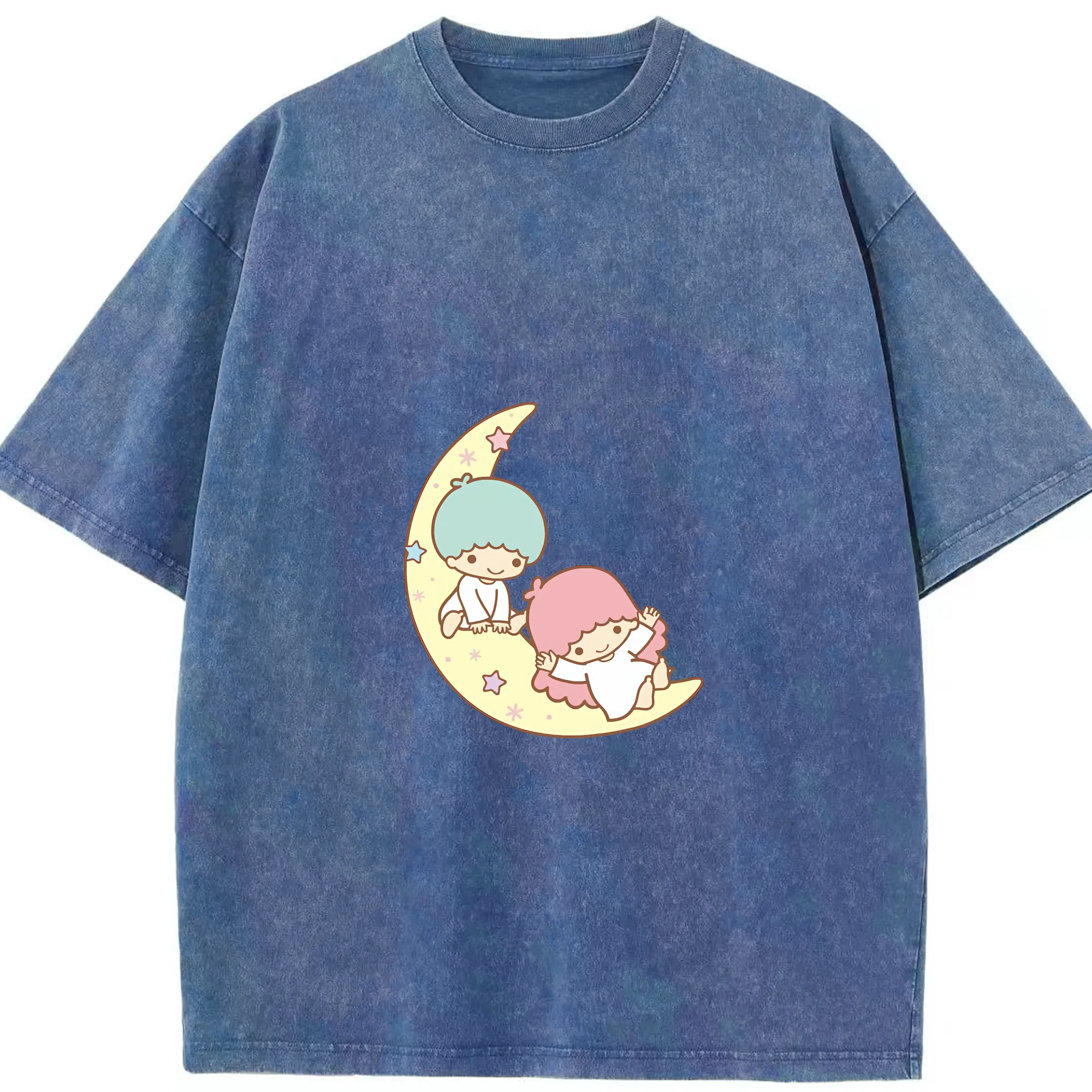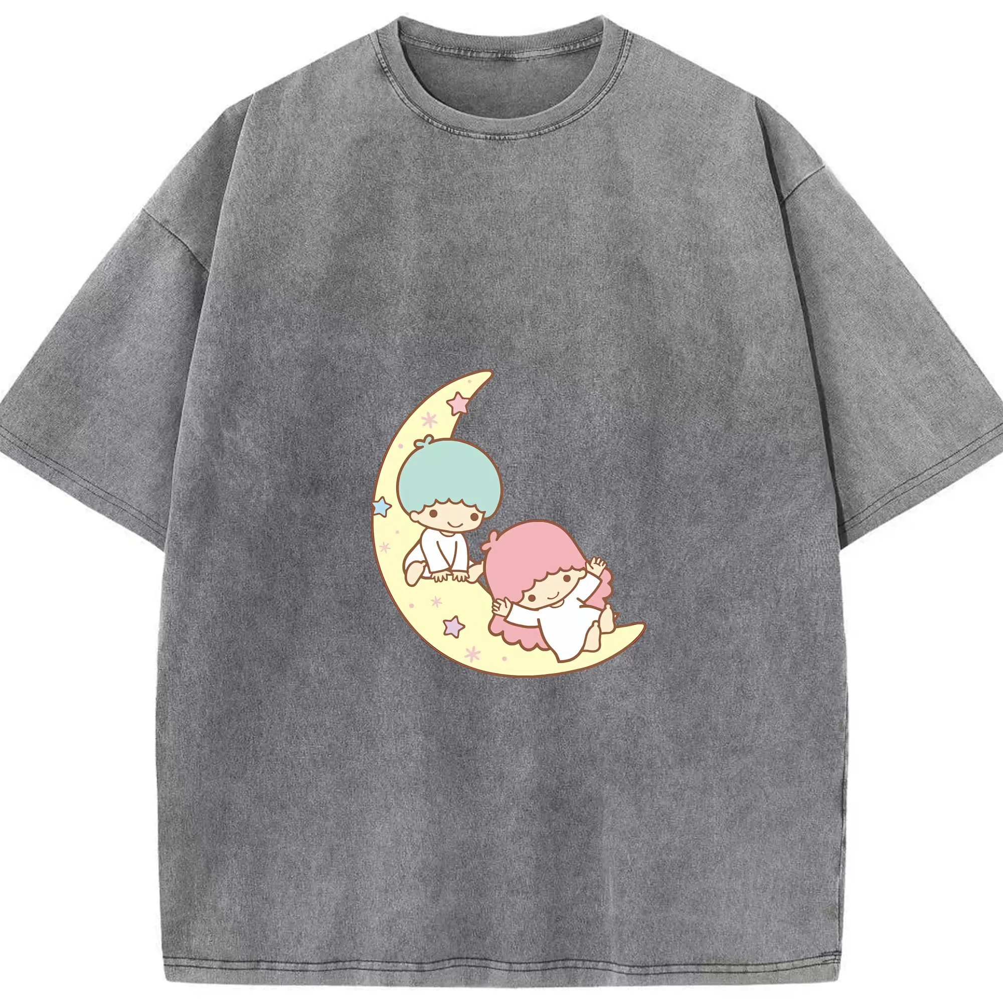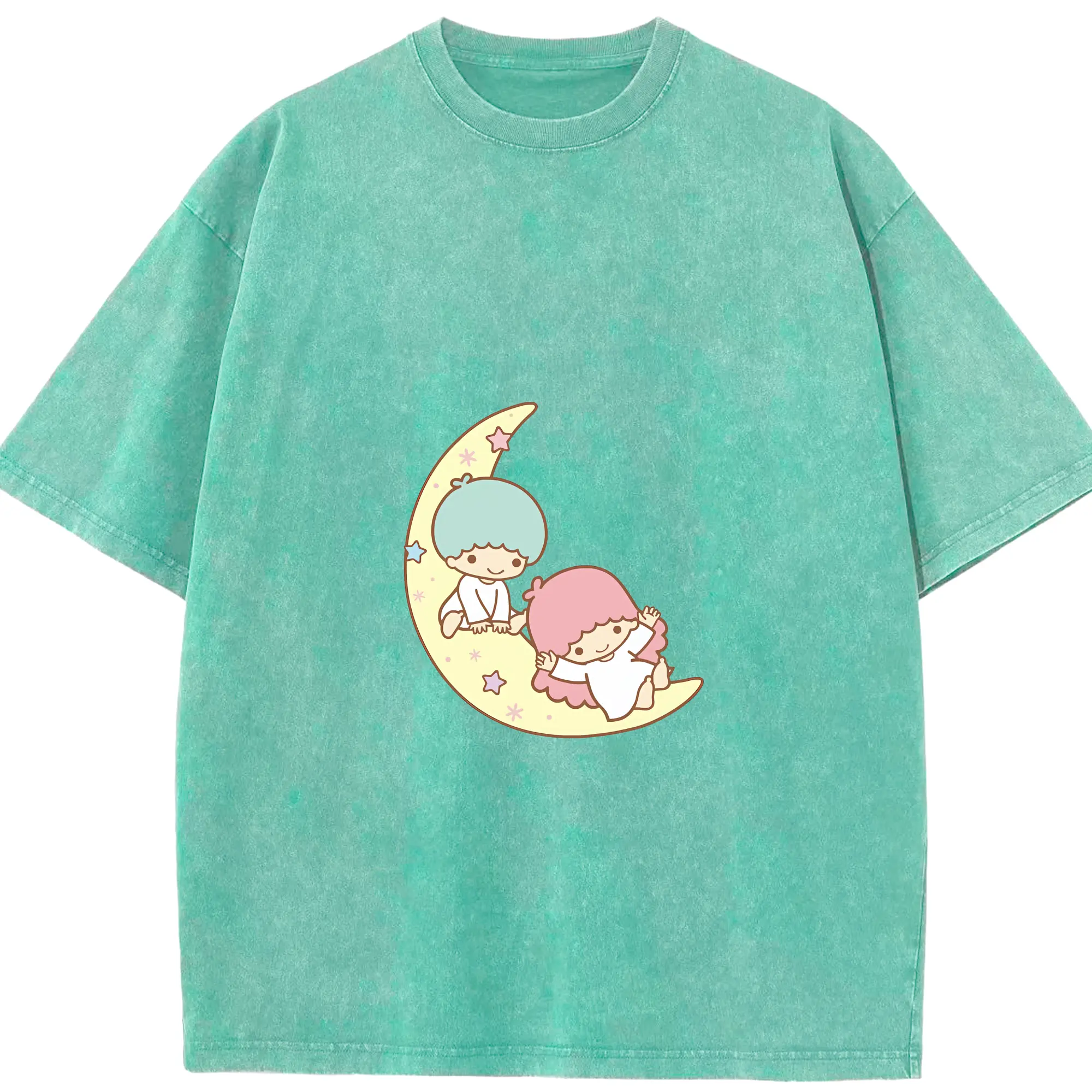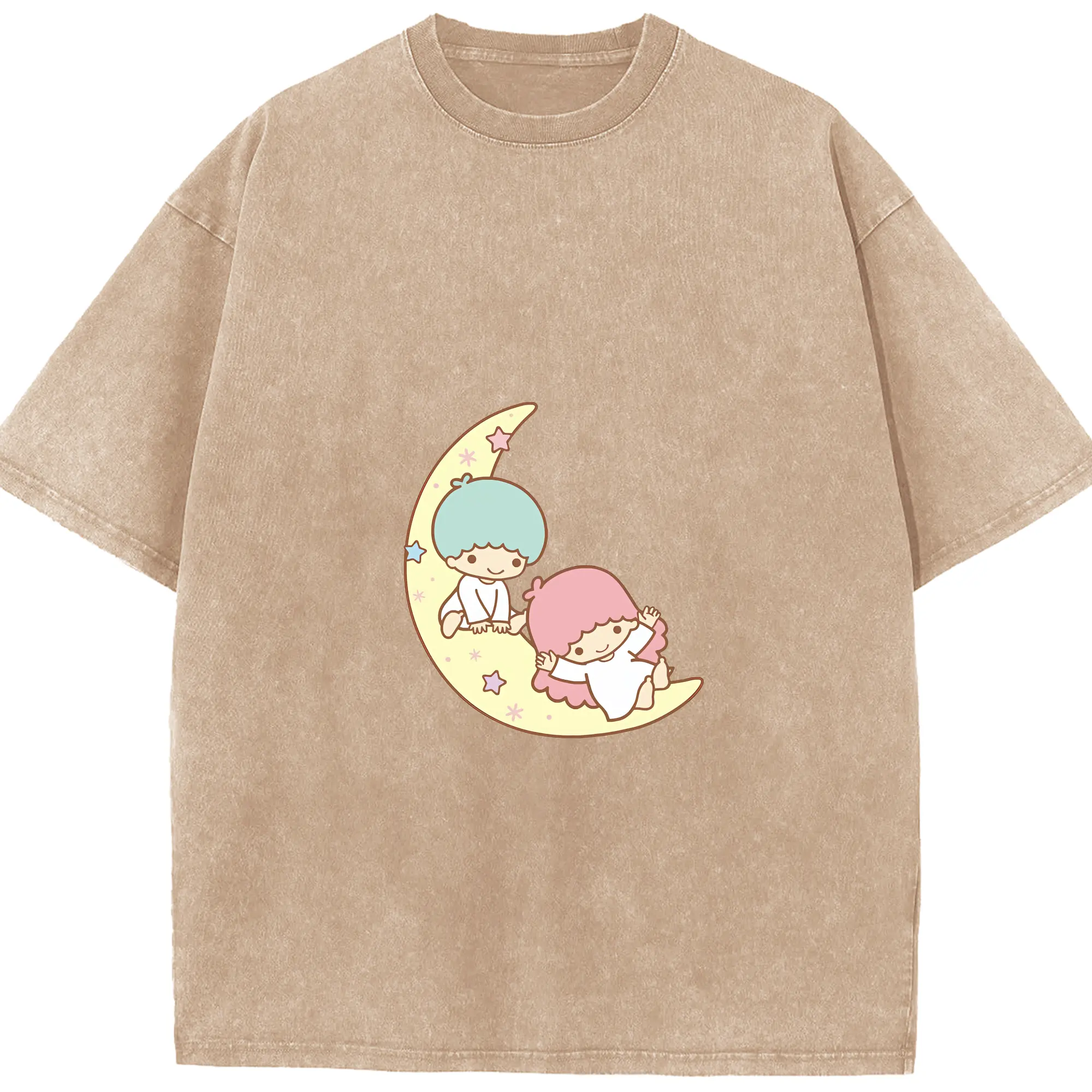 サンリオ グッズ,リトルツインスターズ - 綿100% ヴィンテージ風 半袖Tシャツ ・ 背面プリント ・ 柔らか肌触り ・ 通気性 快適 ・ スポーツ カジュアル 外出用