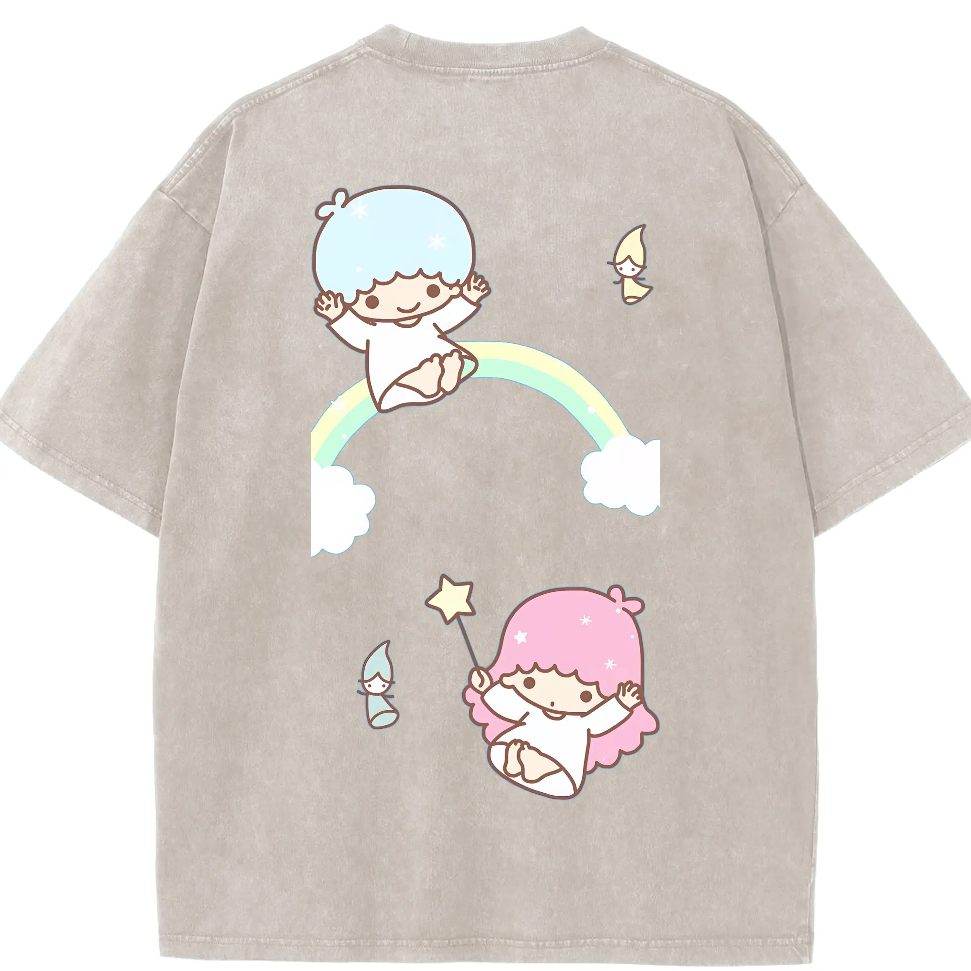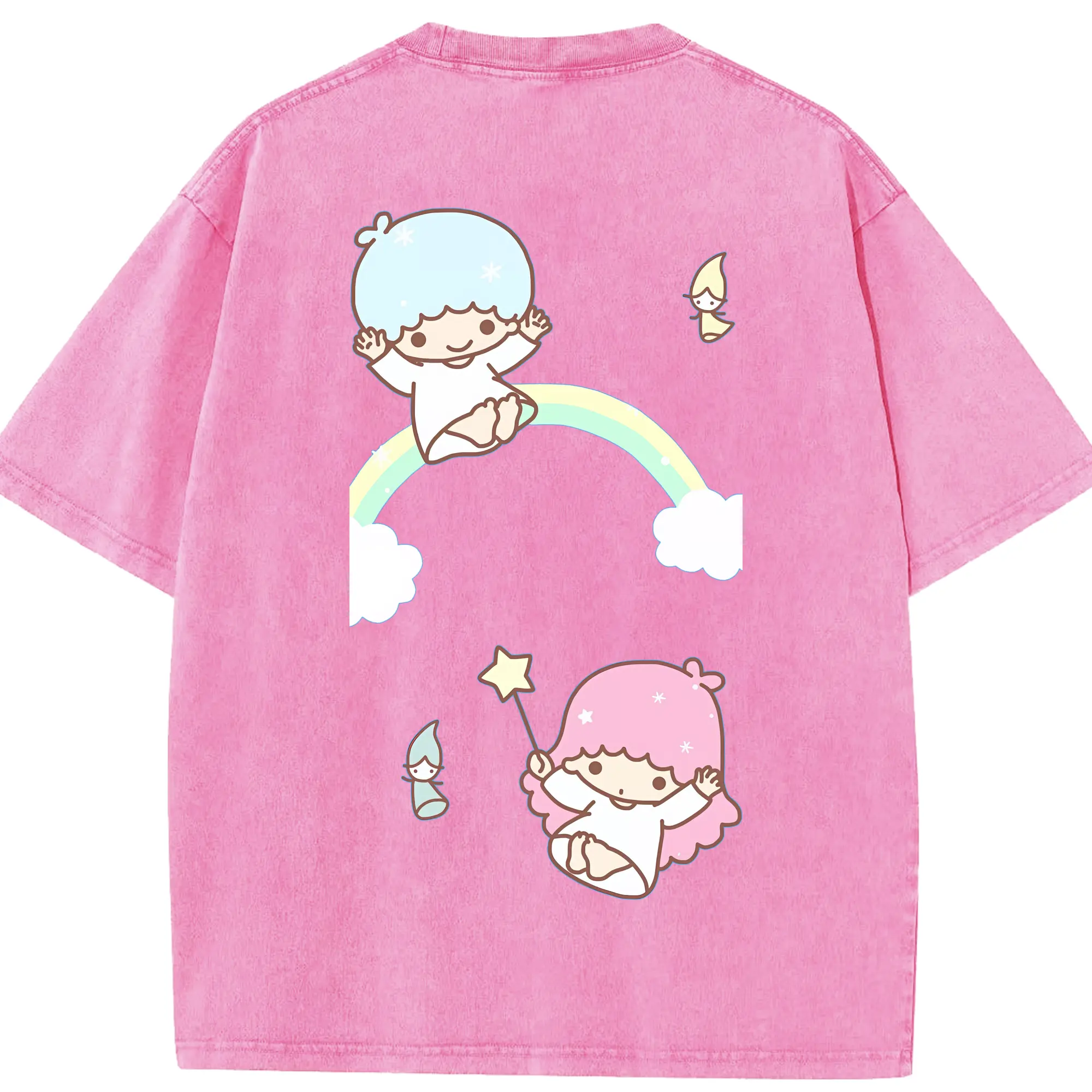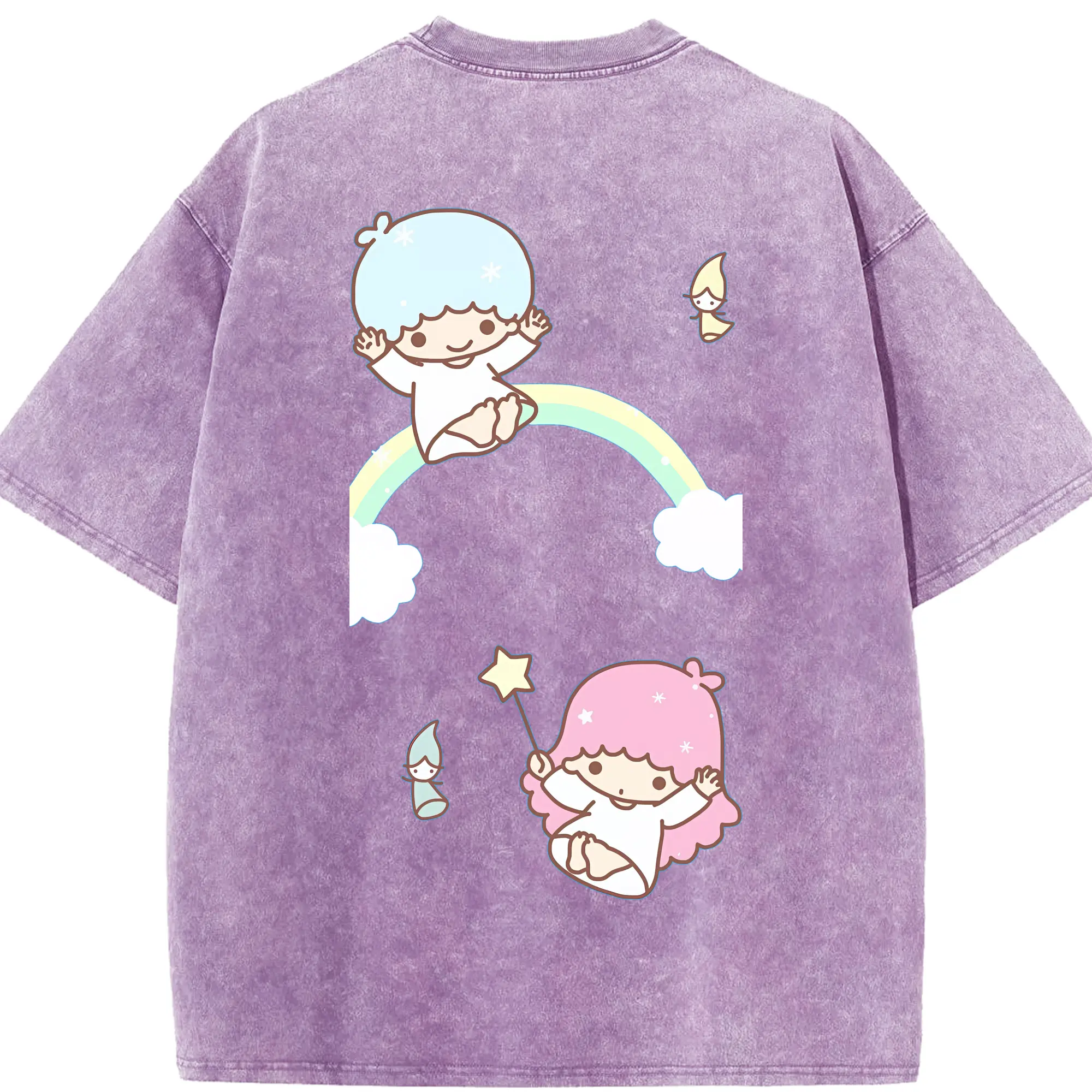 サンリオ グッズ,リトルツインスターズ - 綿100% 半袖Tシャツ ・ バックプリント ・ 快適 通気性 ・ 日常使い 散歩 スポーツ用