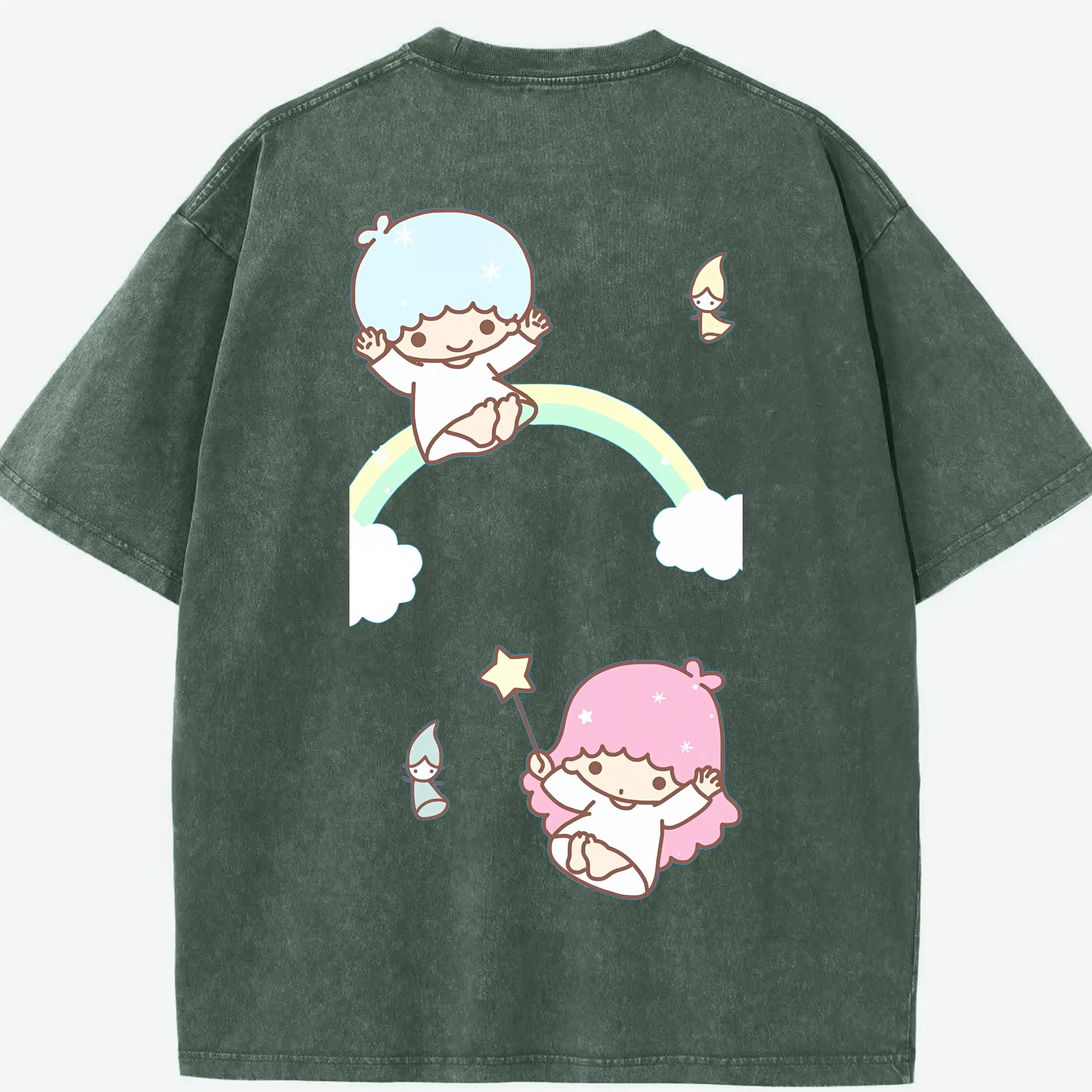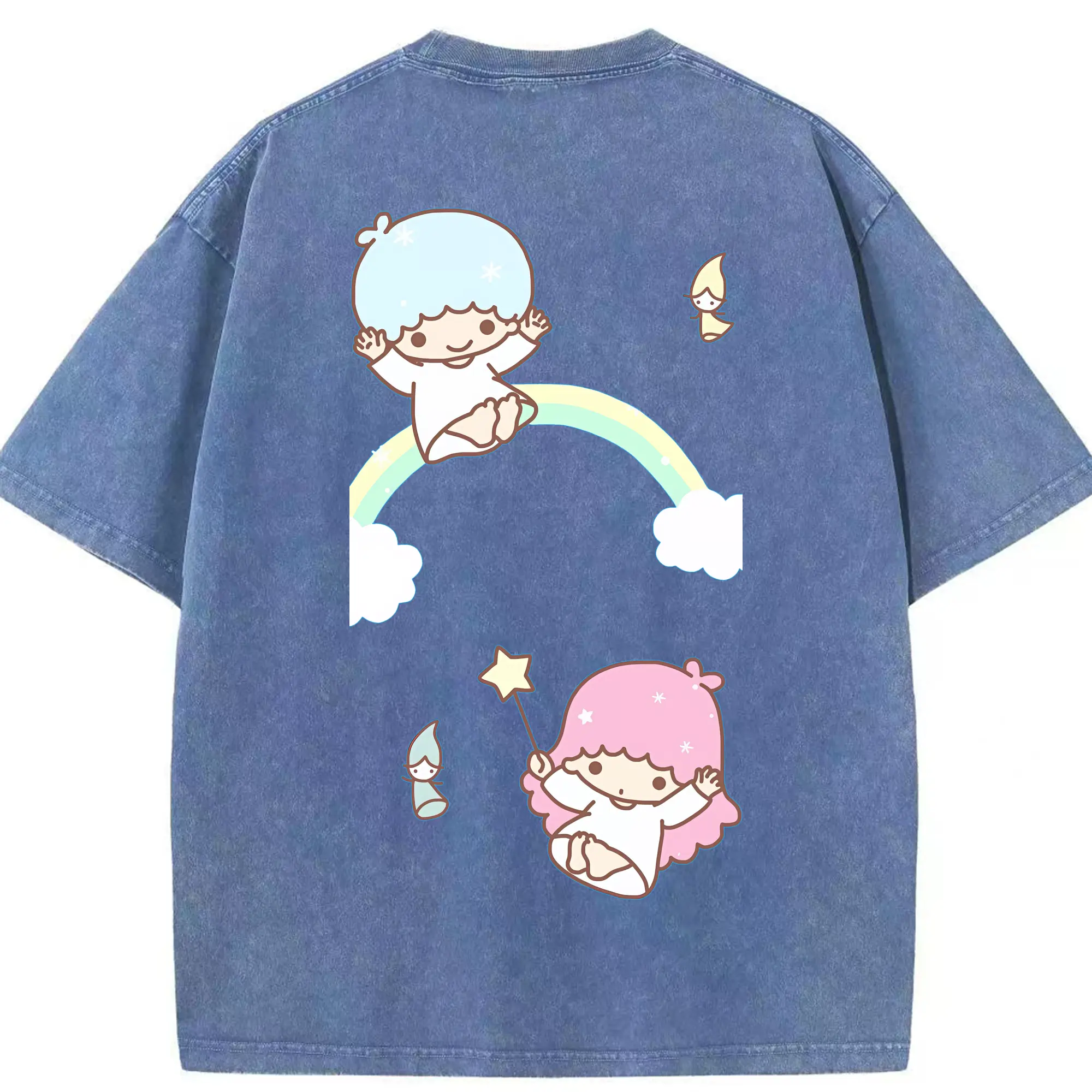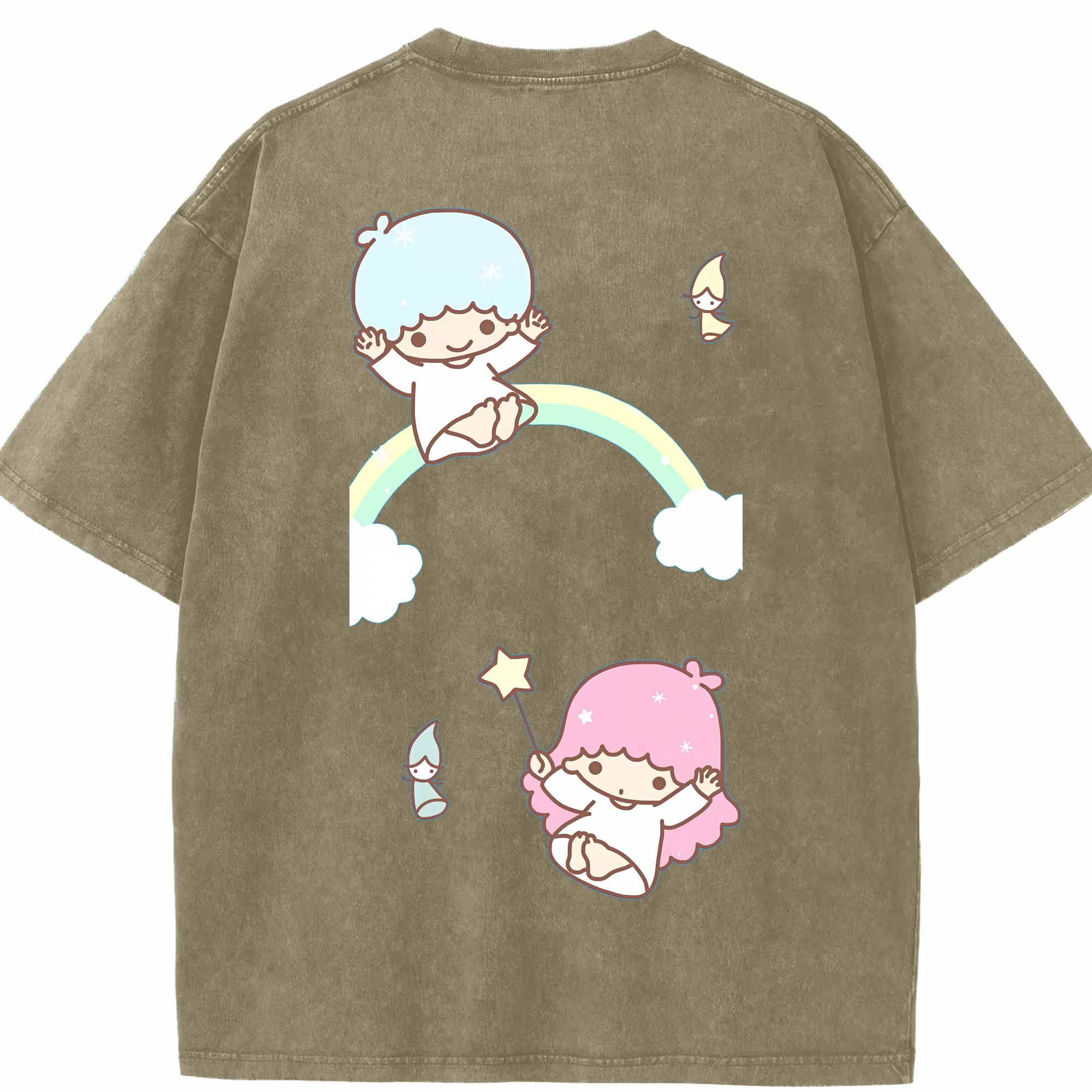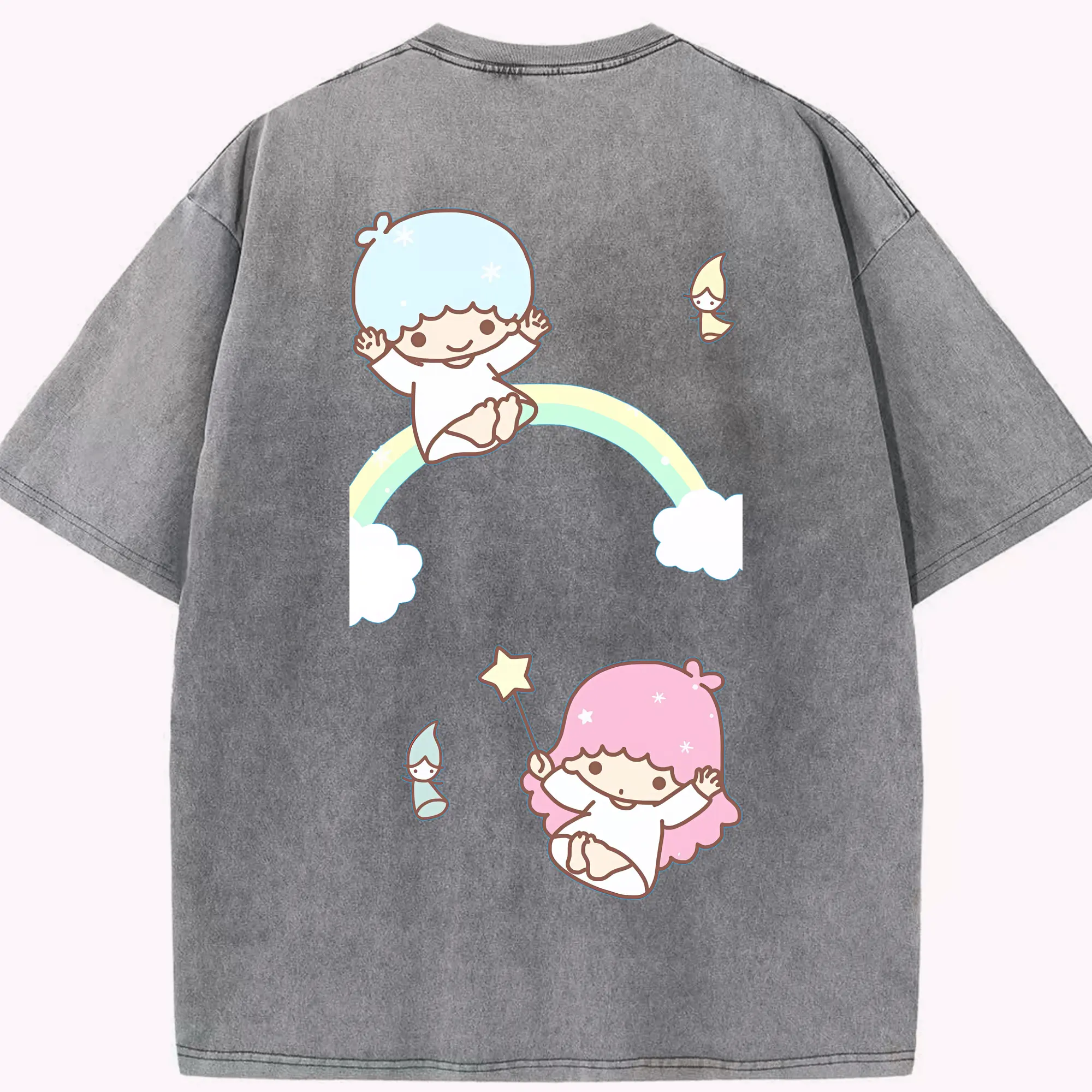 サンリオ グッズ,リトルツインスターズ - 綿100% 半袖Tシャツ ・ バックプリント ・ 快適 通気性 ・ 日常使い 散歩 スポーツ用