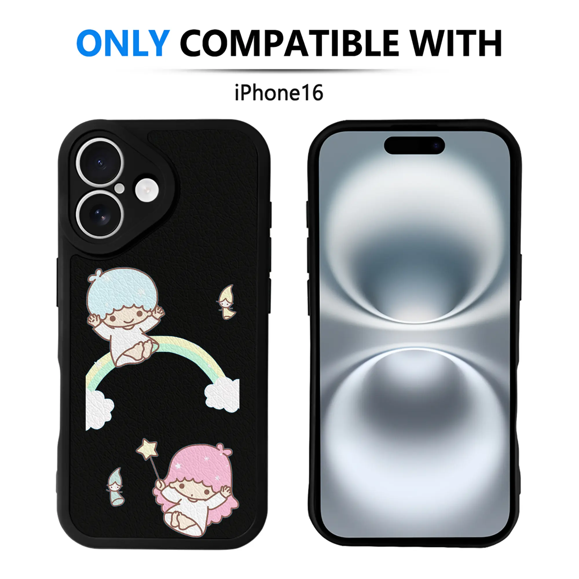 サンリオ グッズ,リトルツインスターズ - IPhone 16シリーズ対応 ・ シリコンスマホケース ・ レザー調 ・ 高精度フィット ・ 耐衝撃 ・ ワイヤレス充電対応 ・ 精密カット