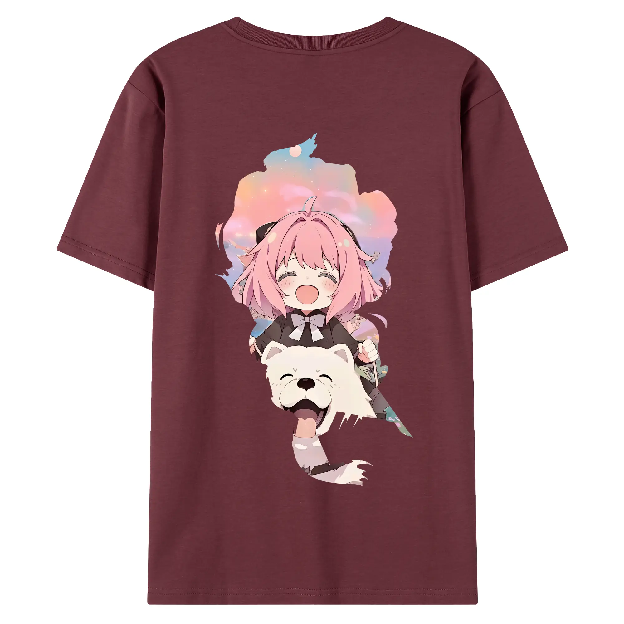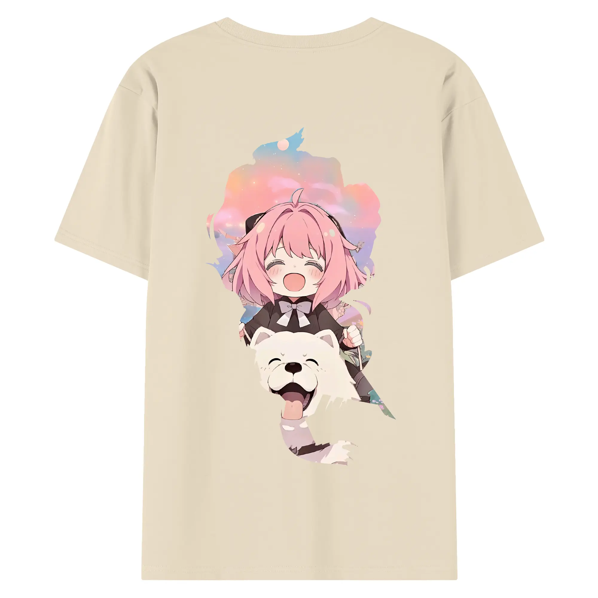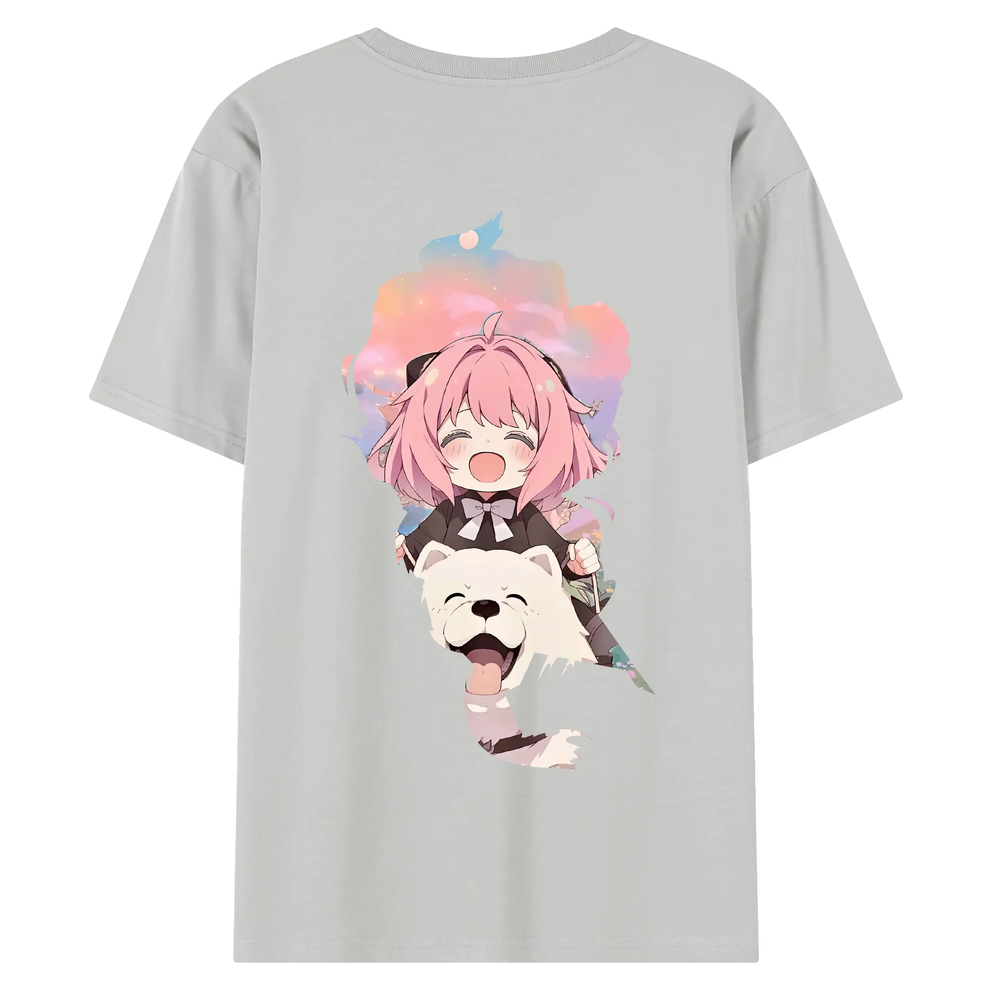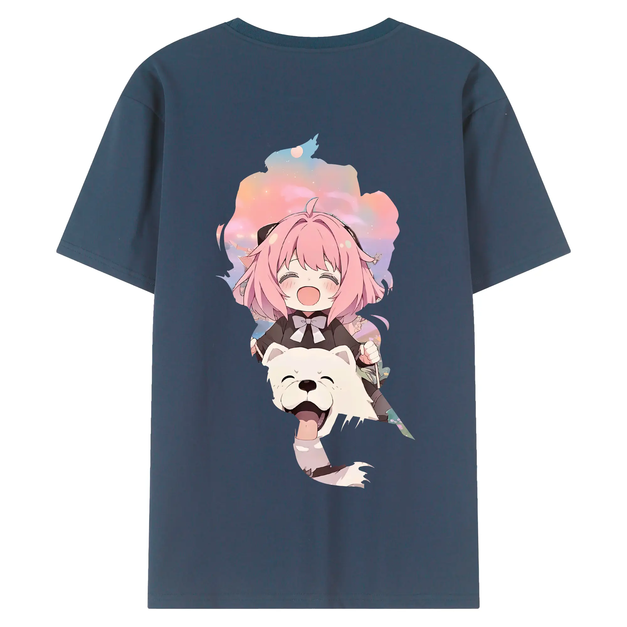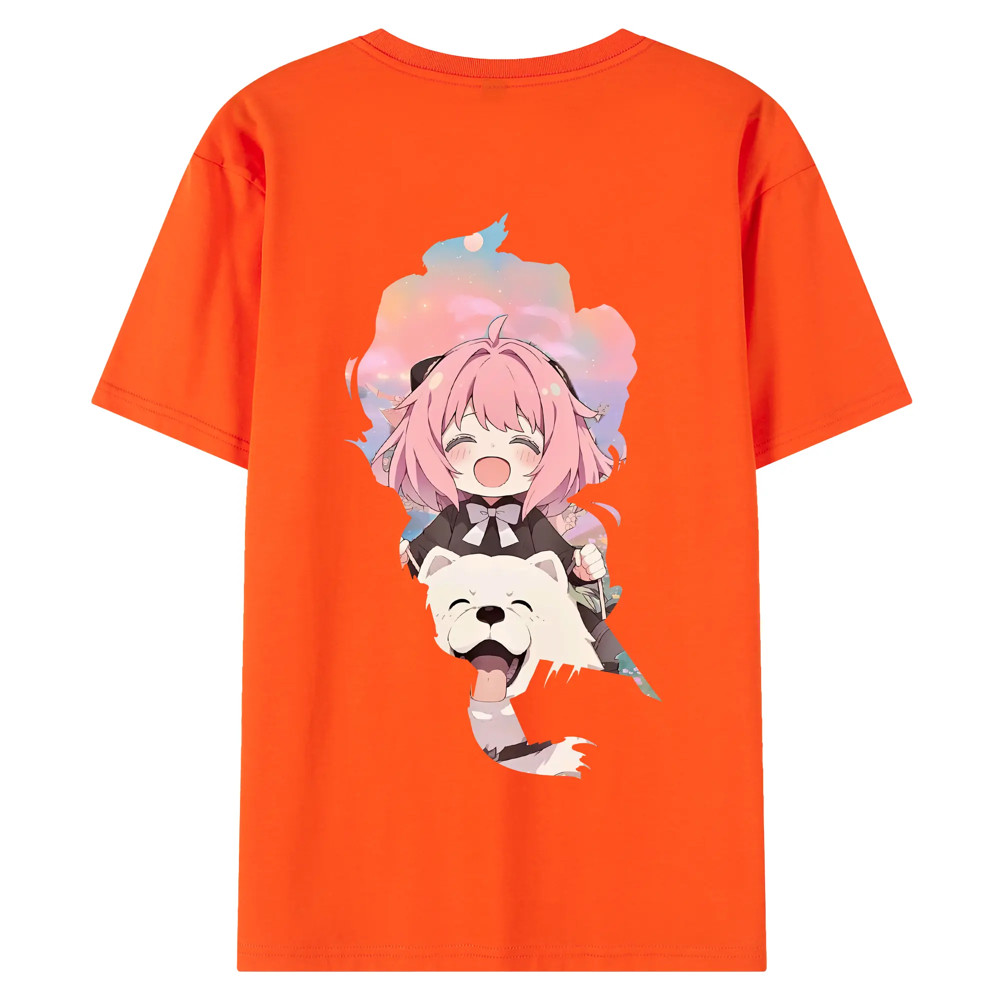 スパイファミリー グッズ,アーニャ・フォージャー(Anya Forger) - 綿100% ヴィンテージ風 半袖Tシャツ ・ 背面プリント ・ 柔らか肌触り ・ 通気性 快適 ・ スポーツ カジュアル 外出用
