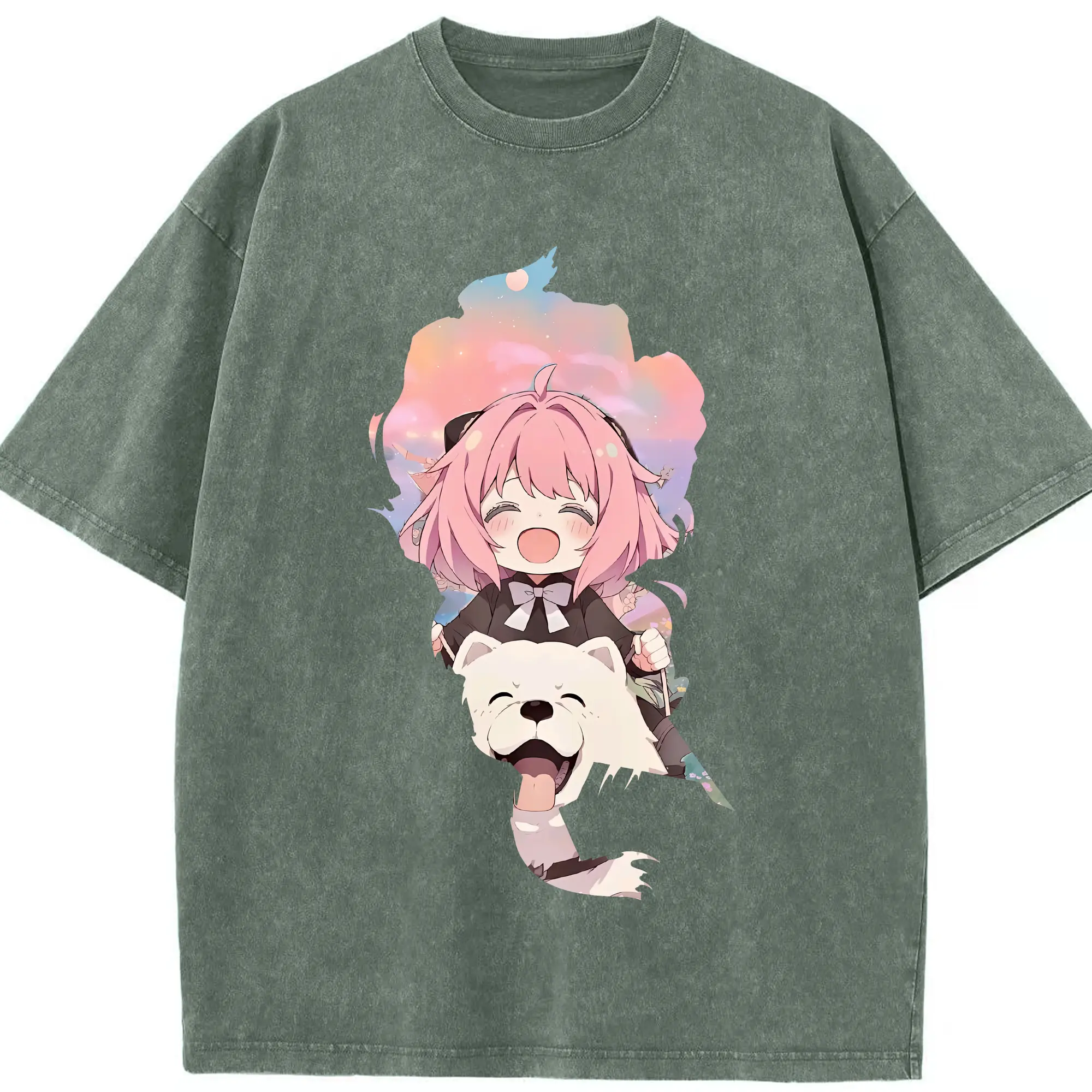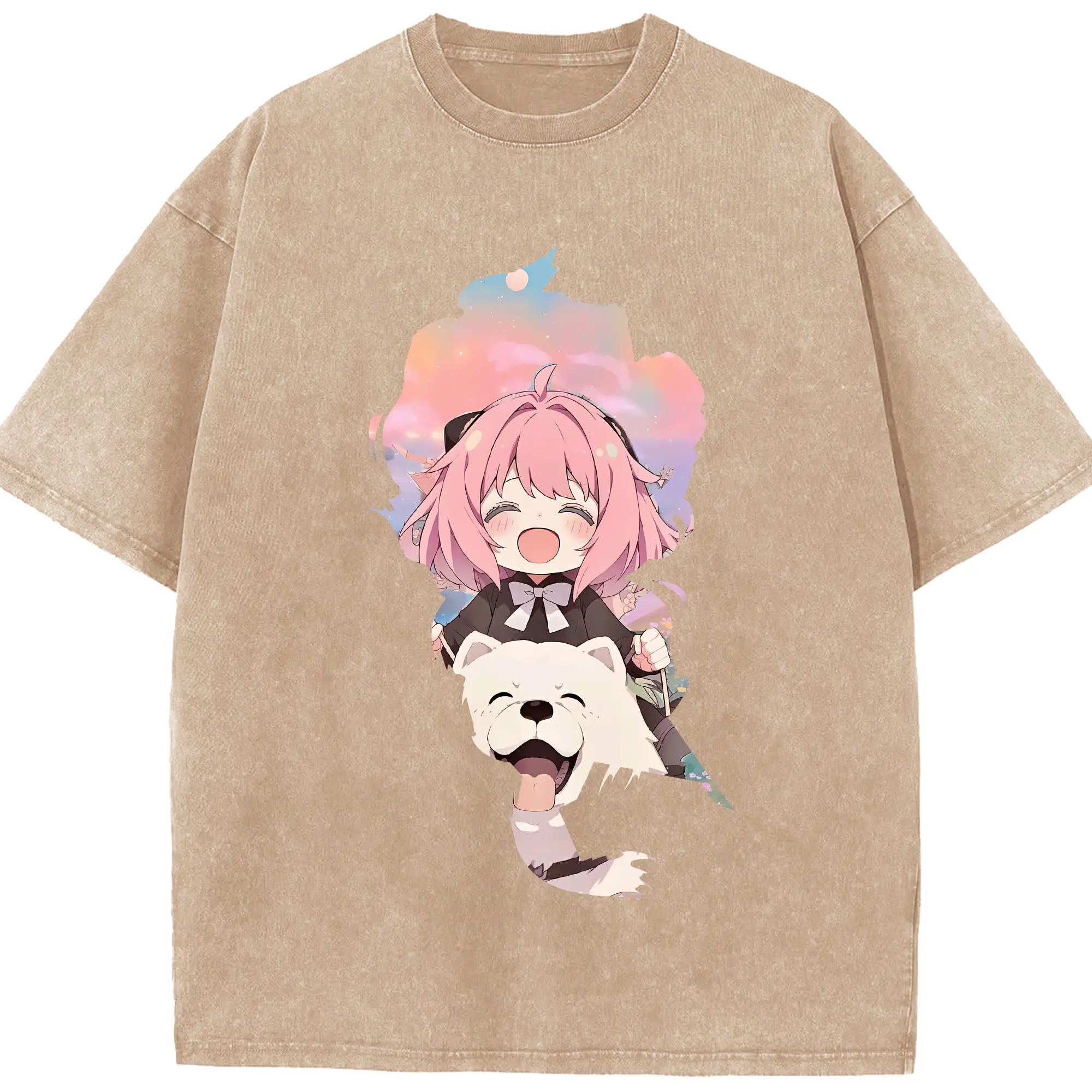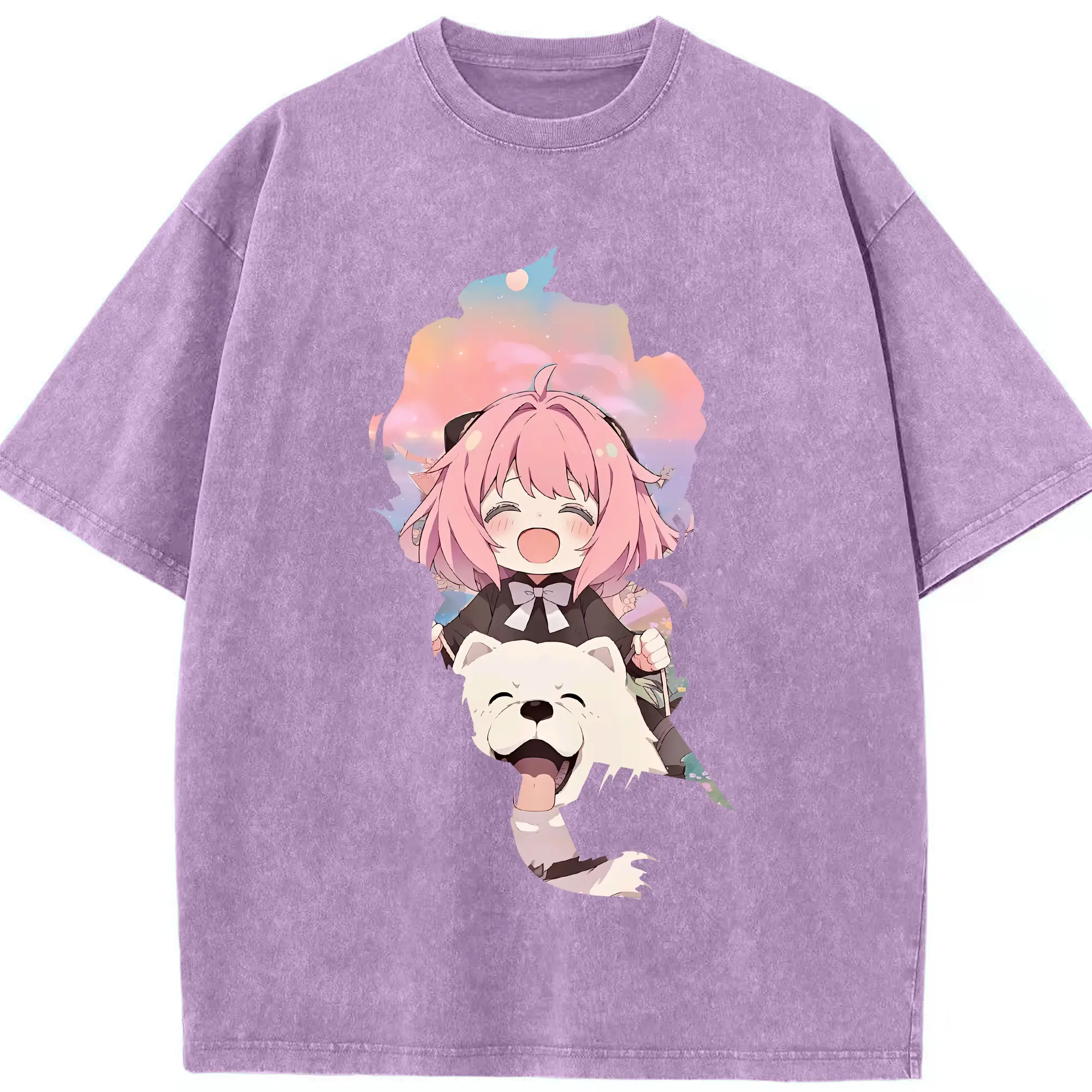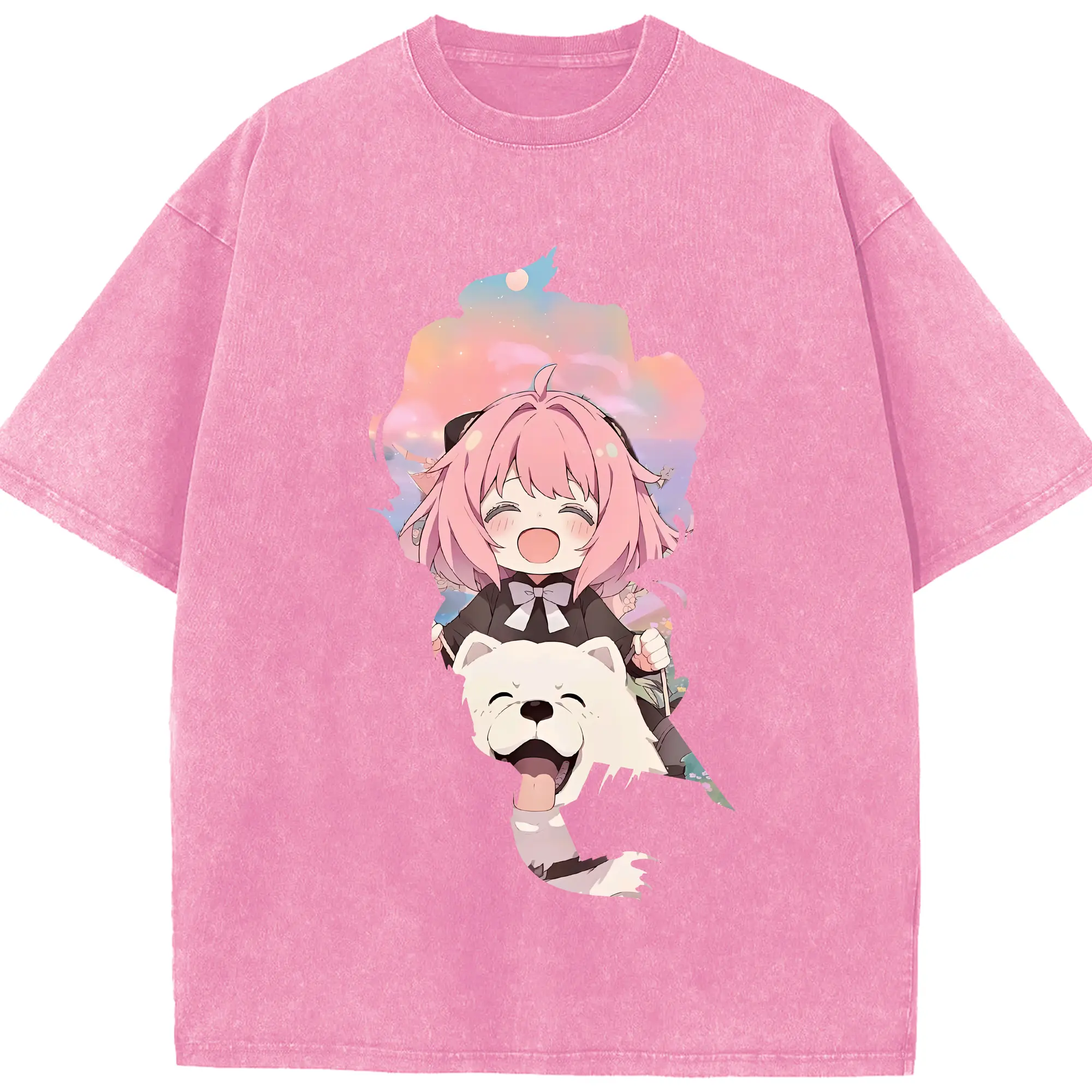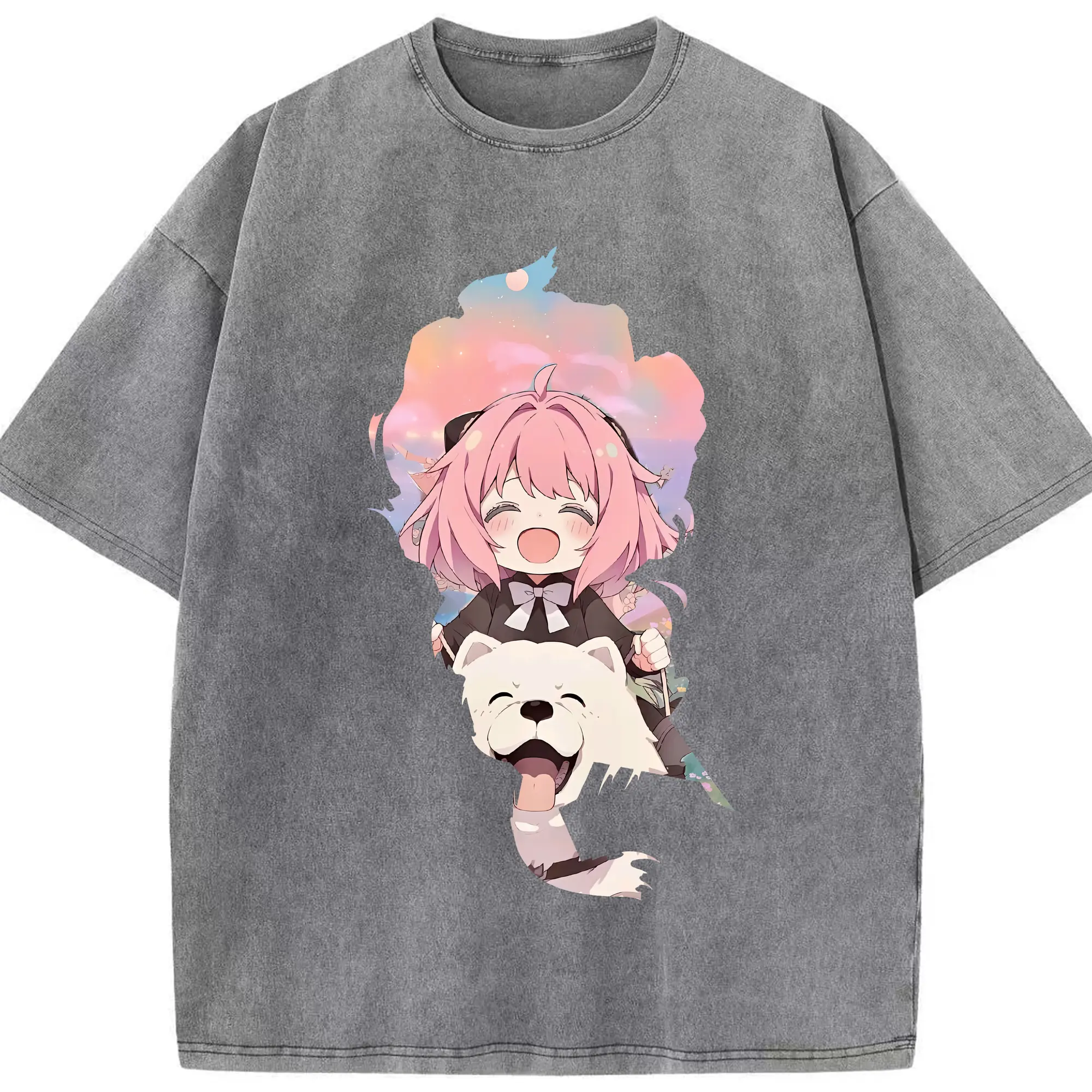 スパイファミリー グッズ,アーニャ・フォージャー(Anya Forger) - 綿100% ヴィンテージ風 半袖Tシャツ ・ 背面プリント ・ 柔らか肌触り ・ 通気性 快適 ・ スポーツ カジュアル 外出用