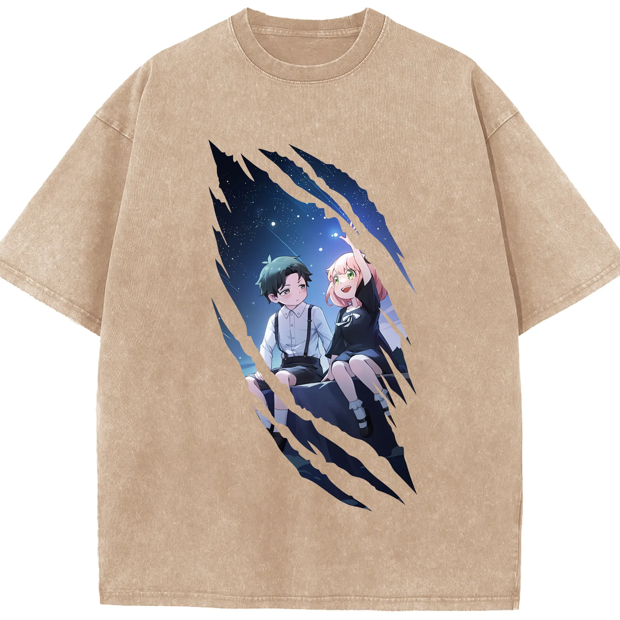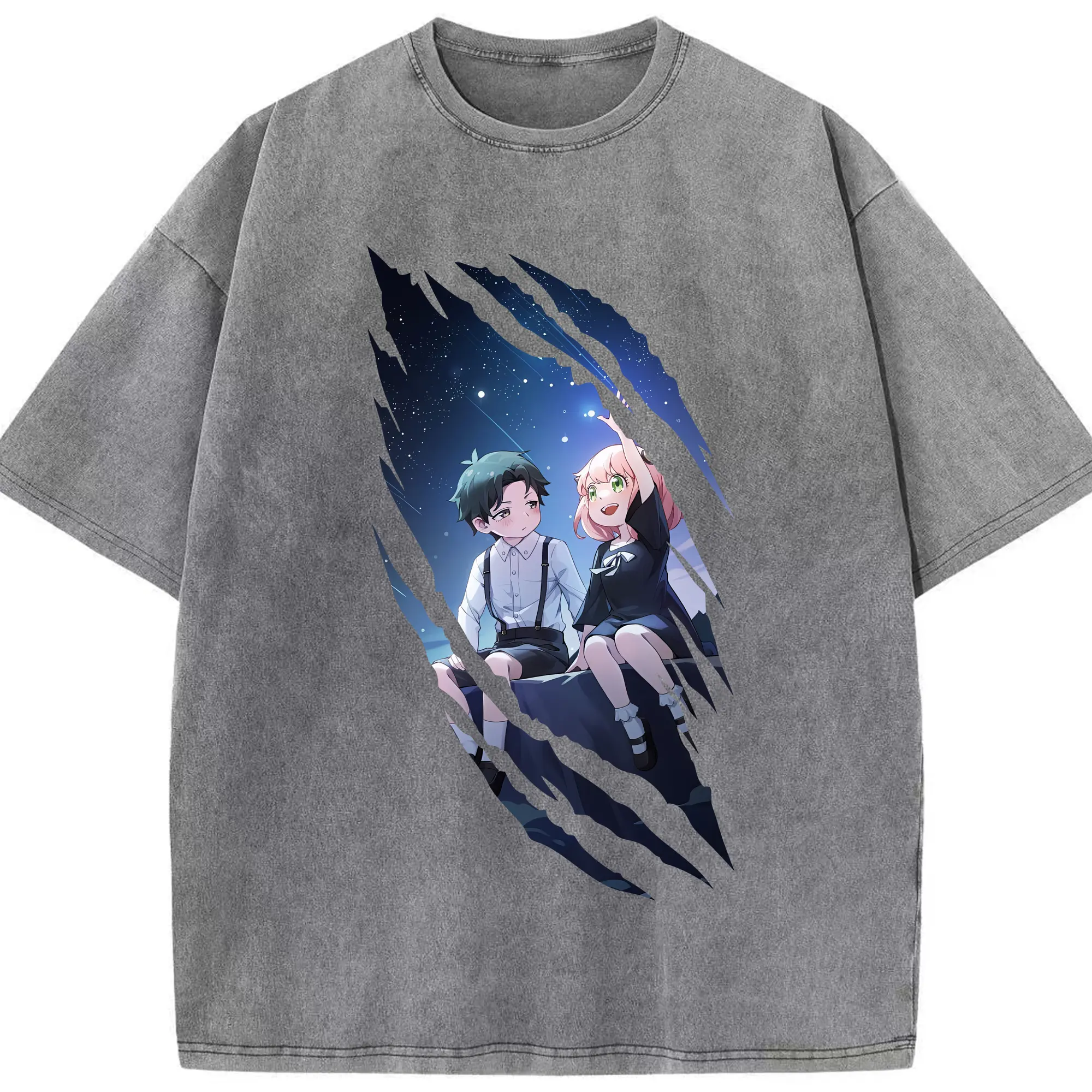 スパイファミリー グッズ,アーニャ・フォージャー(Anya Forger) - 綿100% ヴィンテージ風 半袖Tシャツ ・ 背面プリント ・ 柔らか肌触り ・ 通気性 快適 ・ スポーツ カジュアル 外出用