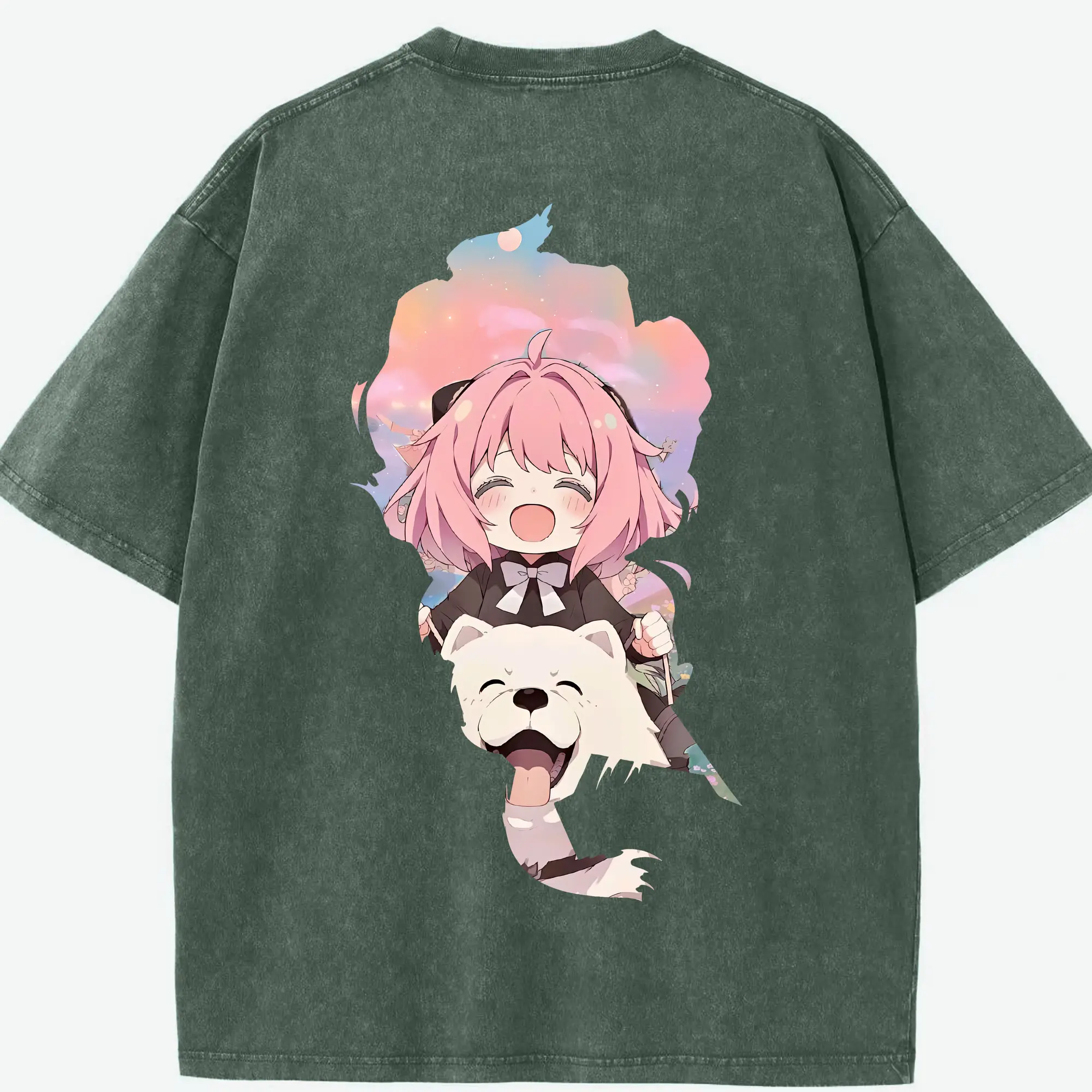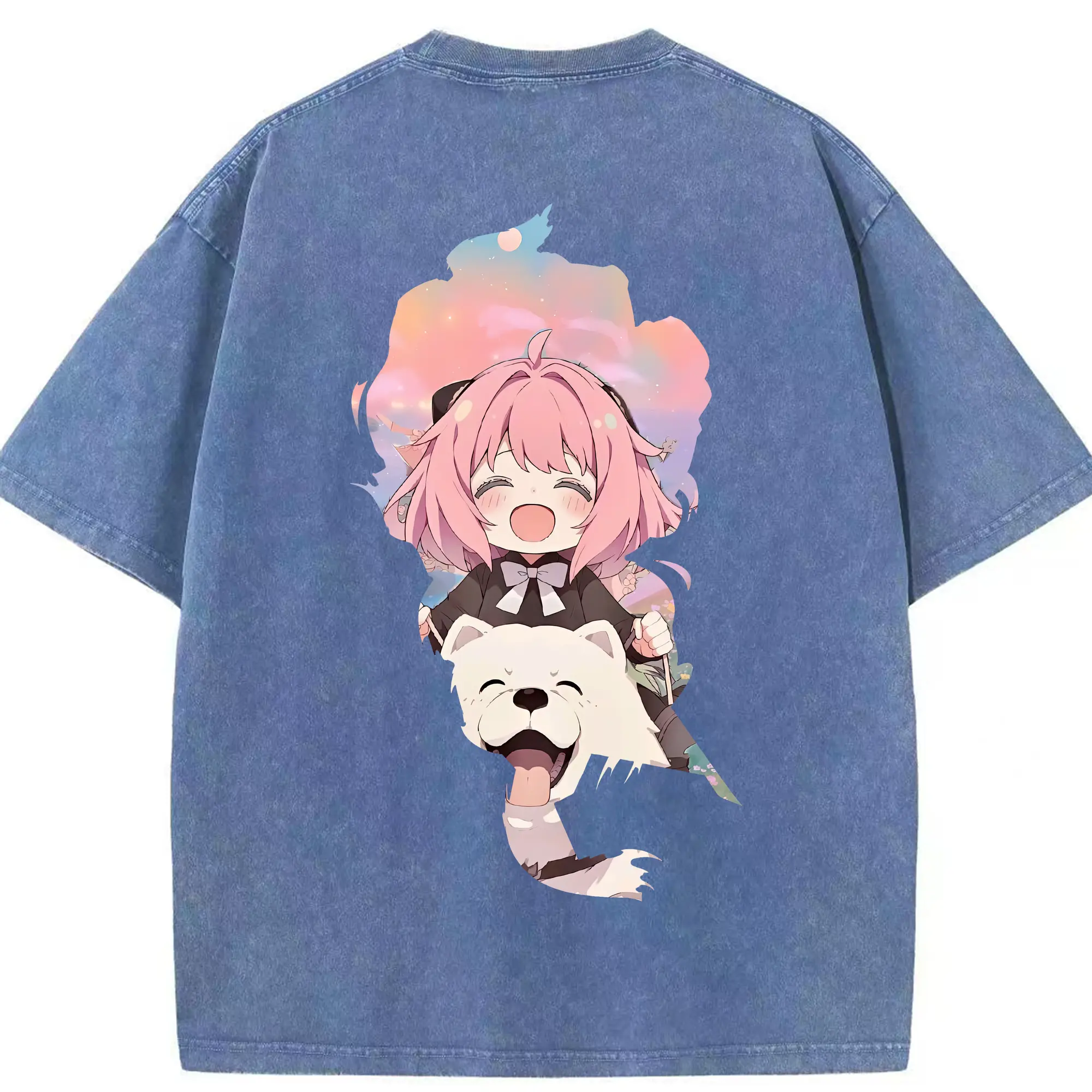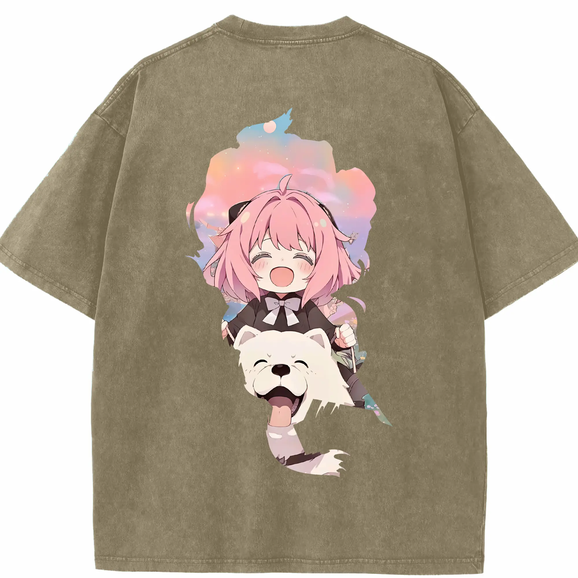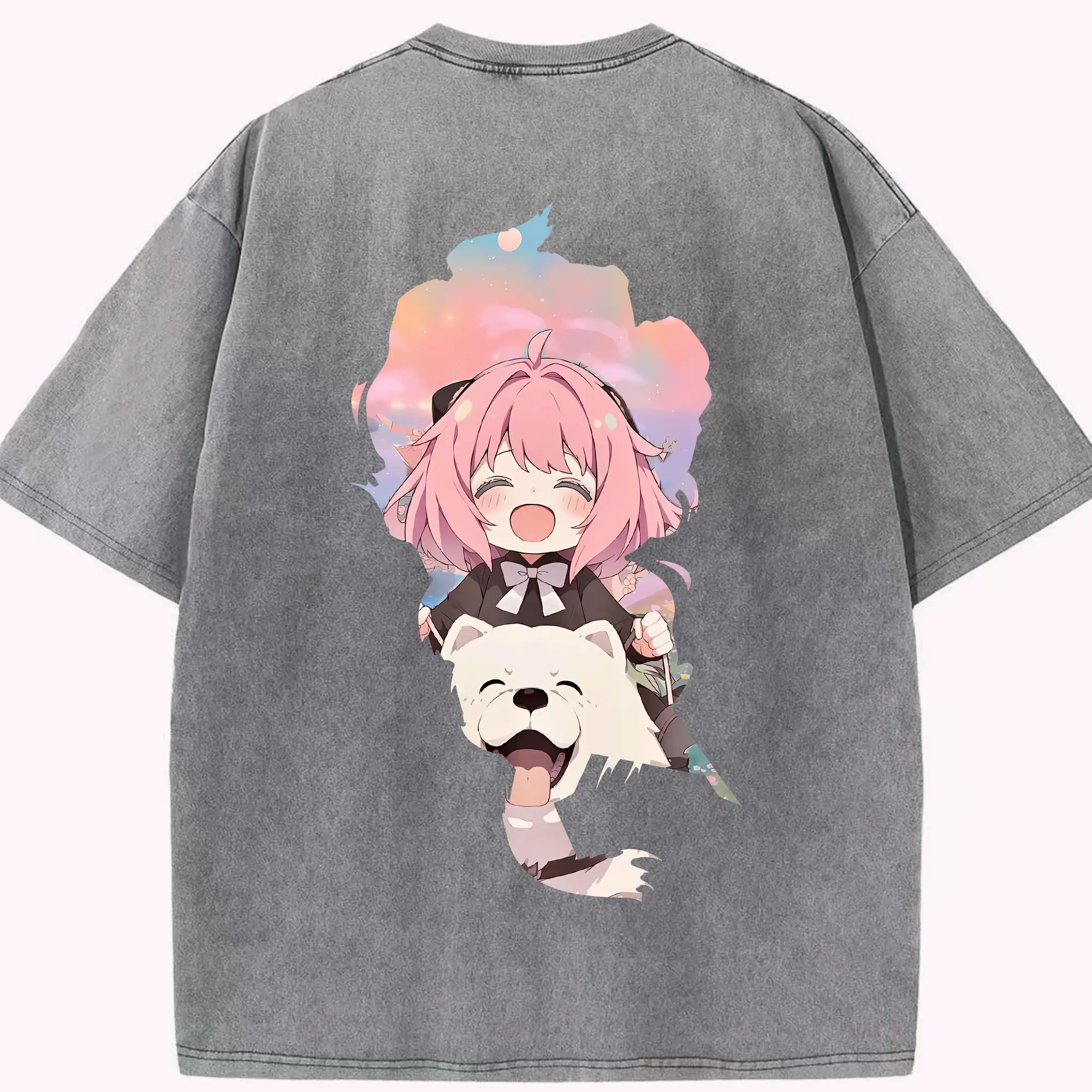 スパイファミリー グッズ,アーニャ・フォージャー(Anya Forger) - 綿100% ヴィンテージ風 半袖Tシャツ ・ フロントプリント ・ 柔らか肌触り ・ 通気性 快適 ・ スポーツ カジュアル 外出用