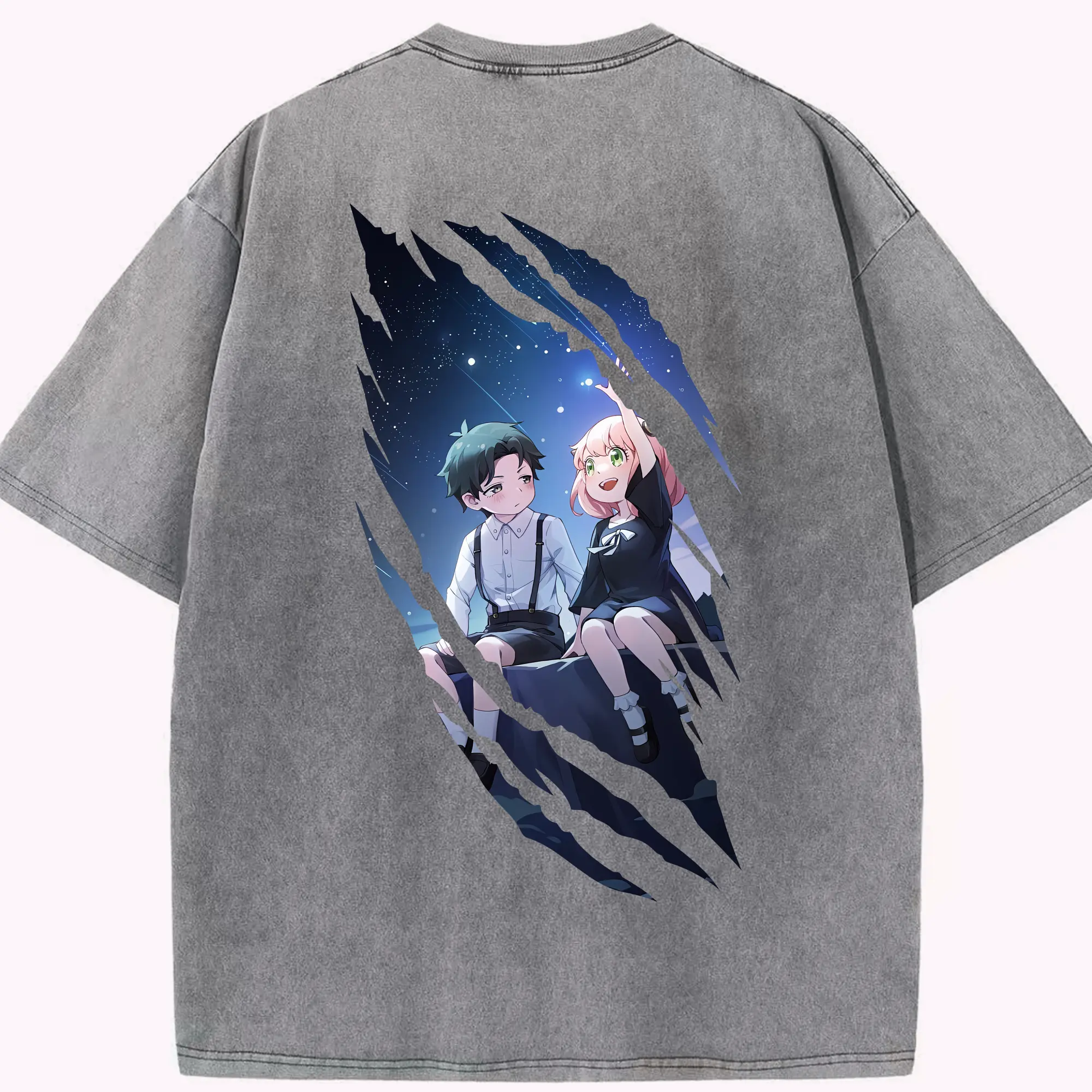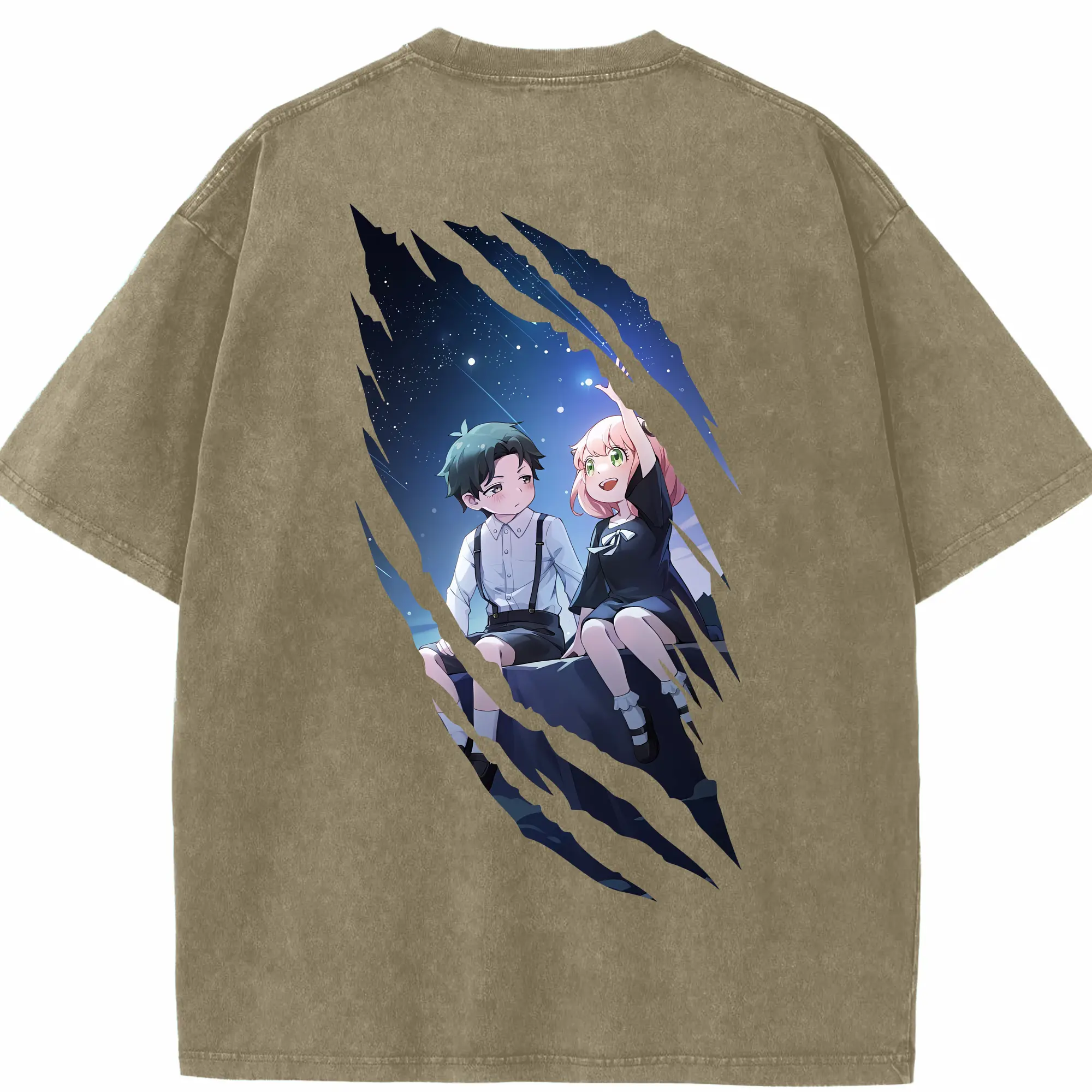スパイファミリー グッズ,アーニャ・フォージャー(Anya Forger) - 綿100% ヴィンテージ風 半袖Tシャツ ・ フロントプリント ・ 柔らか肌触り ・ 通気性 快適 ・ スポーツ カジュアル 外出用