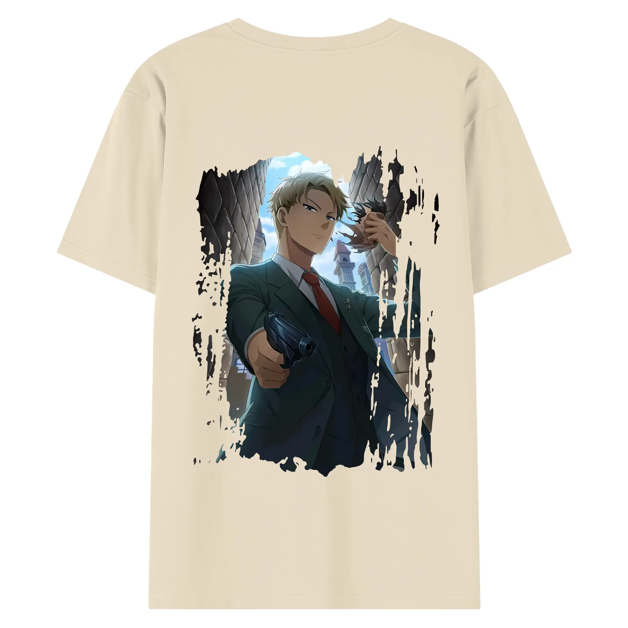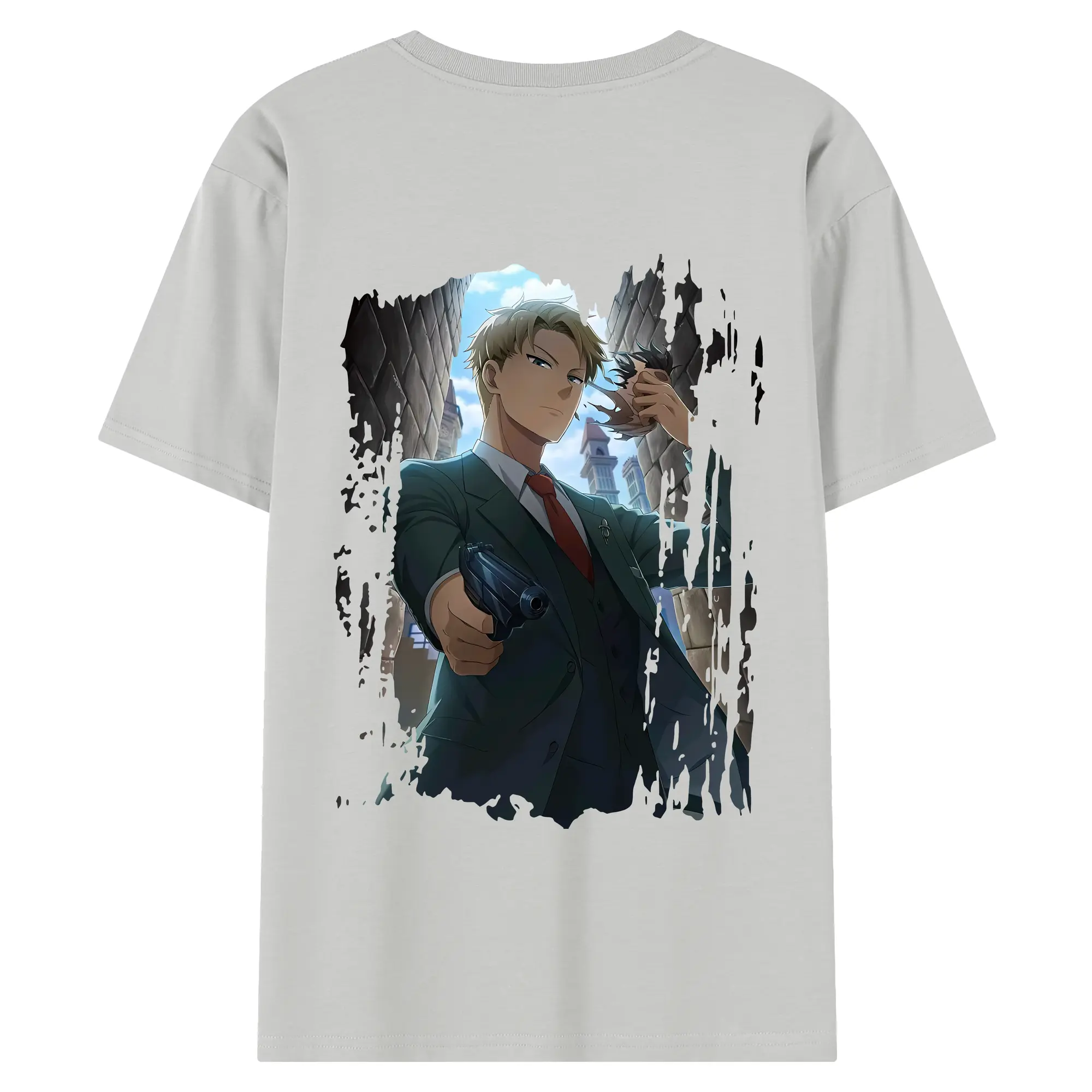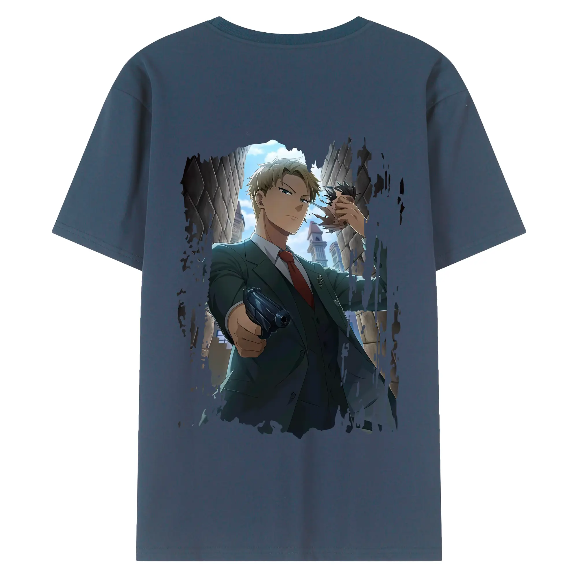 スパイファミリー グッズ,ロイド・フォージャー(Loid Forger) - 綿100% ヴィンテージ風 半袖Tシャツ ・ 背面プリント ・ 柔らか肌触り ・ 通気性 快適 ・ スポーツ カジュアル 外出用