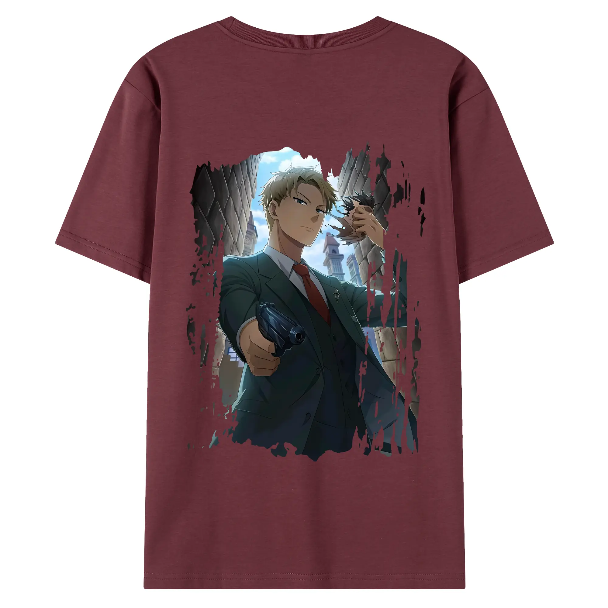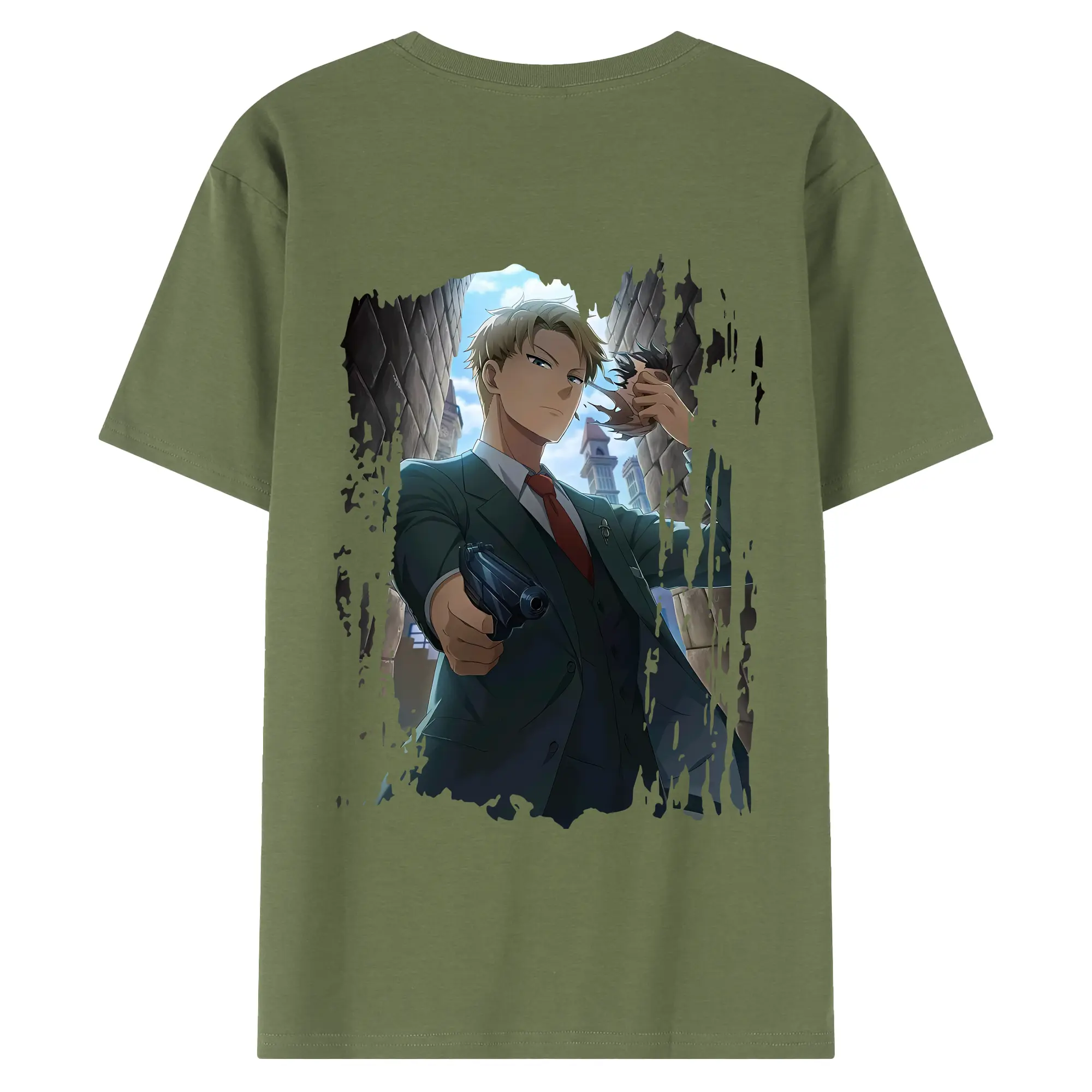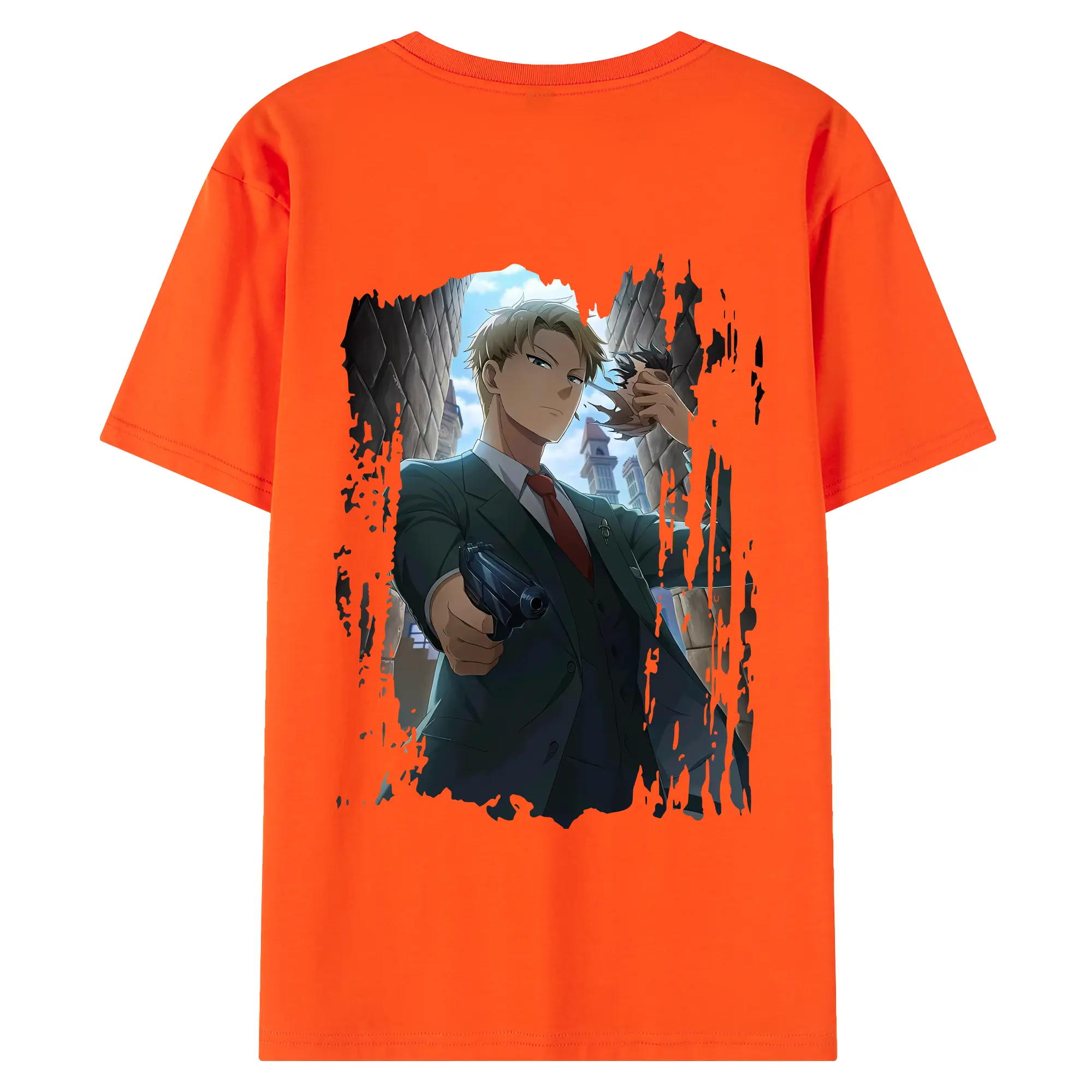 スパイファミリー グッズ,ロイド・フォージャー(Loid Forger) - 綿100% ヴィンテージ風 半袖Tシャツ ・ 背面プリント ・ 柔らか肌触り ・ 通気性 快適 ・ スポーツ カジュアル 外出用
