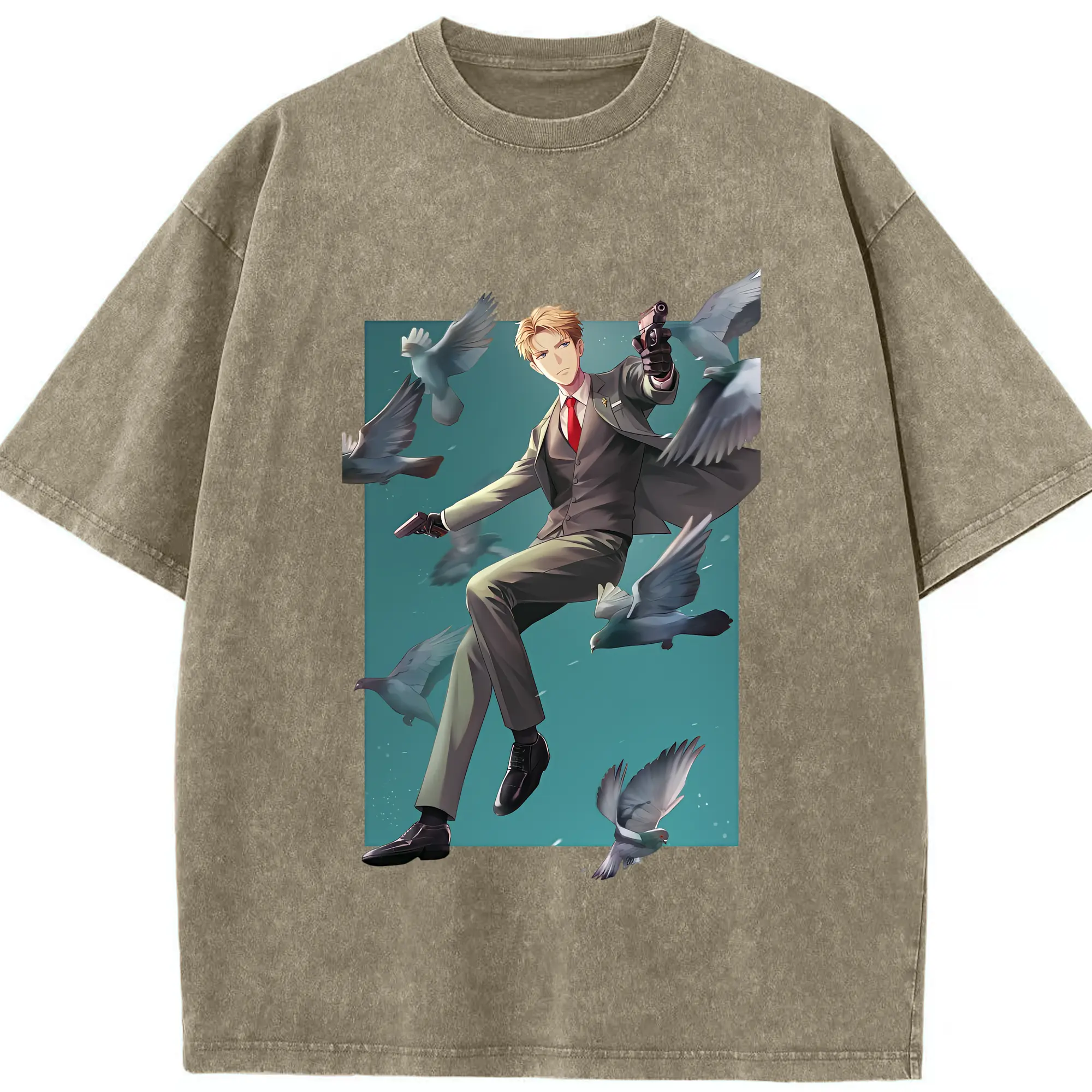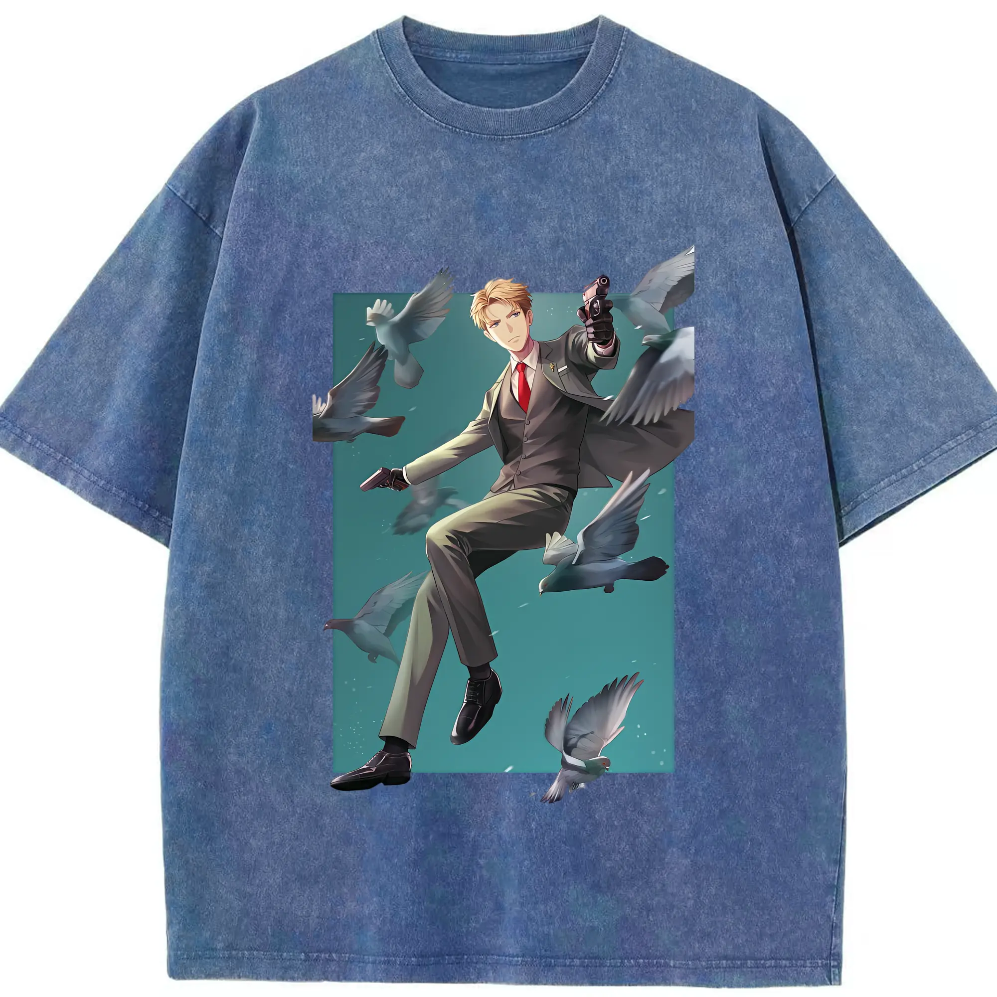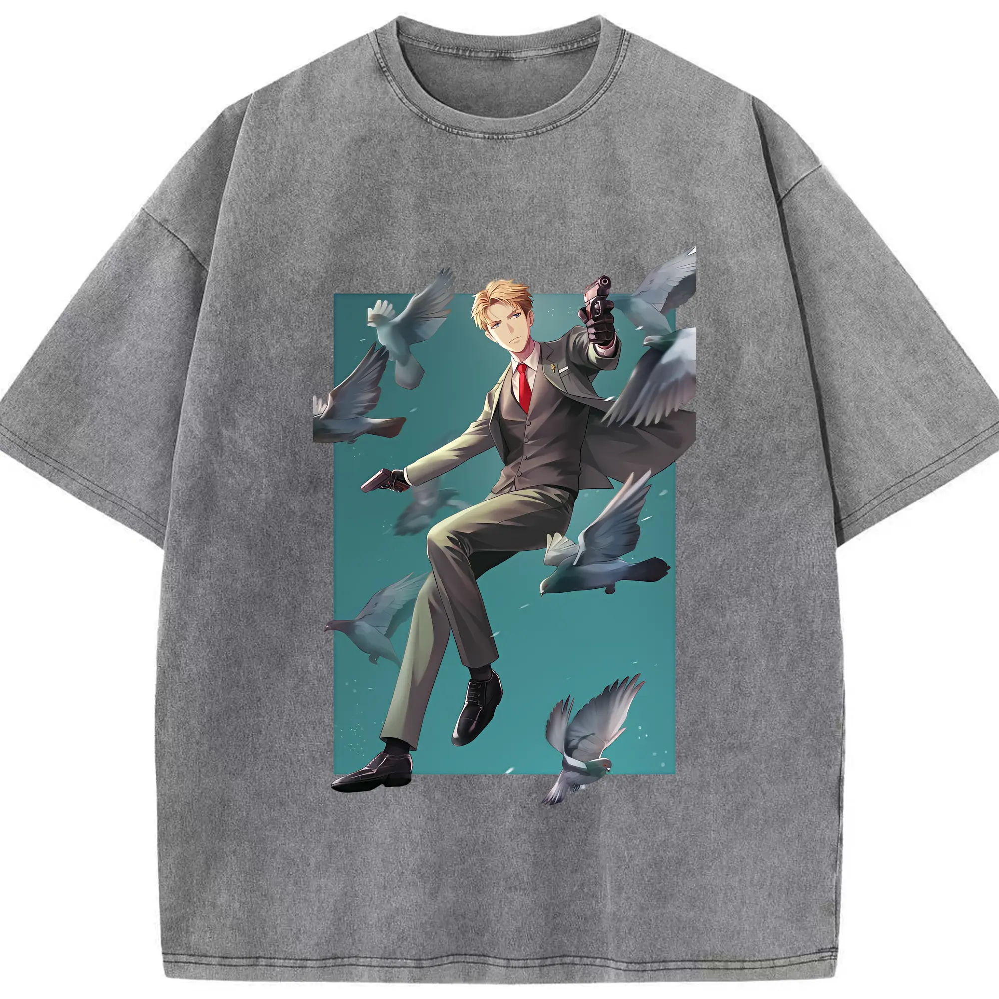 スパイファミリー グッズ,ロイド・フォージャー(Loid Forger) - 綿100% ヴィンテージ風 半袖Tシャツ ・ 背面プリント ・ 柔らか肌触り ・ 通気性 快適 ・ スポーツ カジュアル 外出用