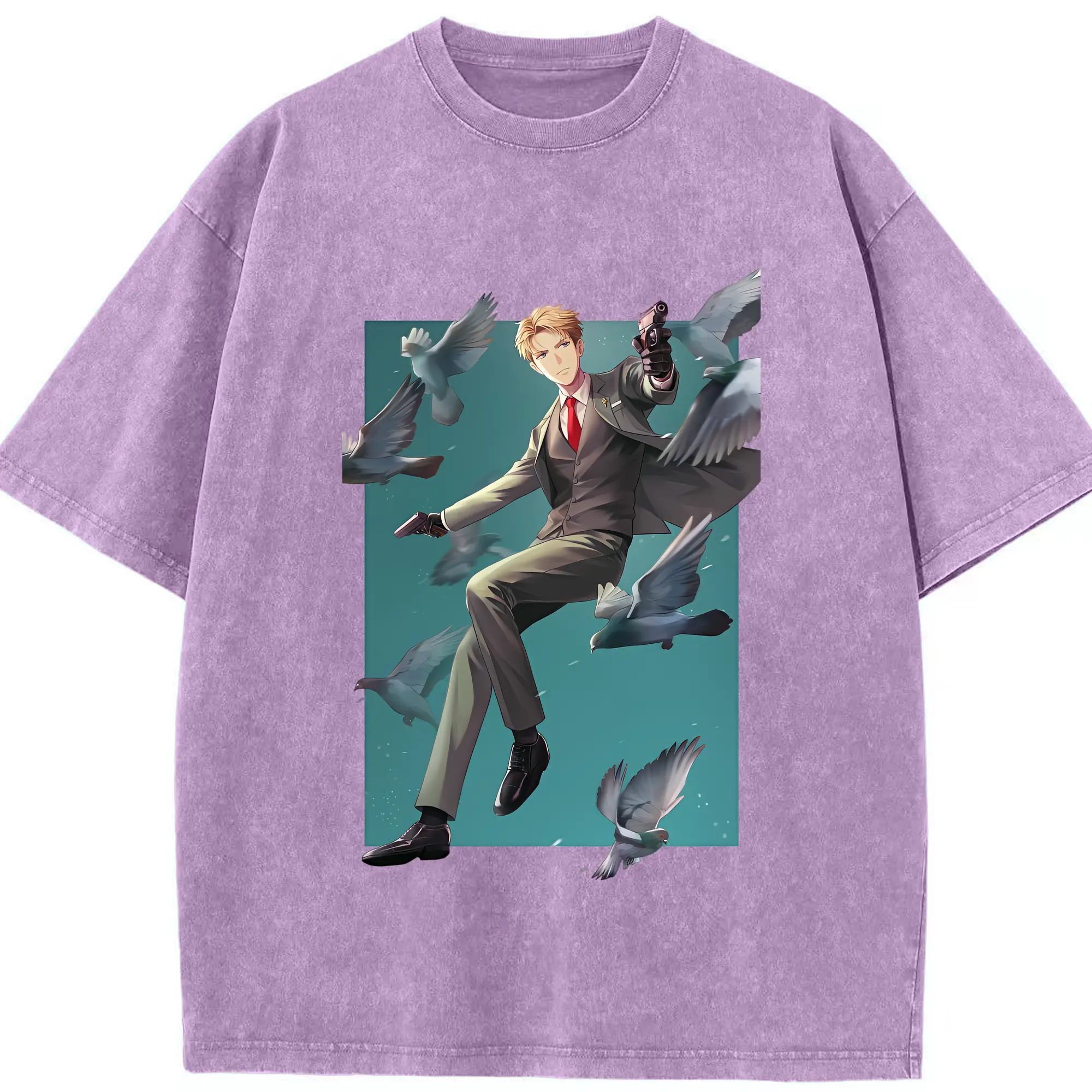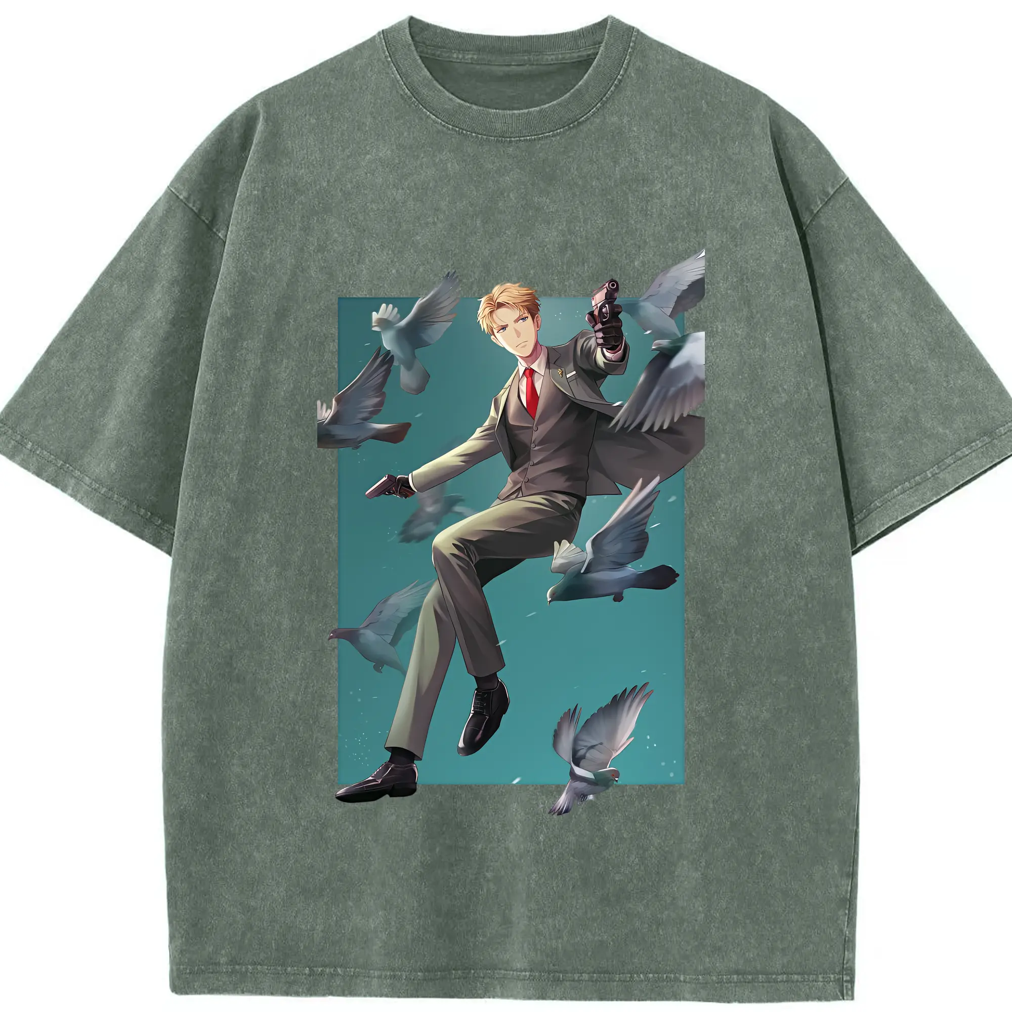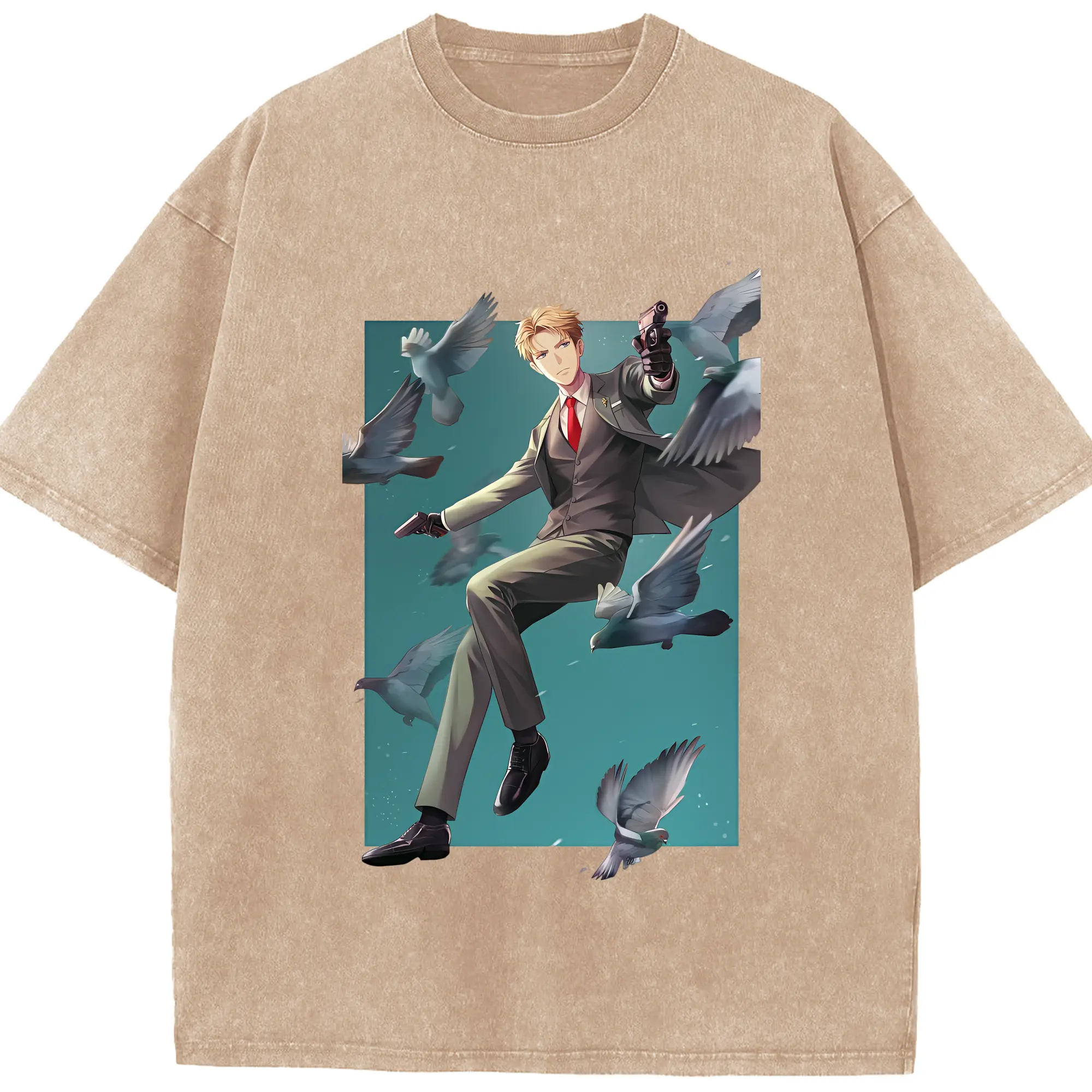 スパイファミリー グッズ,ロイド・フォージャー(Loid Forger) - 綿100% ヴィンテージ風 半袖Tシャツ ・ 背面プリント ・ 柔らか肌触り ・ 通気性 快適 ・ スポーツ カジュアル 外出用
