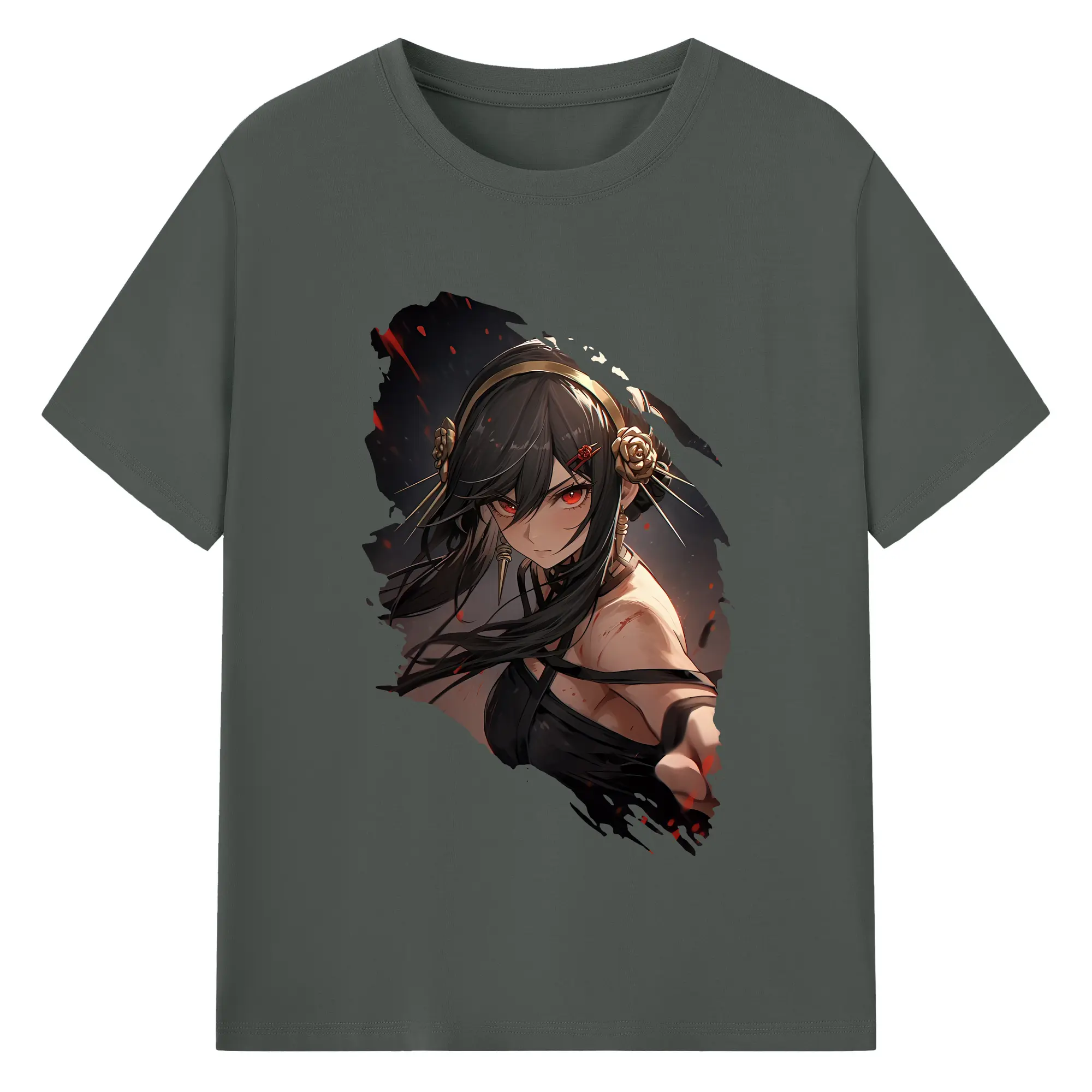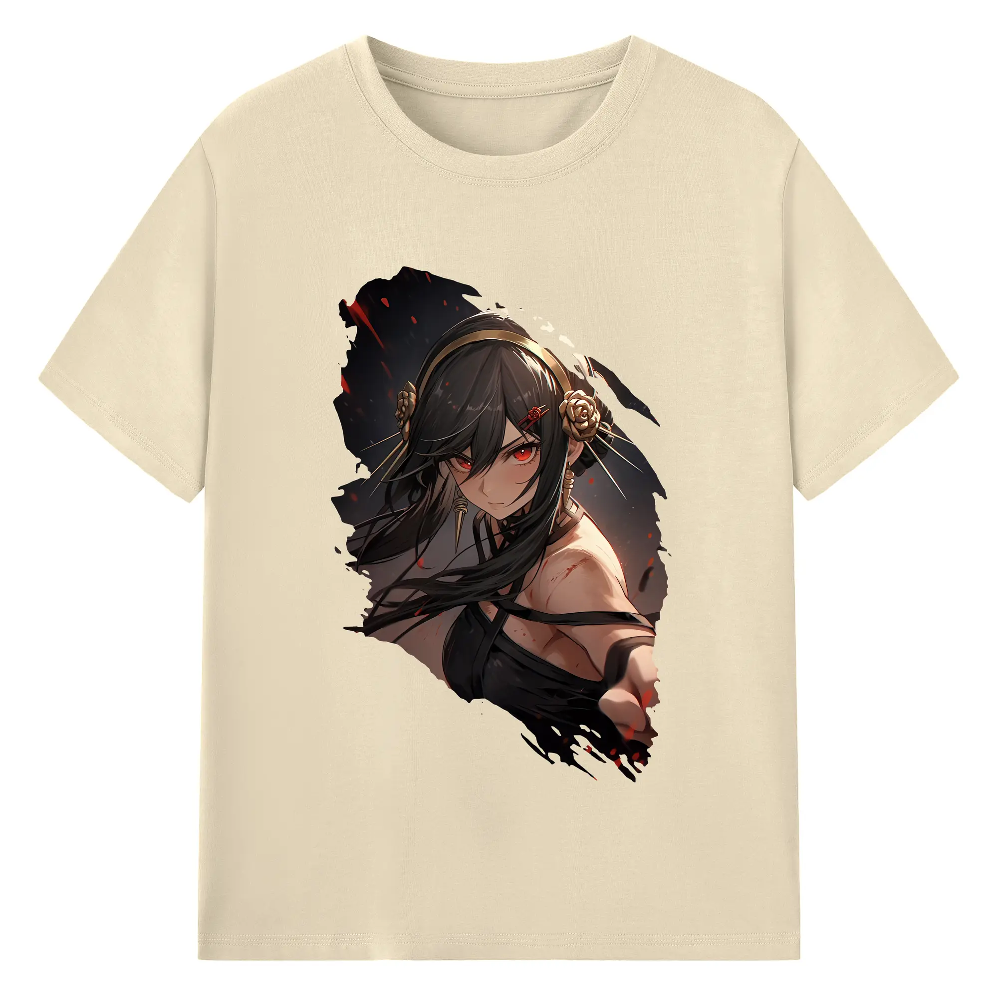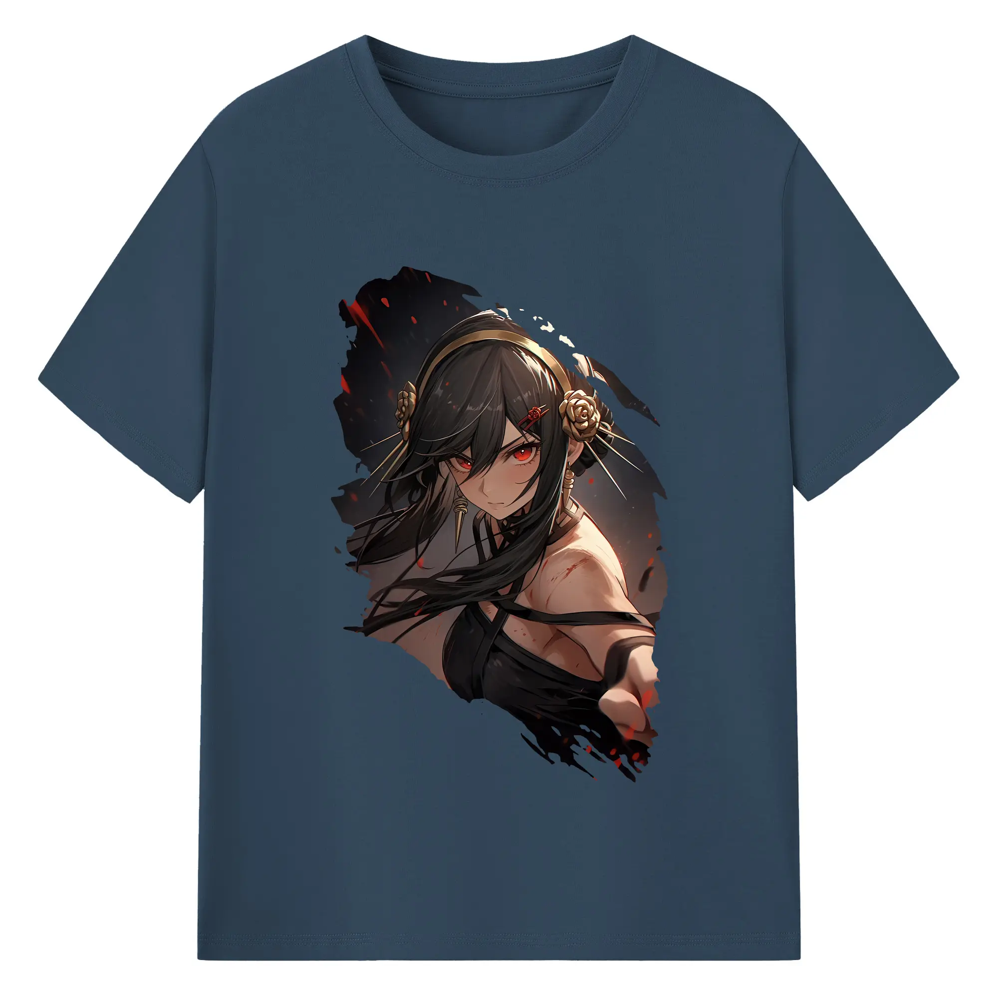 スパイファミリー グッズ,ヨル・フォージャー(Yor Forger) - 綿100% ヴィンテージ風 半袖Tシャツ ・ フロントプリント ・ 柔らか肌触り ・ 通気性 快適 ・ スポーツ カジュアル 外出用