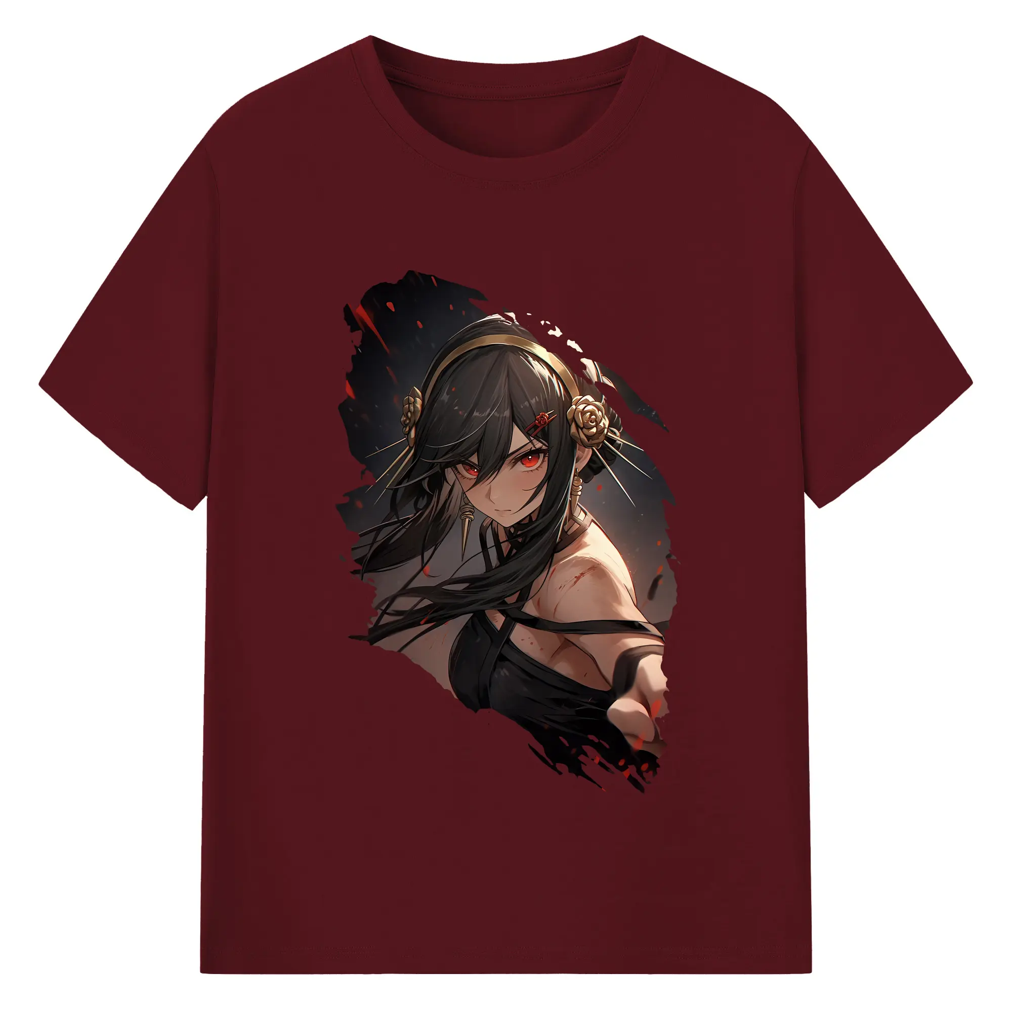 スパイファミリー グッズ,ヨル・フォージャー(Yor Forger) - 綿100% 半袖Tシャツ ・ バックプリント ・ 快適 通気性 ・ 日常使い 散歩 スポーツ用