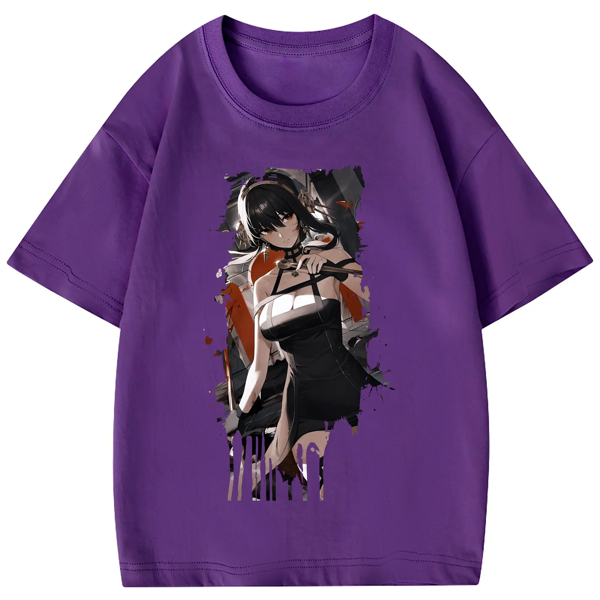 スパイファミリー グッズ,ヨル・フォージャー(Yor Forger) - 綿100% 半袖Tシャツ ・ フロントプリント ・ 快適 通気性 ・ 日常使い 散歩 スポーツ用