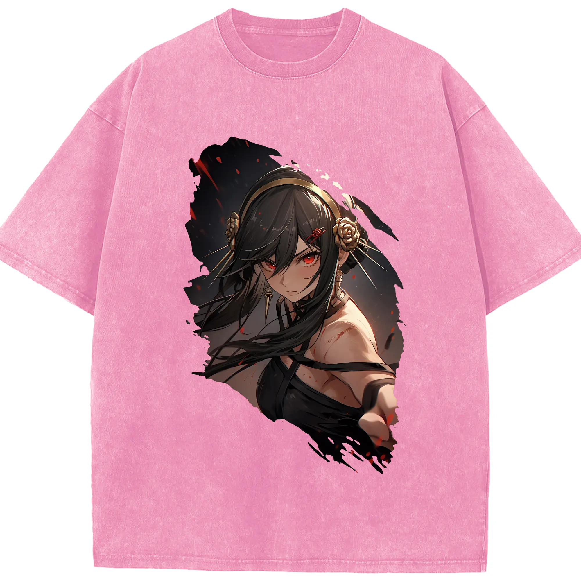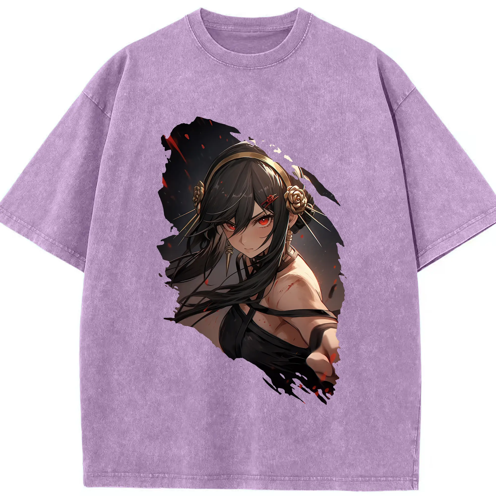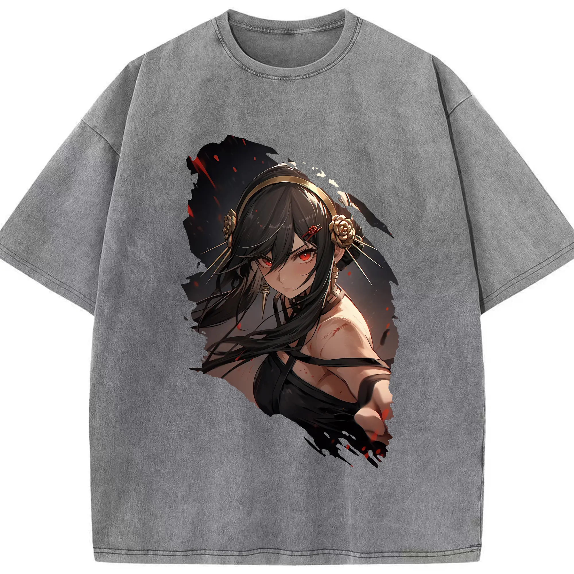 スパイファミリー グッズ,ヨル・フォージャー(Yor Forger) - 綿100% ヴィンテージ風 半袖Tシャツ ・ 背面プリント ・ 柔らか肌触り ・ 通気性 快適 ・ スポーツ カジュアル 外出用