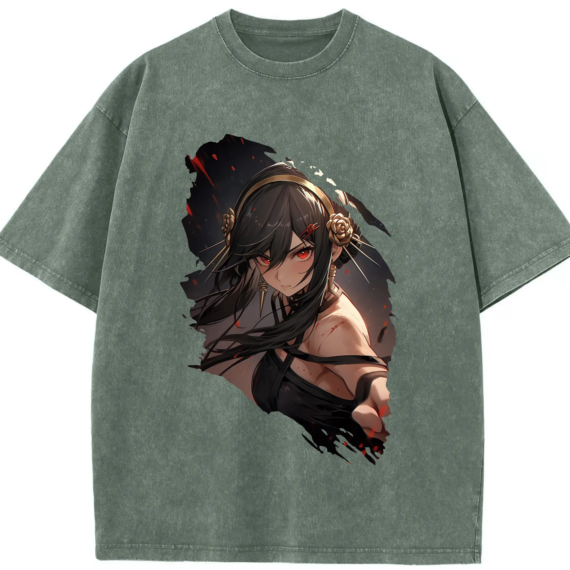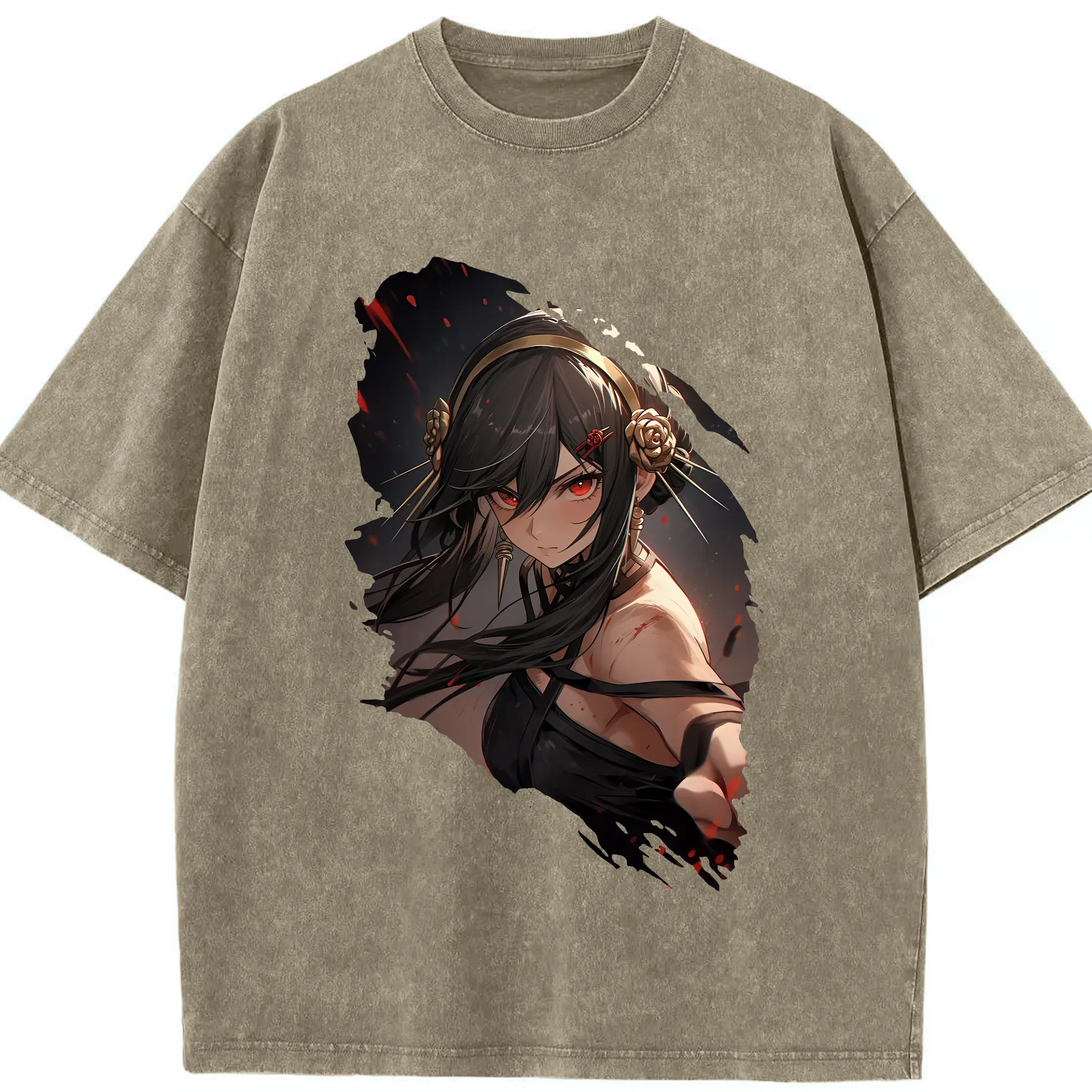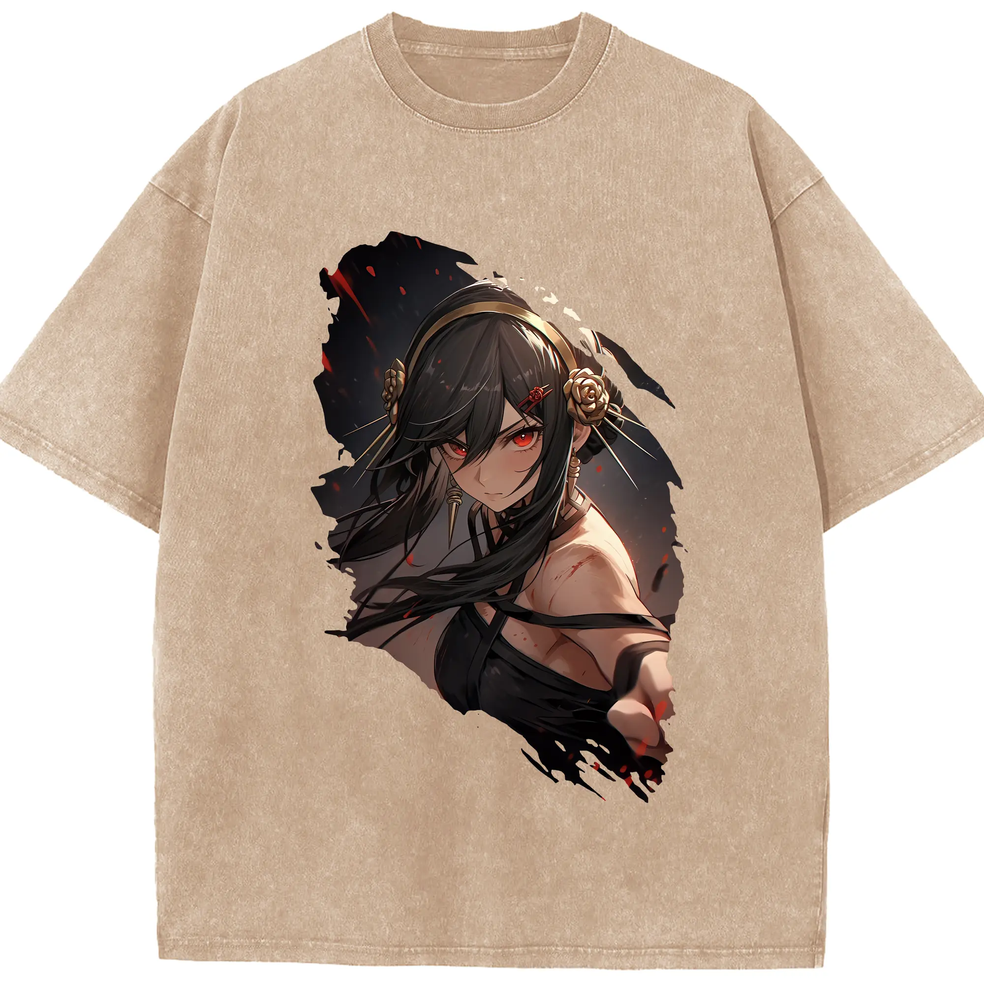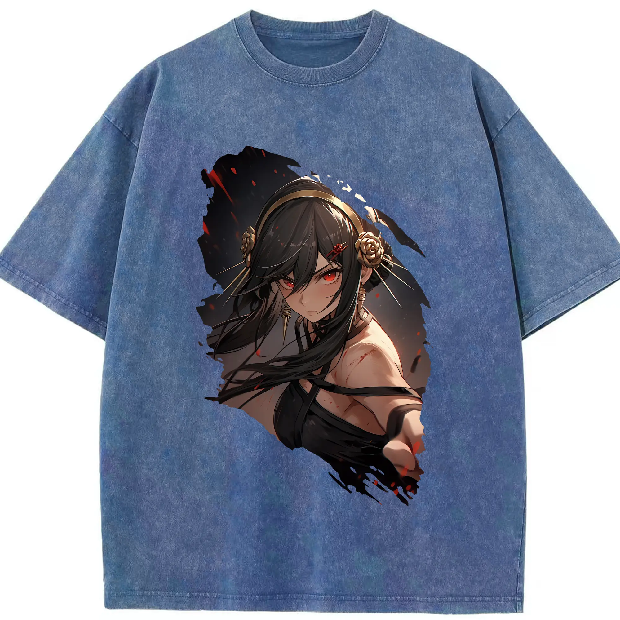 スパイファミリー グッズ,ヨル・フォージャー(Yor Forger) - 綿100% ヴィンテージ風 半袖Tシャツ ・ 背面プリント ・ 柔らか肌触り ・ 通気性 快適 ・ スポーツ カジュアル 外出用