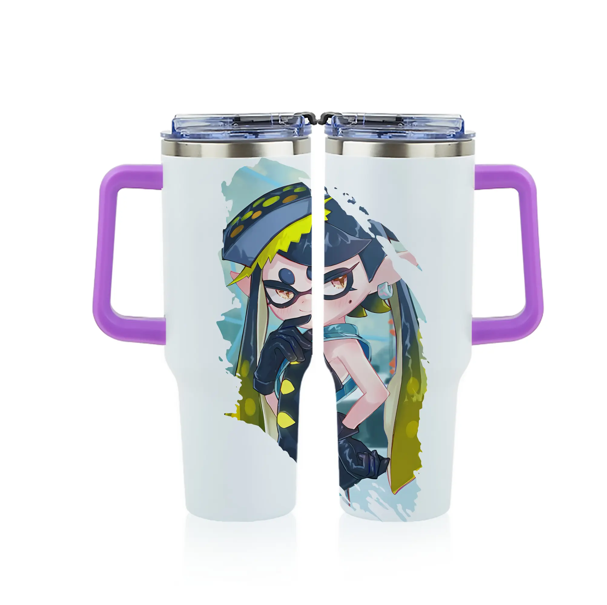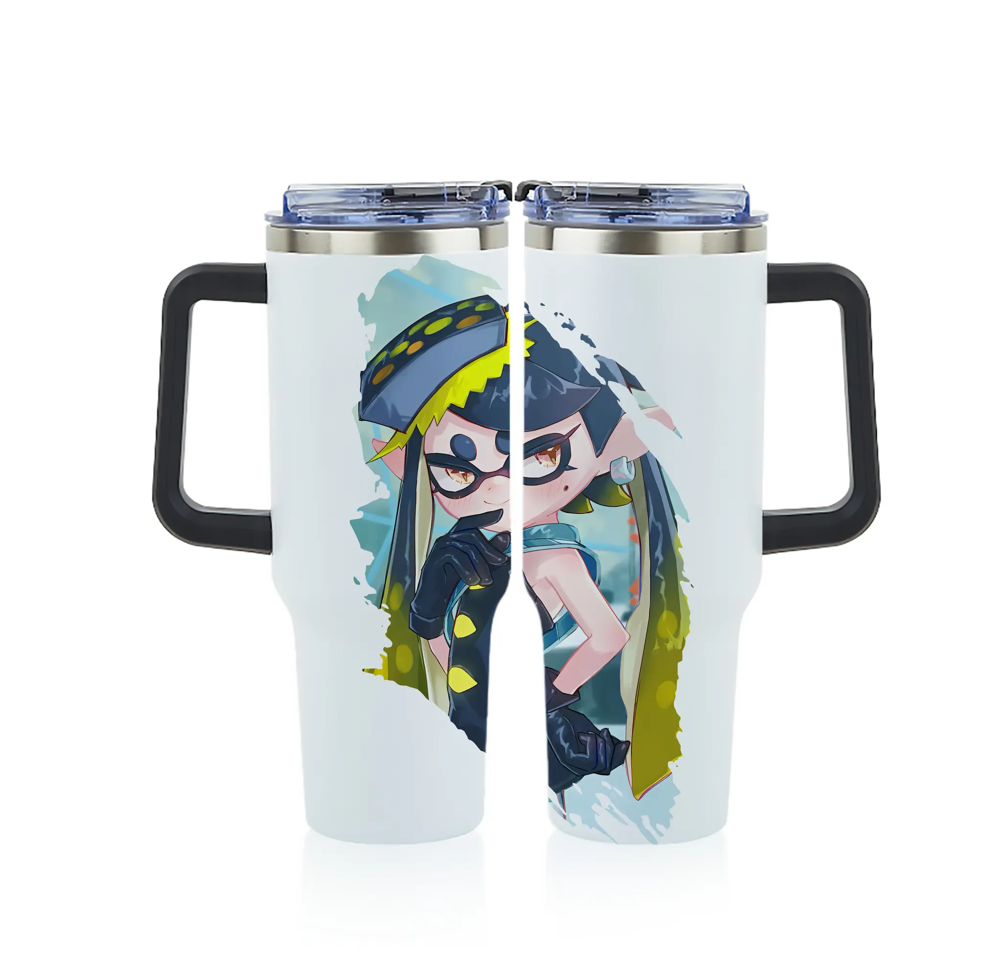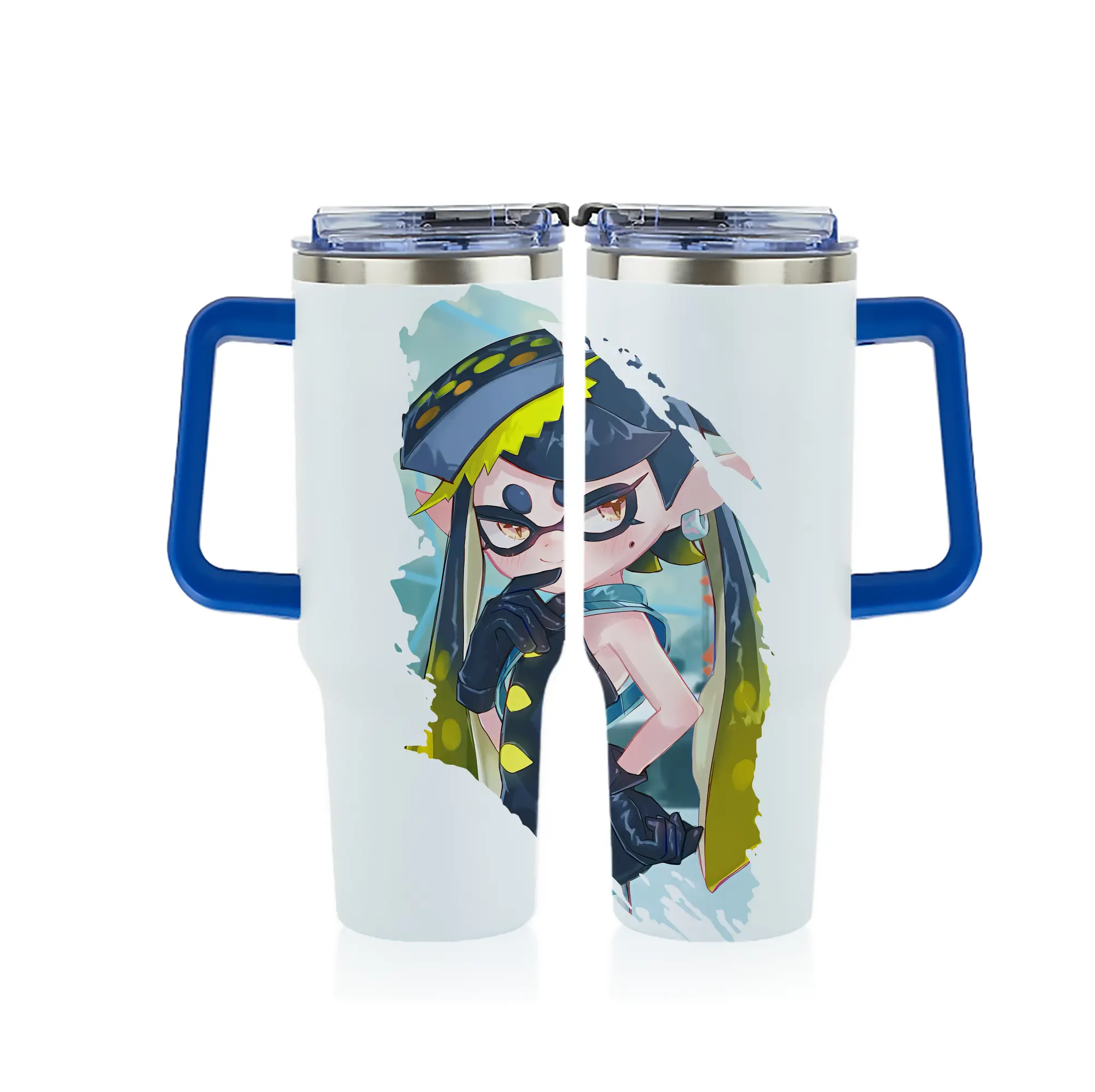 スプラトゥーン グッズ,シオカラーズ アオリ - 1200mL フルプリント車用タンブラー ・ 304ステンレス 内側 ・ 201ステンレス 外側 ・ 保温 保冷 ・ 通勤 ドライブ アウトドア用
