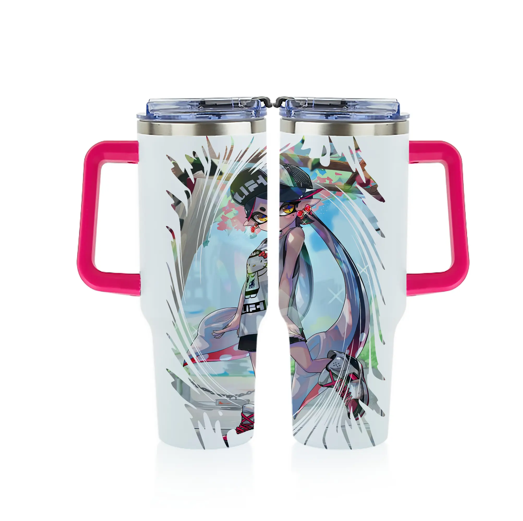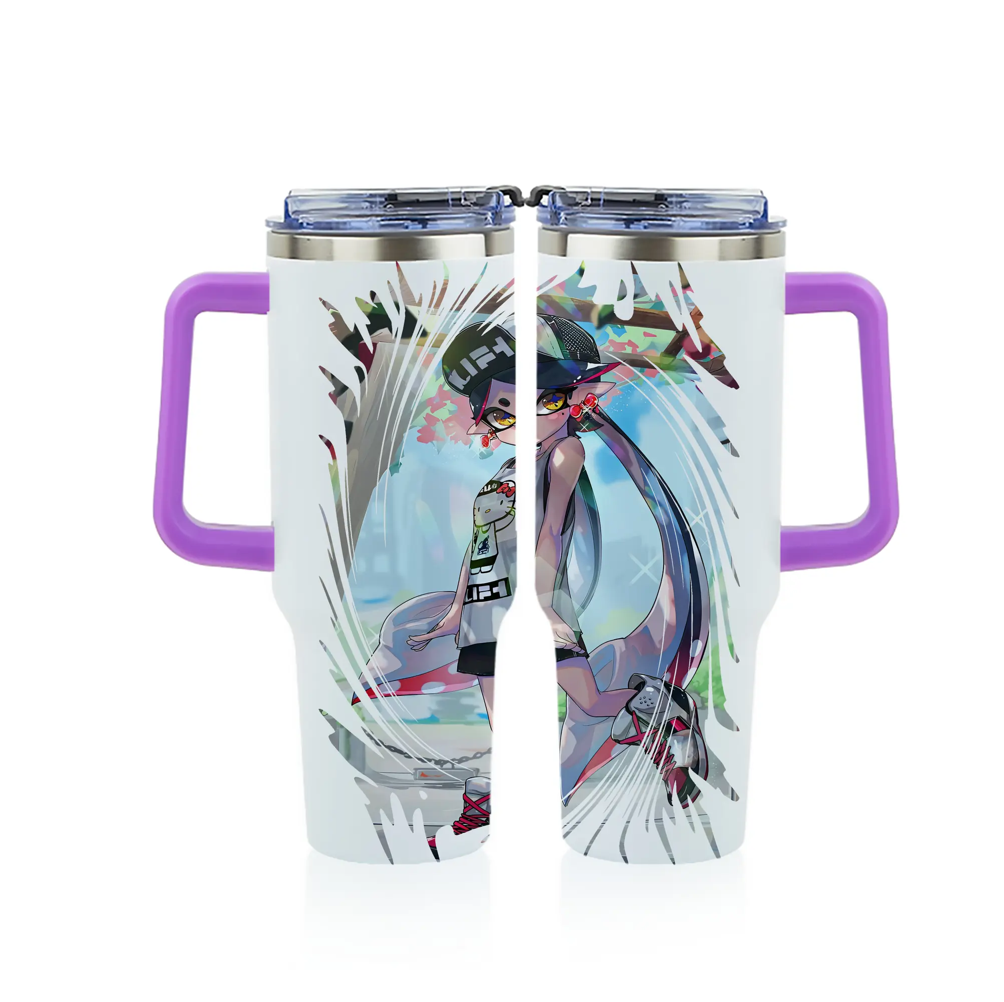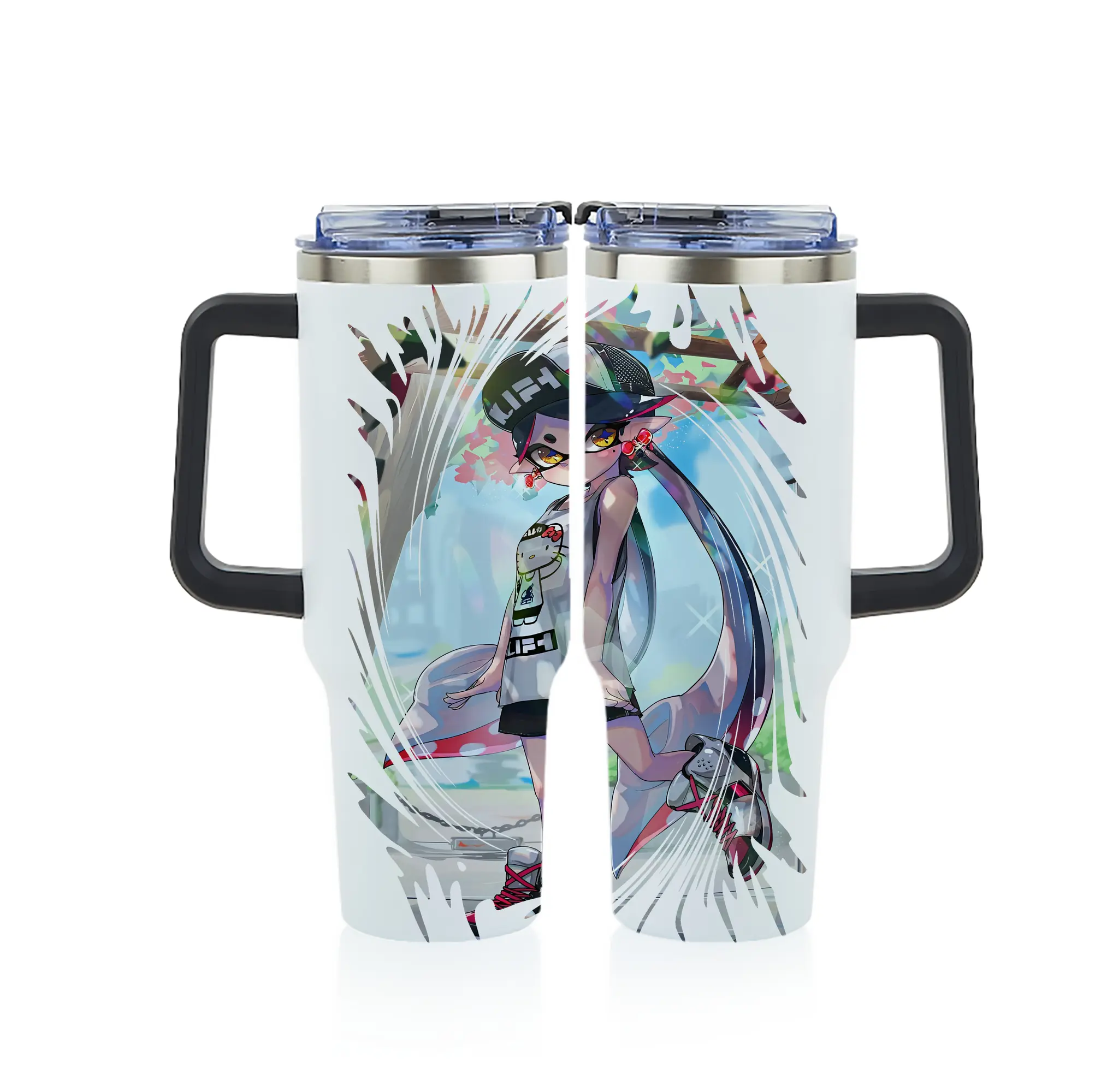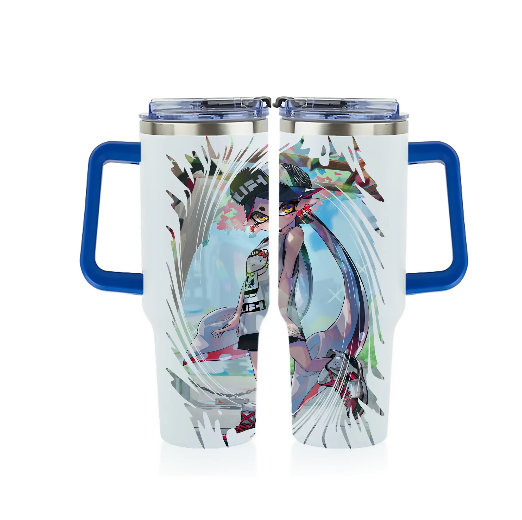 スプラトゥーン グッズ,シオカラーズ アオリ - 1200mL フルプリント車用タンブラー ・ 304ステンレス 内側 ・ 201ステンレス 外側 ・ 保温 保冷 ・ 通勤 ドライブ アウトドア用