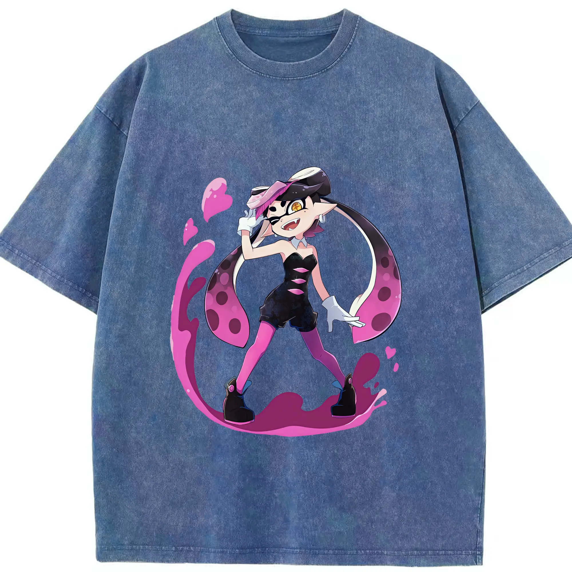 スプラトゥーン グッズ,シオカラーズ アオリ - 綿100% ヴィンテージ風 半袖Tシャツ ・ 背面プリント ・ 柔らか肌触り ・ 通気性 快適 ・ スポーツ カジュアル 外出用