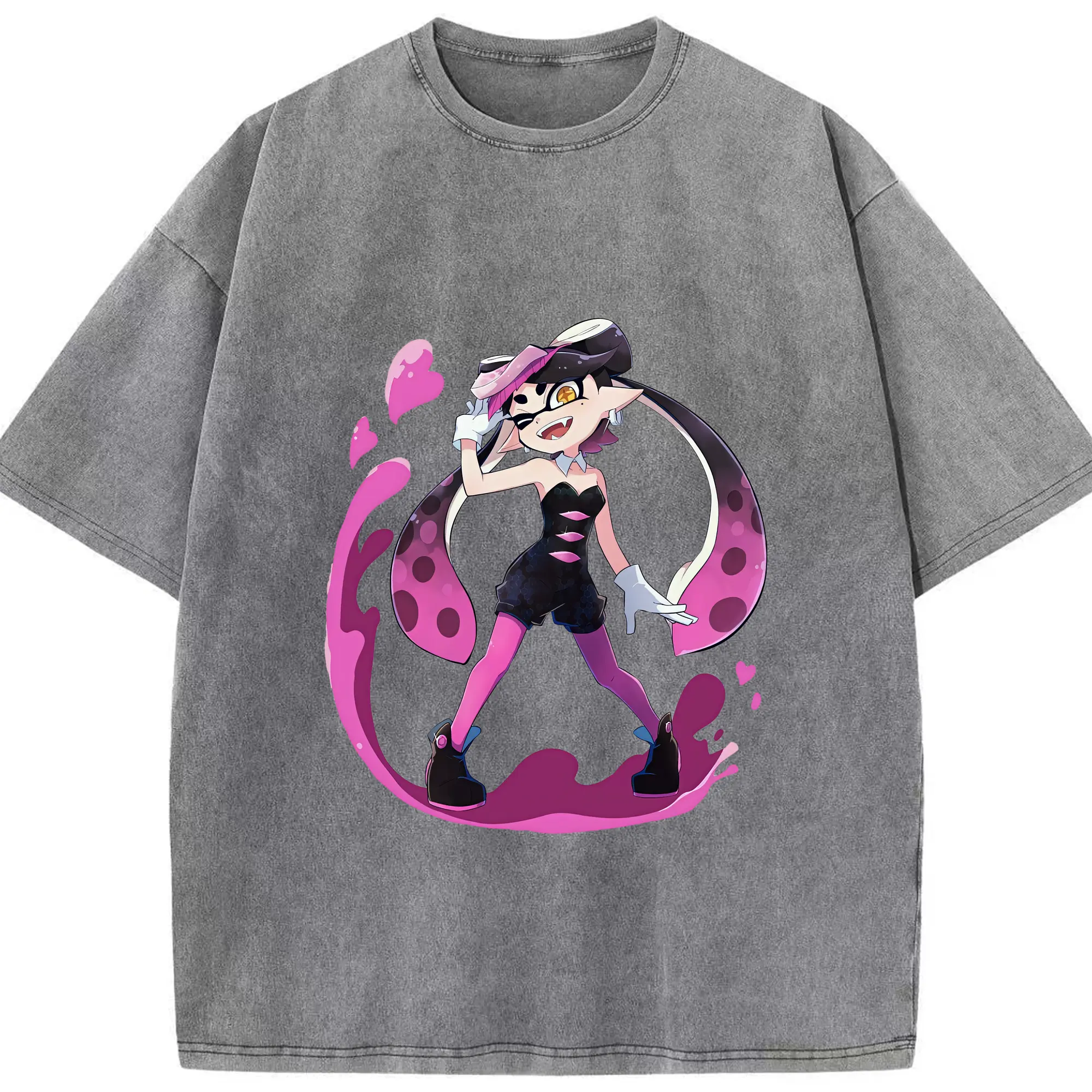 スプラトゥーン グッズ,シオカラーズ - 綿100% ヴィンテージ風 半袖Tシャツ ・ フロントプリント ・ 柔らか肌触り ・ 通気性 快適 ・ スポーツ カジュアル 外出用