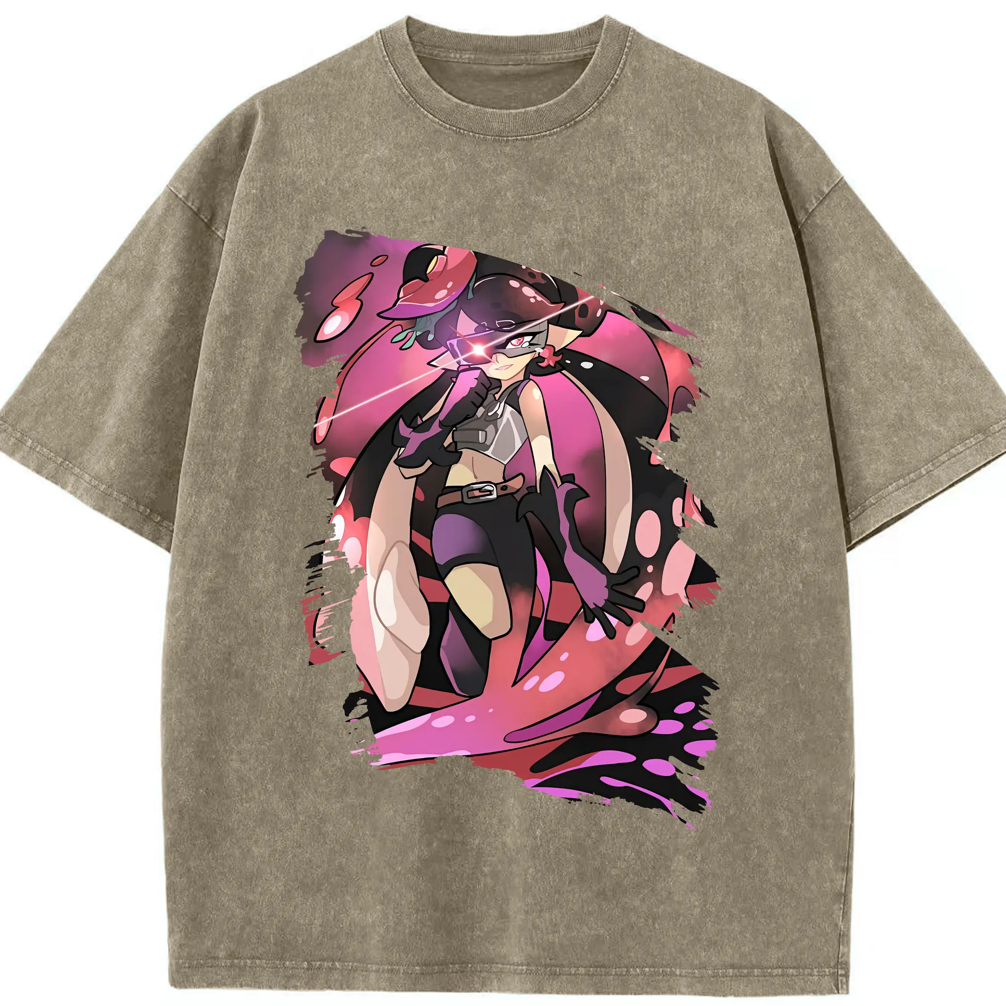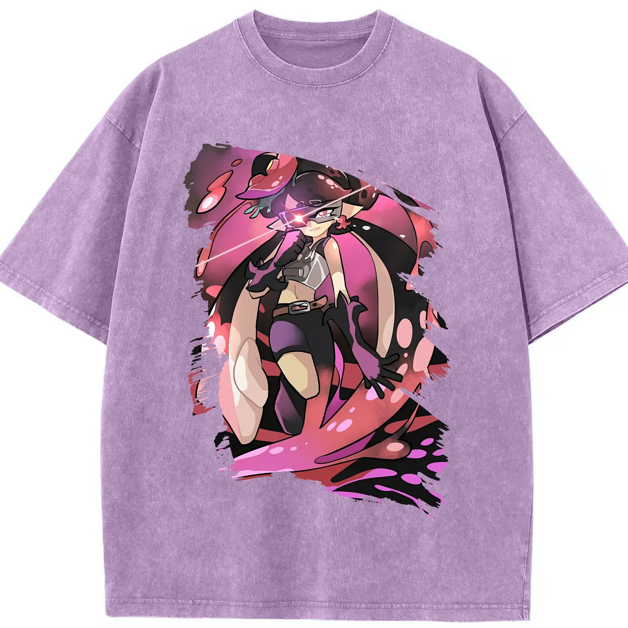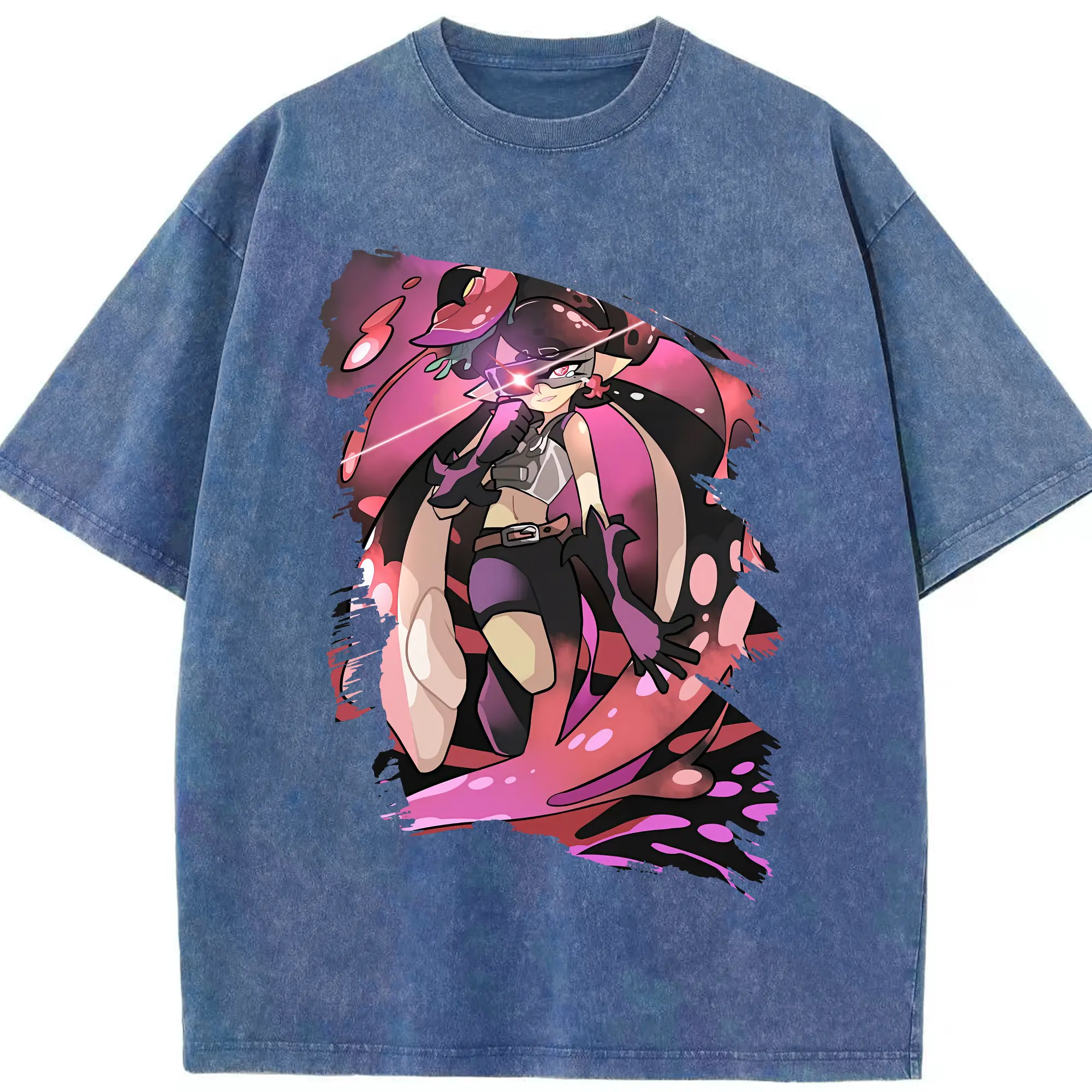 スプラトゥーン グッズ,シオカラーズ アオリ - 綿100% ヴィンテージ風 半袖Tシャツ ・ 背面プリント ・ 柔らか肌触り ・ 通気性 快適 ・ スポーツ カジュアル 外出用