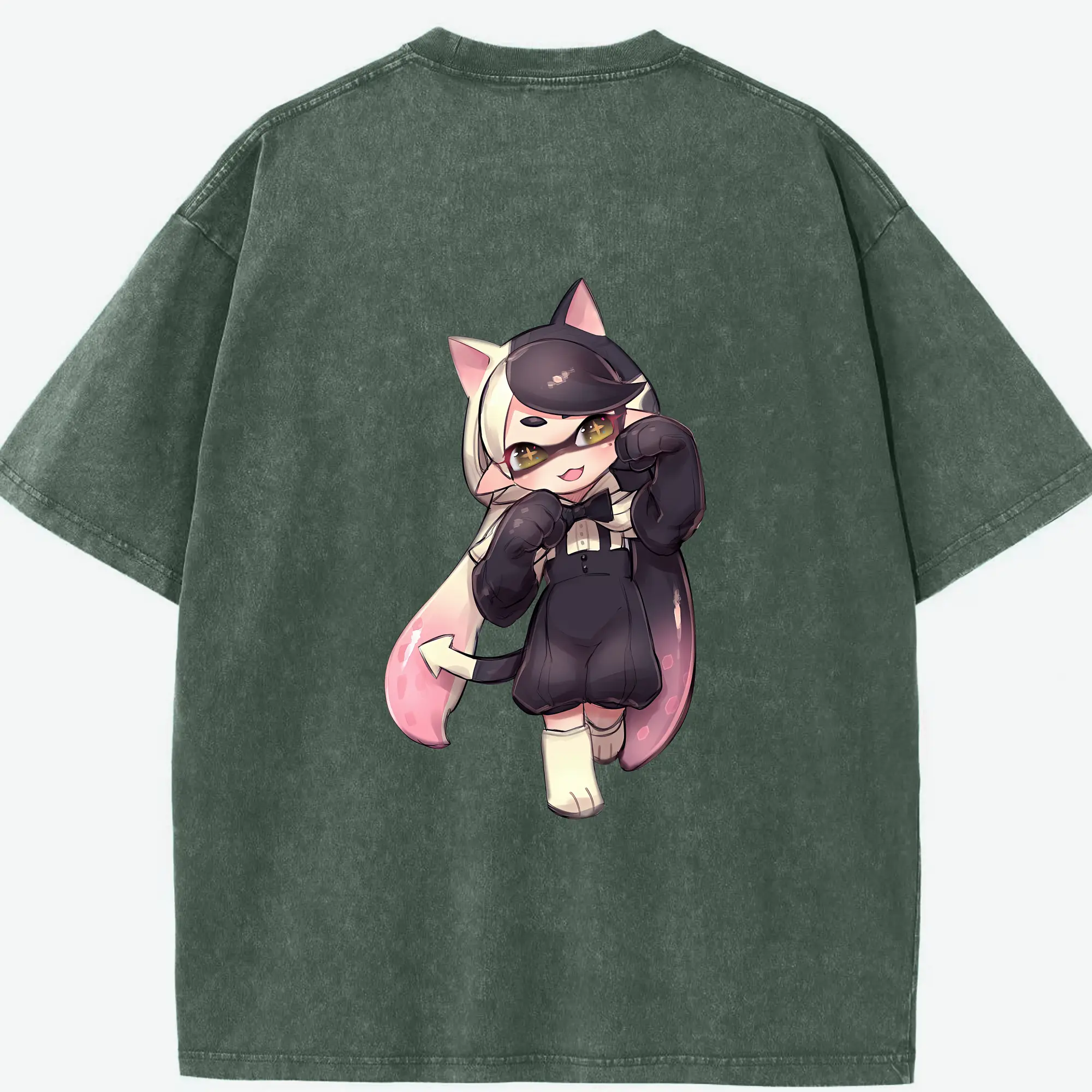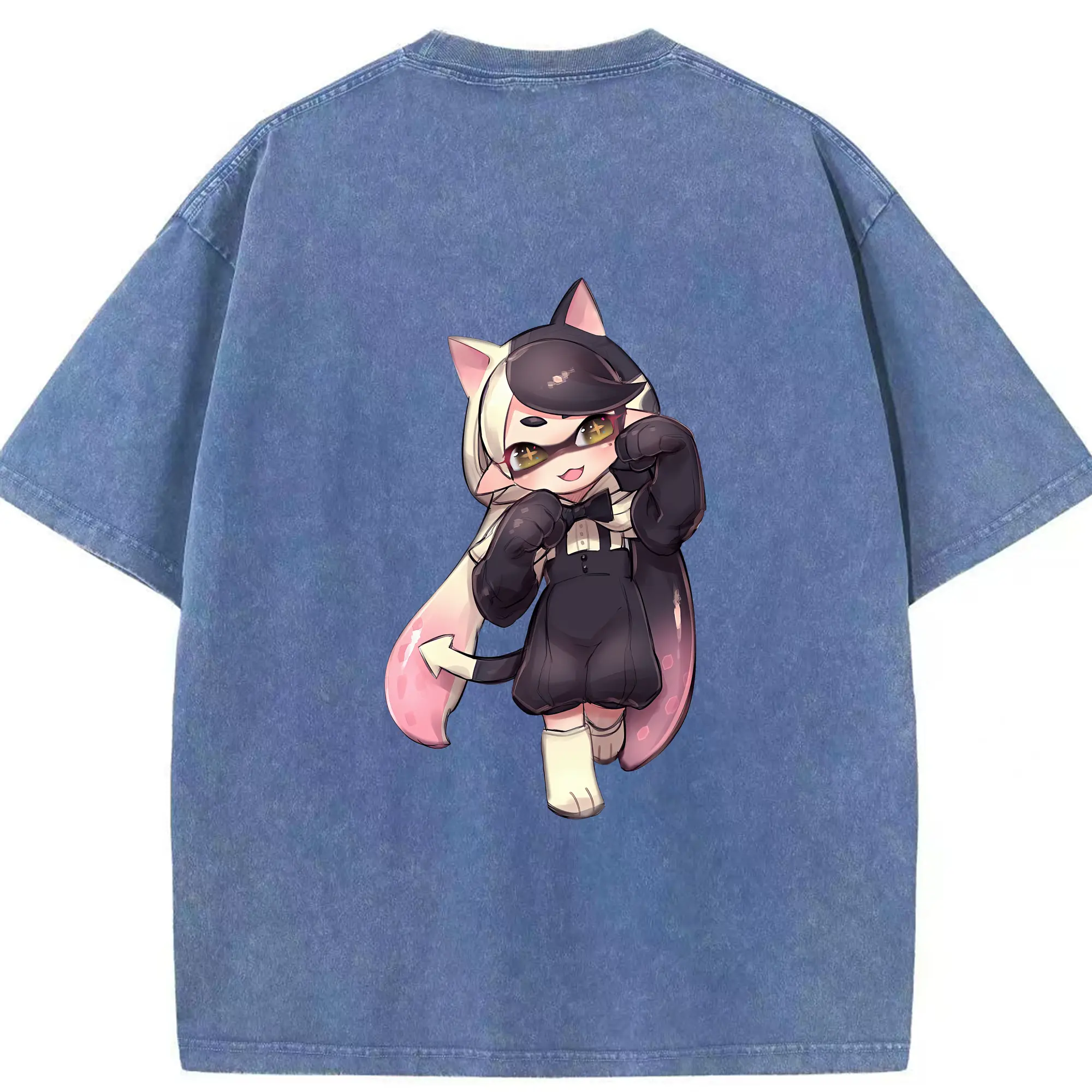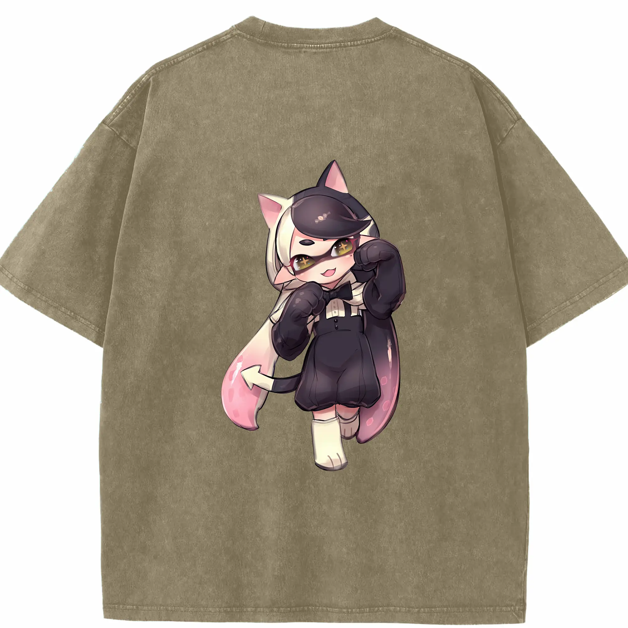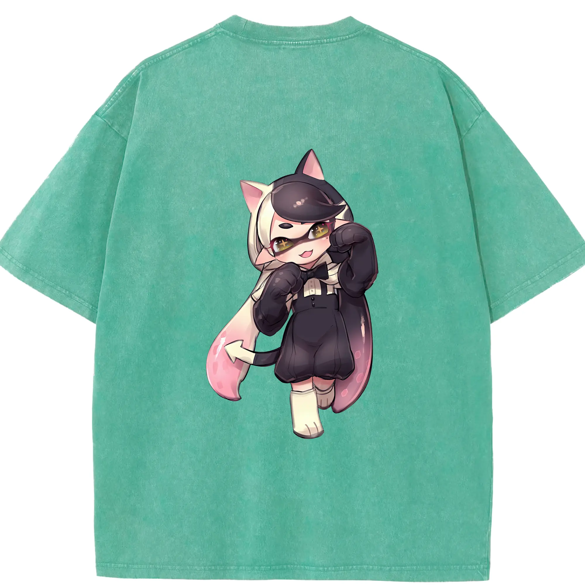 スプラトゥーン グッズ,シオカラーズ アオリ - 綿100% ヴィンテージ風 半袖Tシャツ ・ フロントプリント ・ 柔らか肌触り ・ 通気性 快適 ・ スポーツ カジュアル 外出用