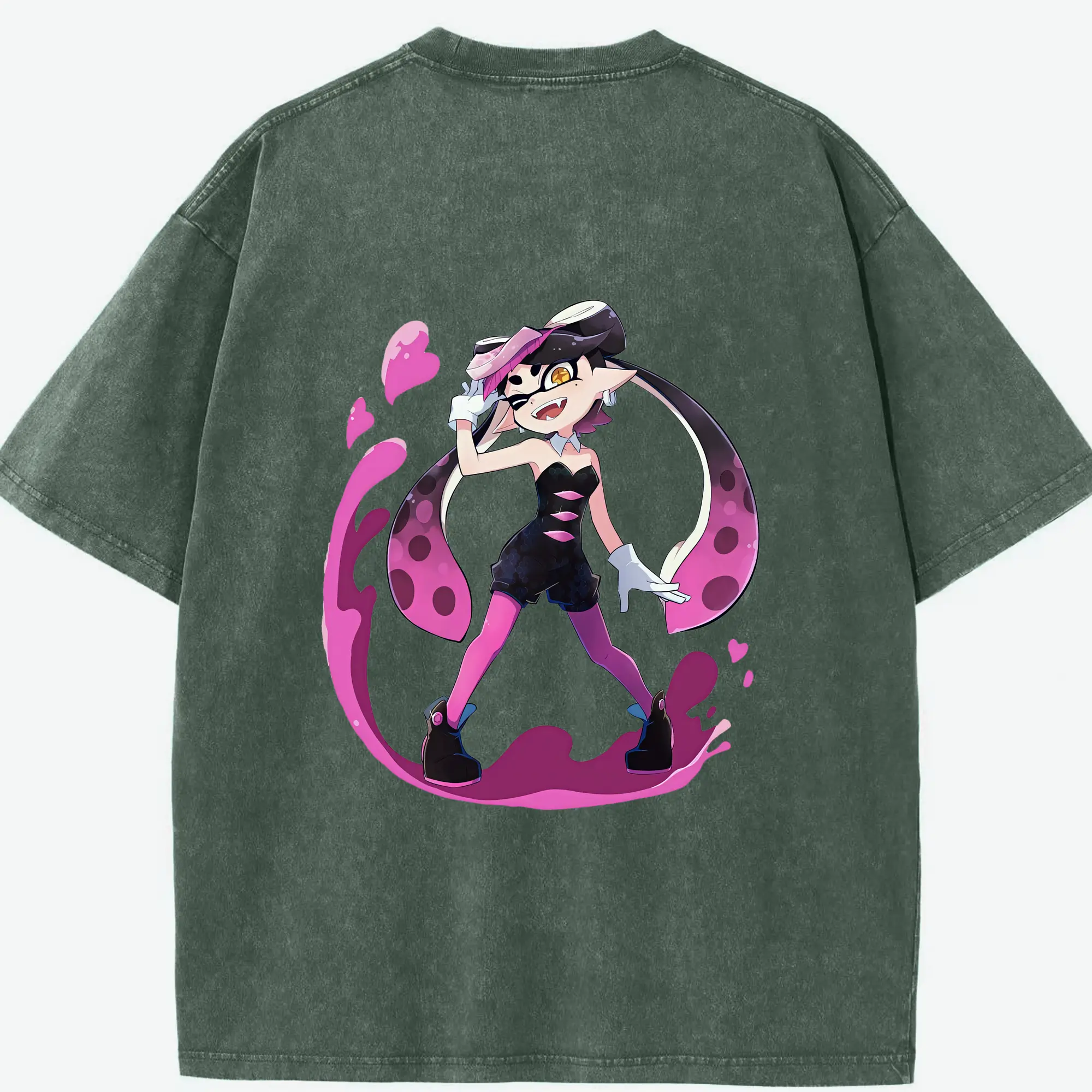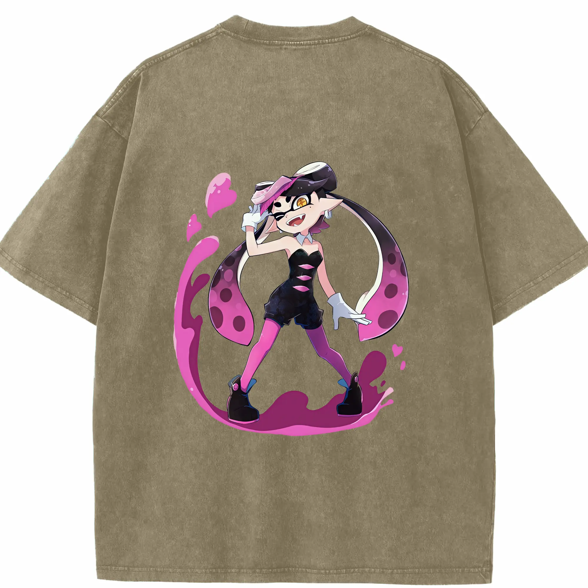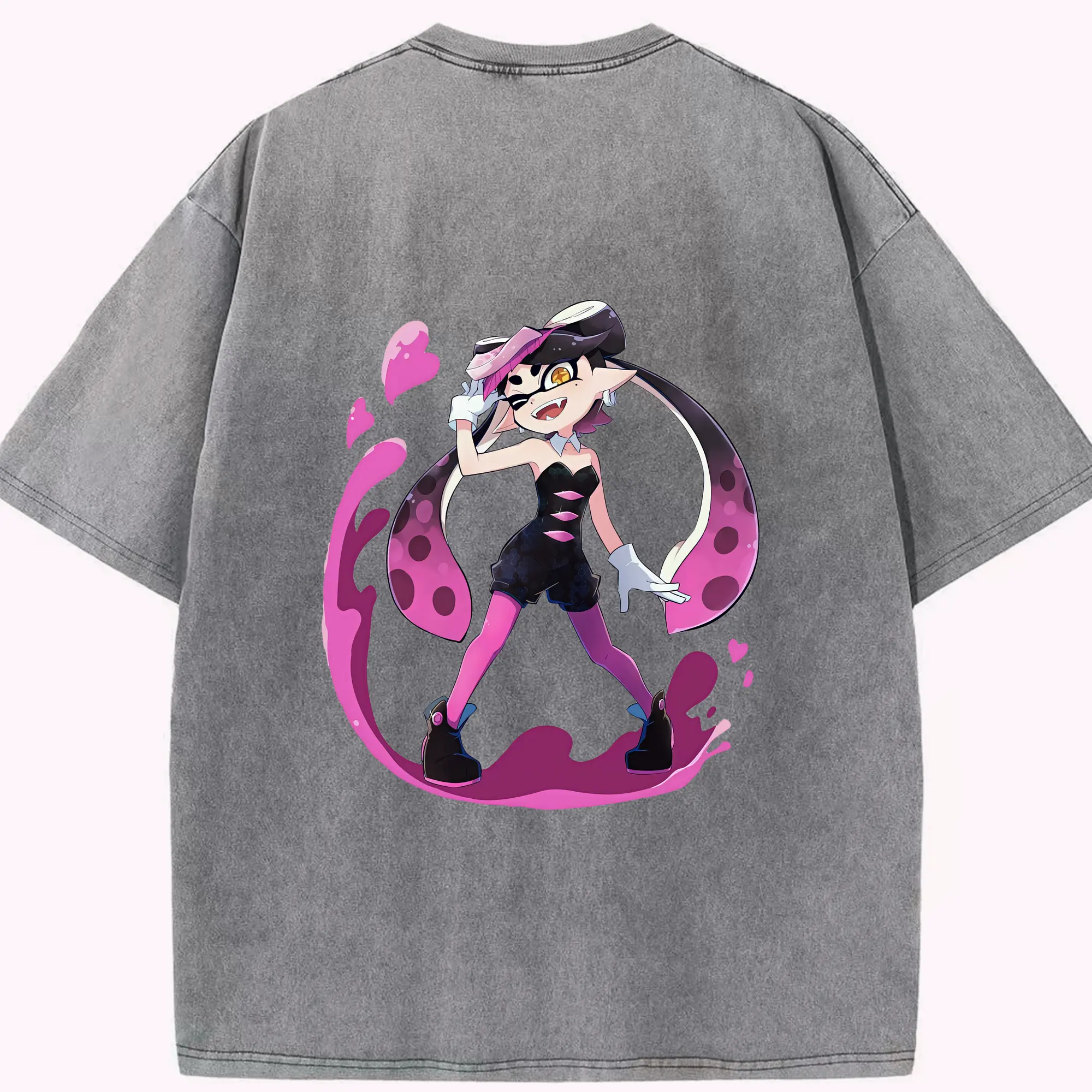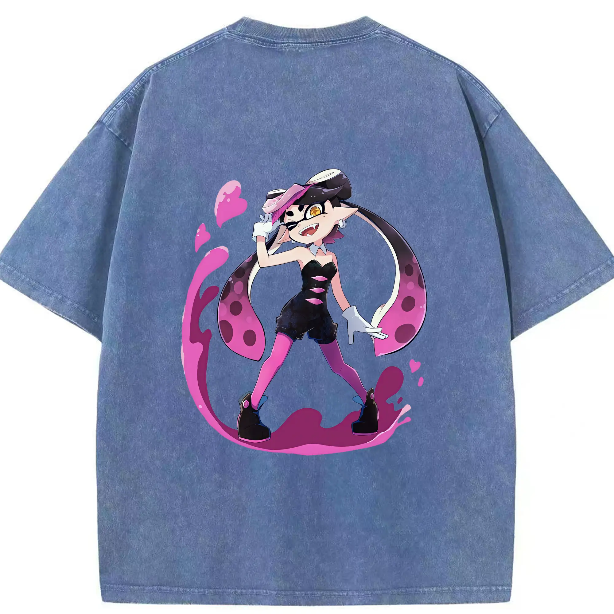 スプラトゥーン グッズ,シオカラーズ アオリ - 綿100% ヴィンテージ風 半袖Tシャツ ・ フロントプリント ・ 柔らか肌触り ・ 通気性 快適 ・ スポーツ カジュアル 外出用