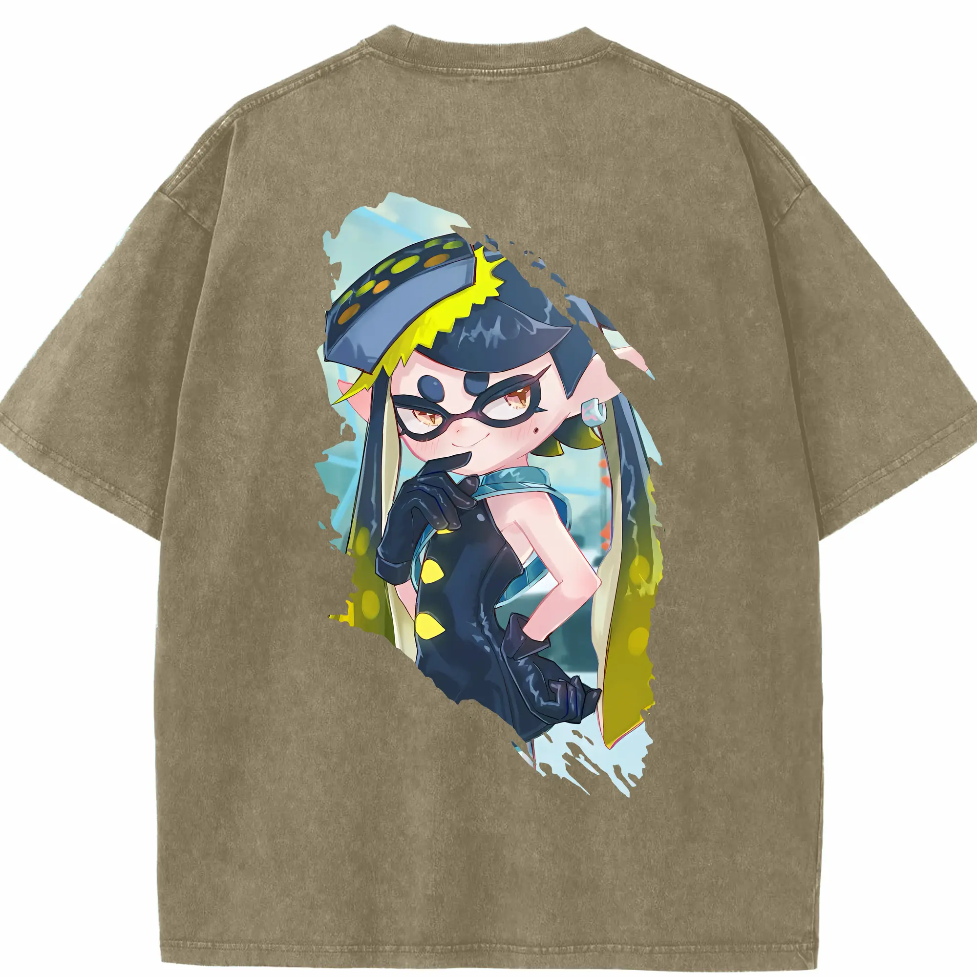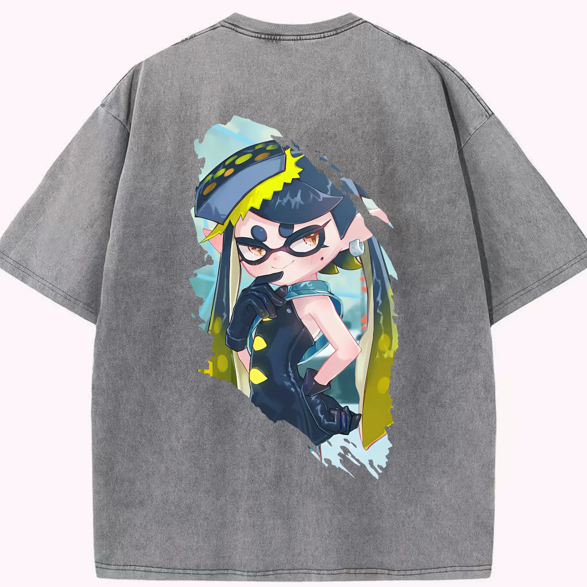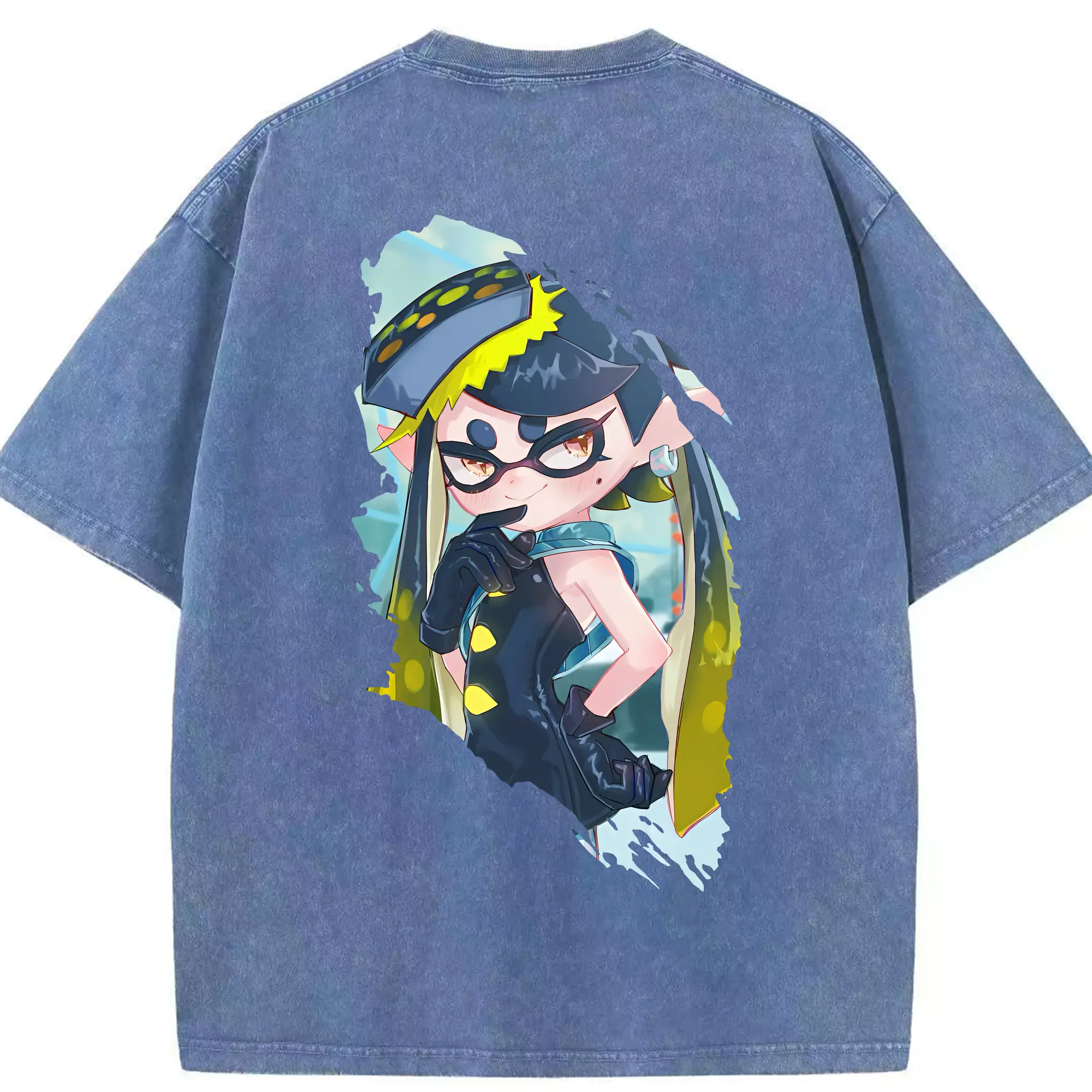 スプラトゥーン グッズ,シオカラーズ アオリ - 綿100% ヴィンテージ風 半袖Tシャツ ・ フロントプリント ・ 柔らか肌触り ・ 通気性 快適 ・ スポーツ カジュアル 外出用